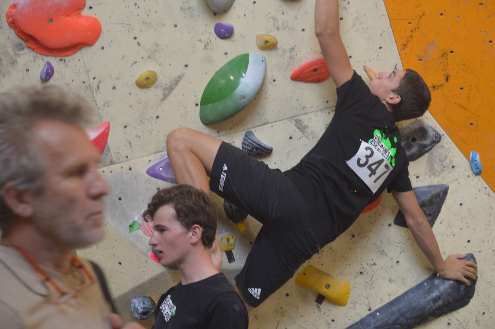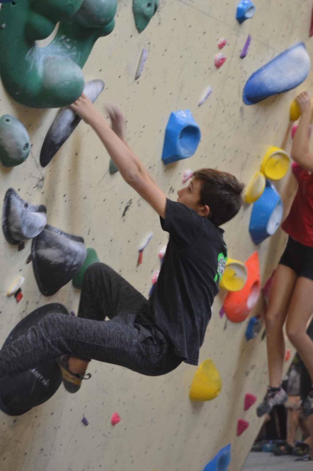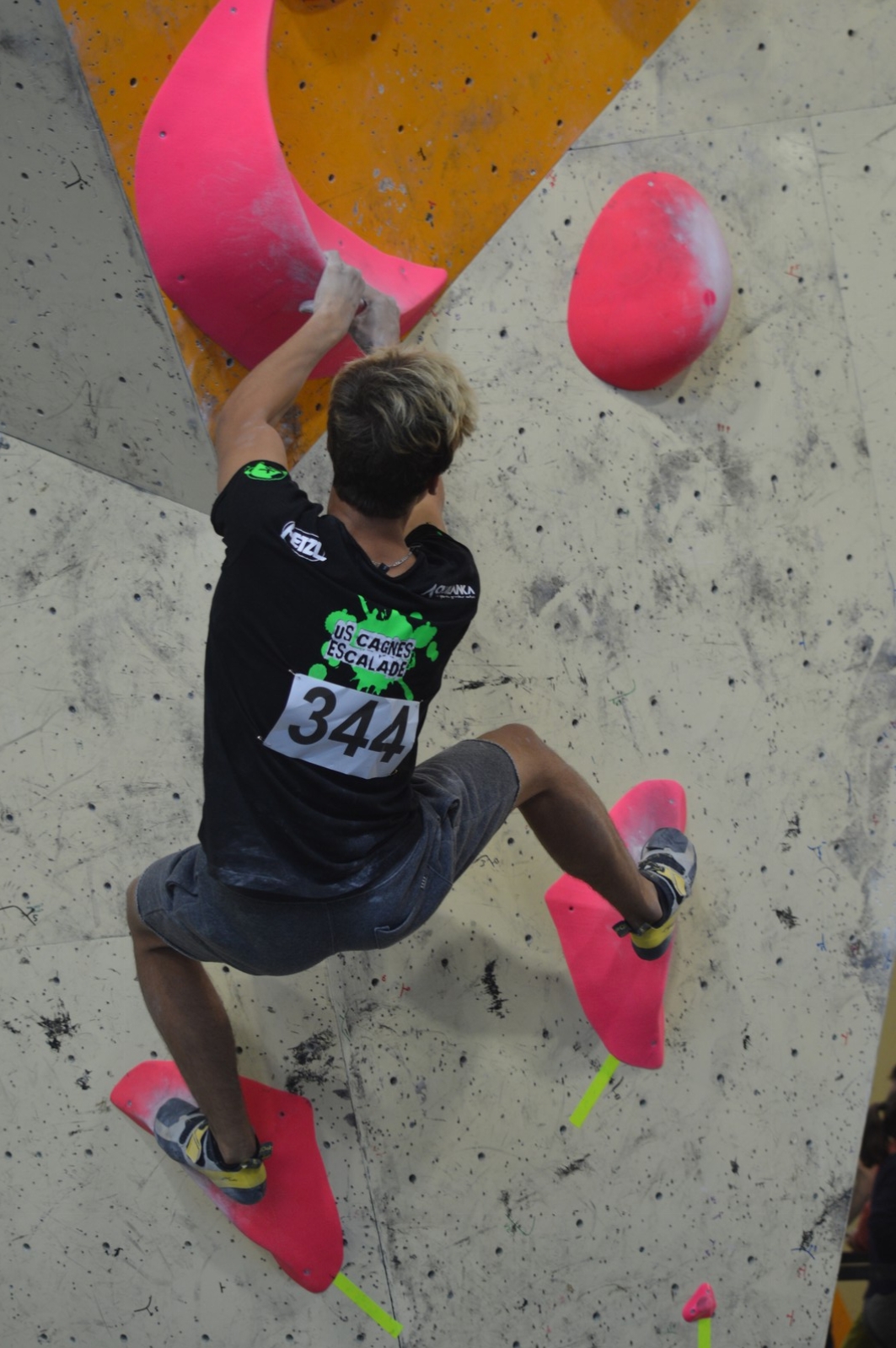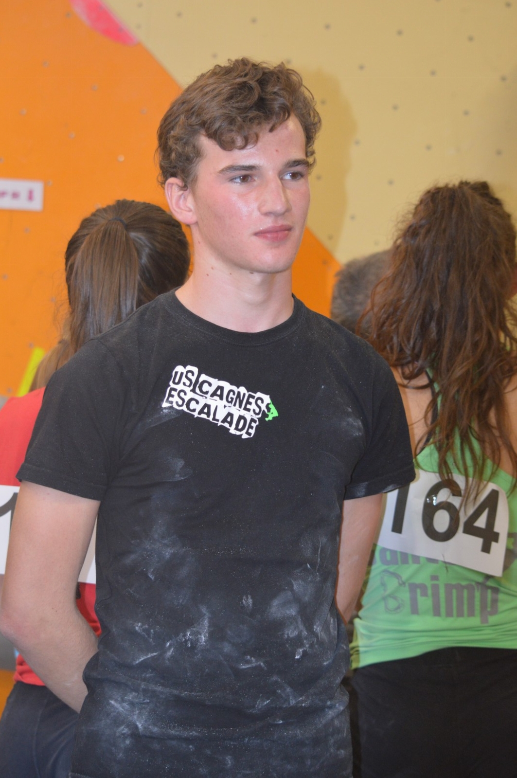 Ce sera beaucoup plus dur pour les cadets garçons qui se frottent à des 2èmes années très musclés, ils sont concentrés et appliqués mais ça ne suffit pas. Seul Nicolas arrivera à tirer son épingle du jeu en cochant un 6ème bloc dans les 5 dernières minutes. Il termine ainsi à la 34ème place. Mathias se classe 39ème et Lenny 44ème.