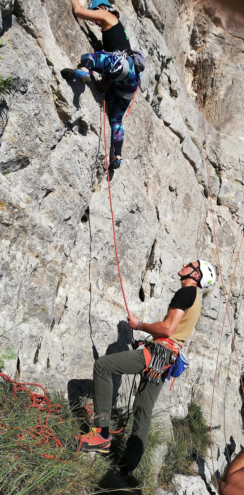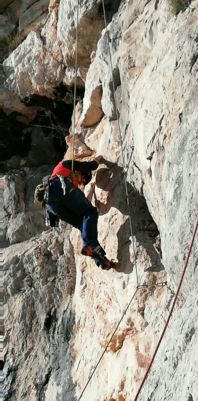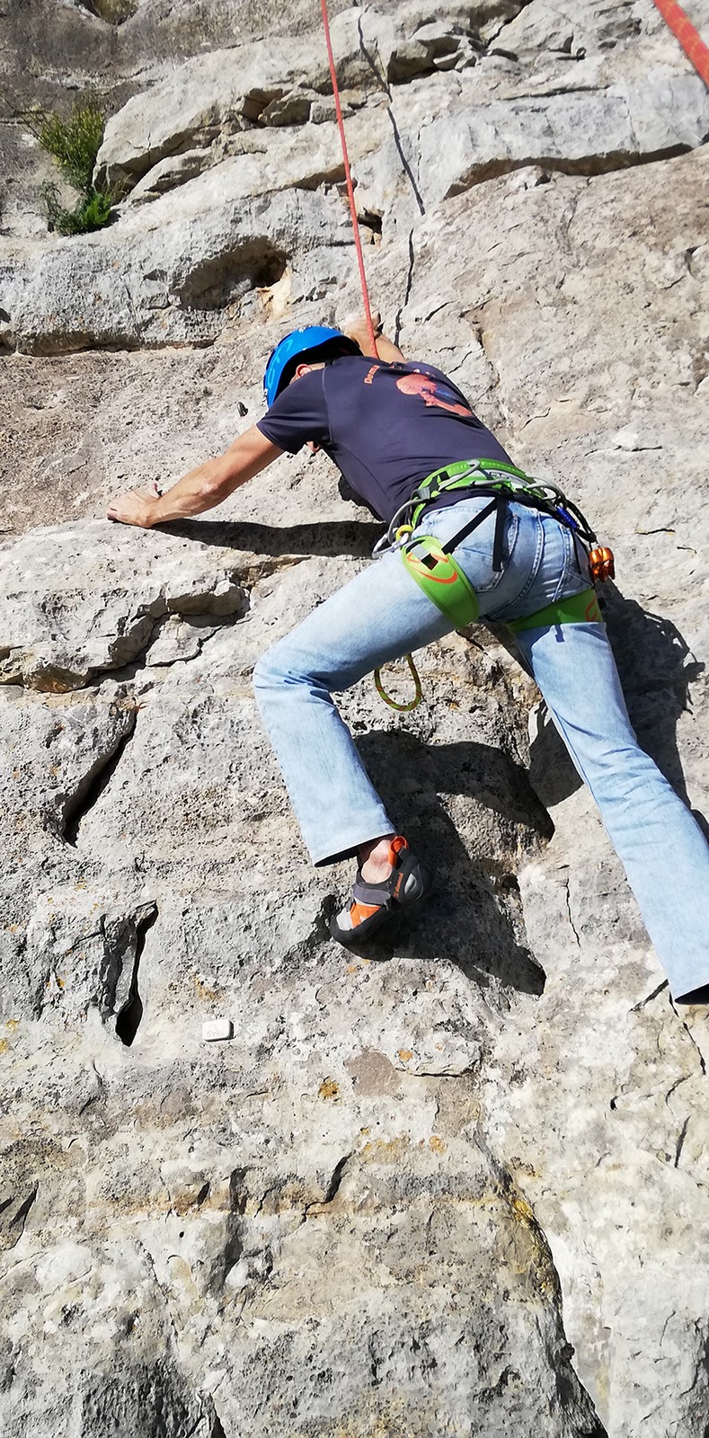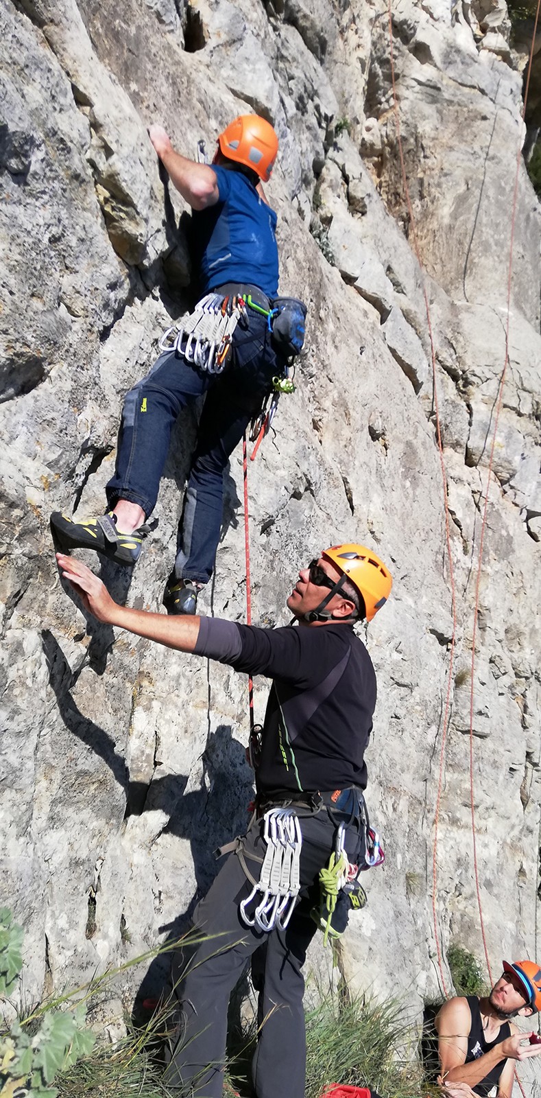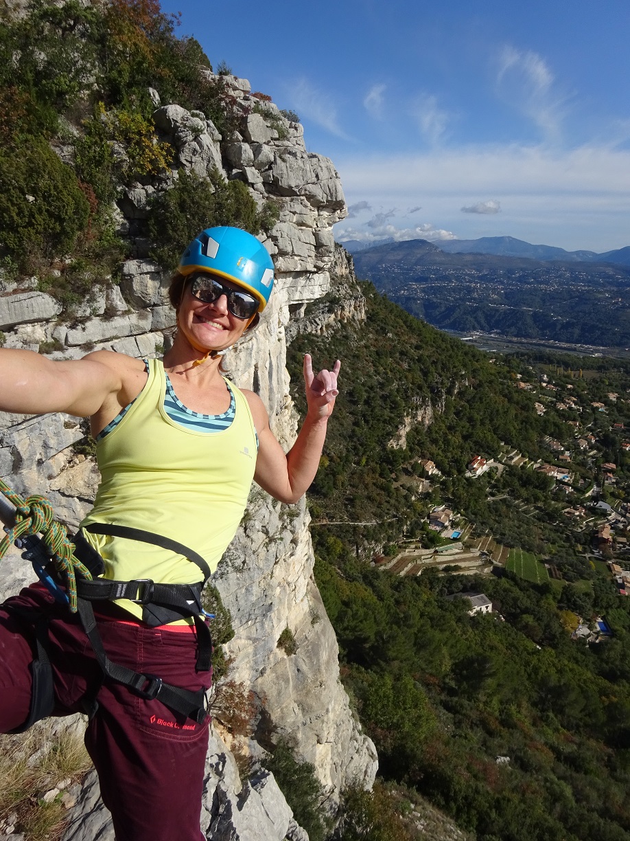 Et c’est reparti de plus belle en après-midi, avec un petit groupe qui se détache pour aller s’essayer dans quelques 6c/+ avec plus ou moins de succès, jusqu’à ce que le soleil nous lâche et que les doudounes sortent des sacs. Mais ce ne sera pas suffisant pour nous arrêter et c’est bien longtemps après que le froid se soit installé que nous quittons la falaise pour la redescente vers les derniers instants conviviaux au bar du village, où pressions et chocolats/cointreau achèvent sur un délice cette fantastique journée.