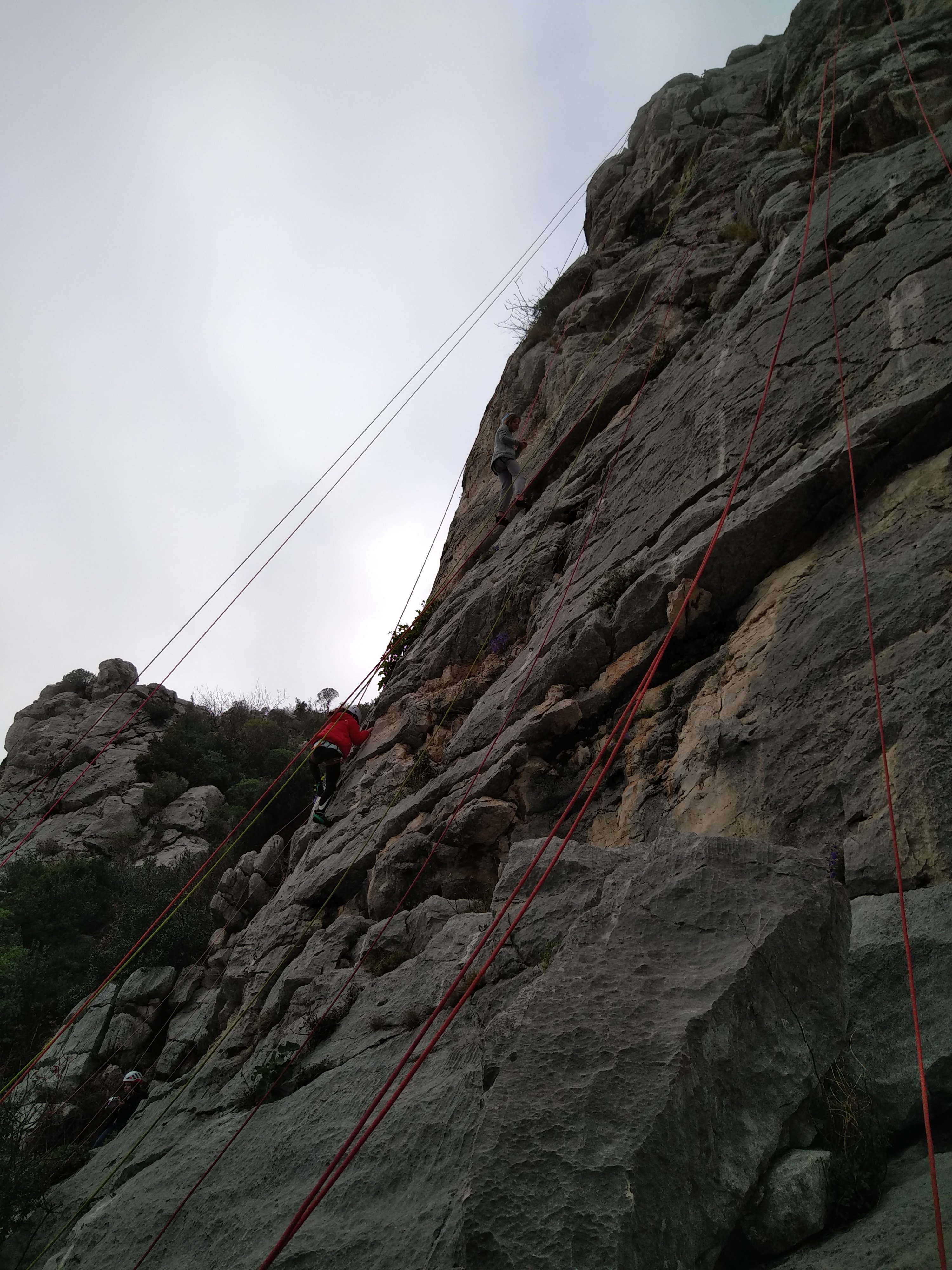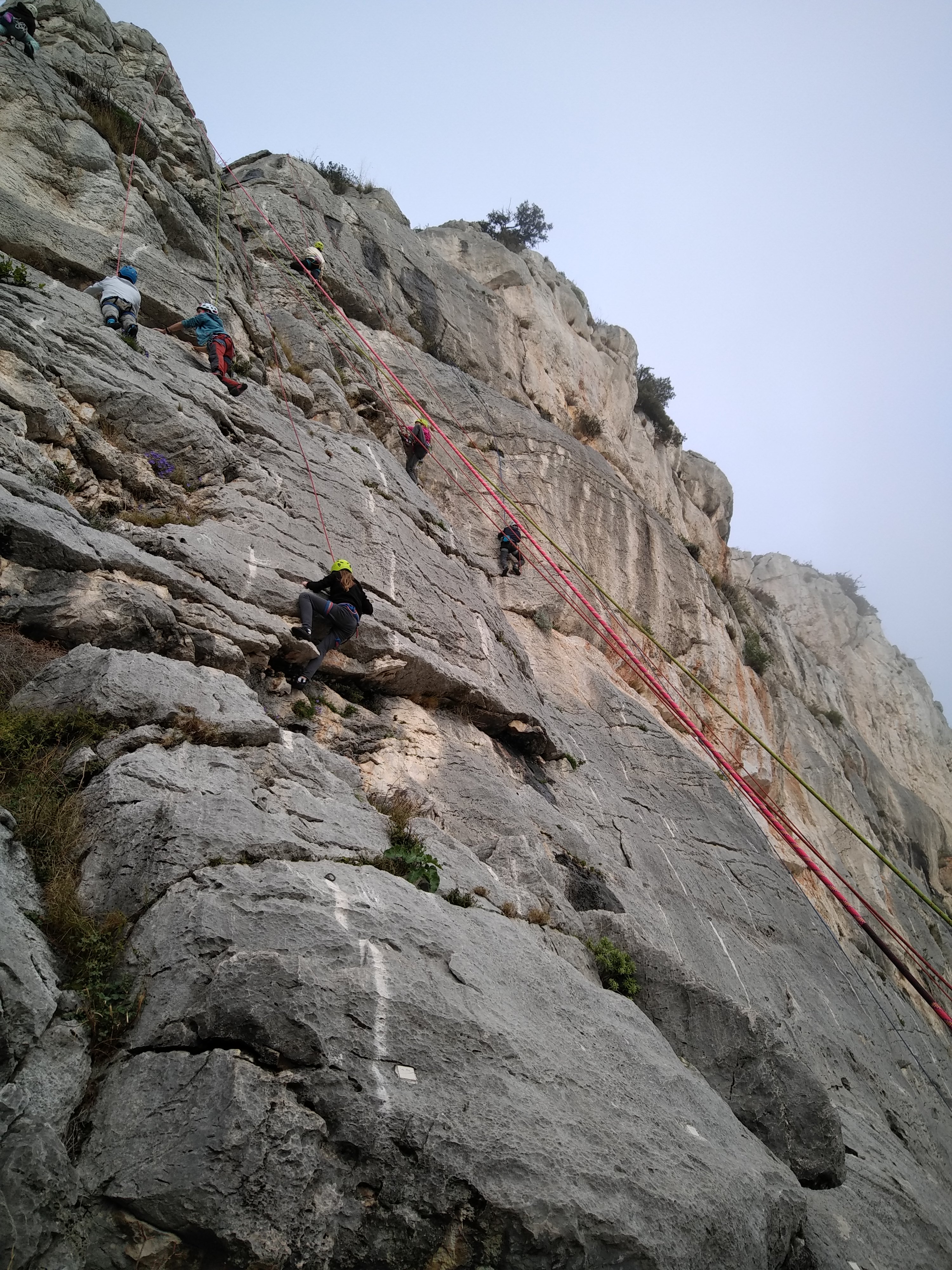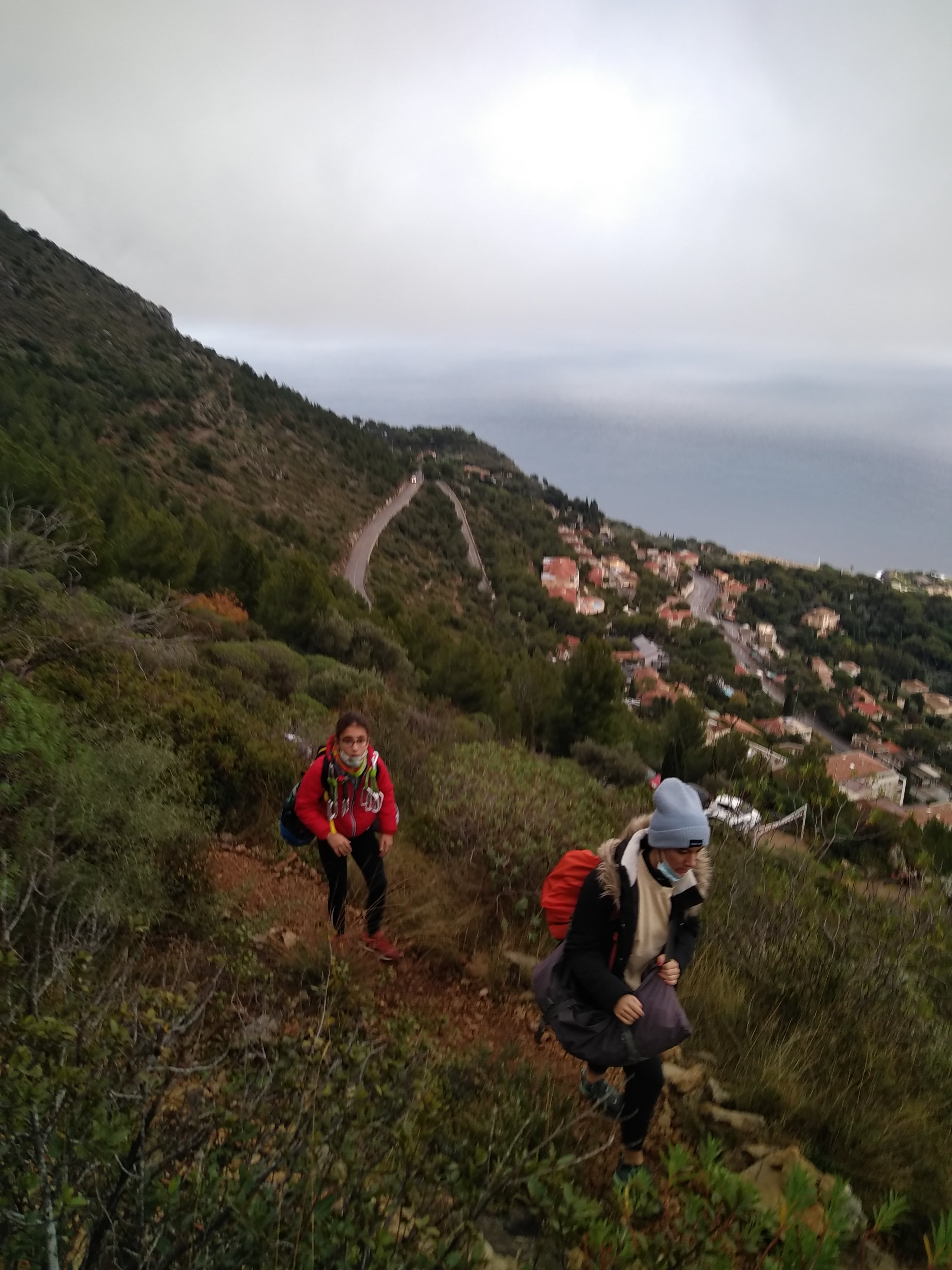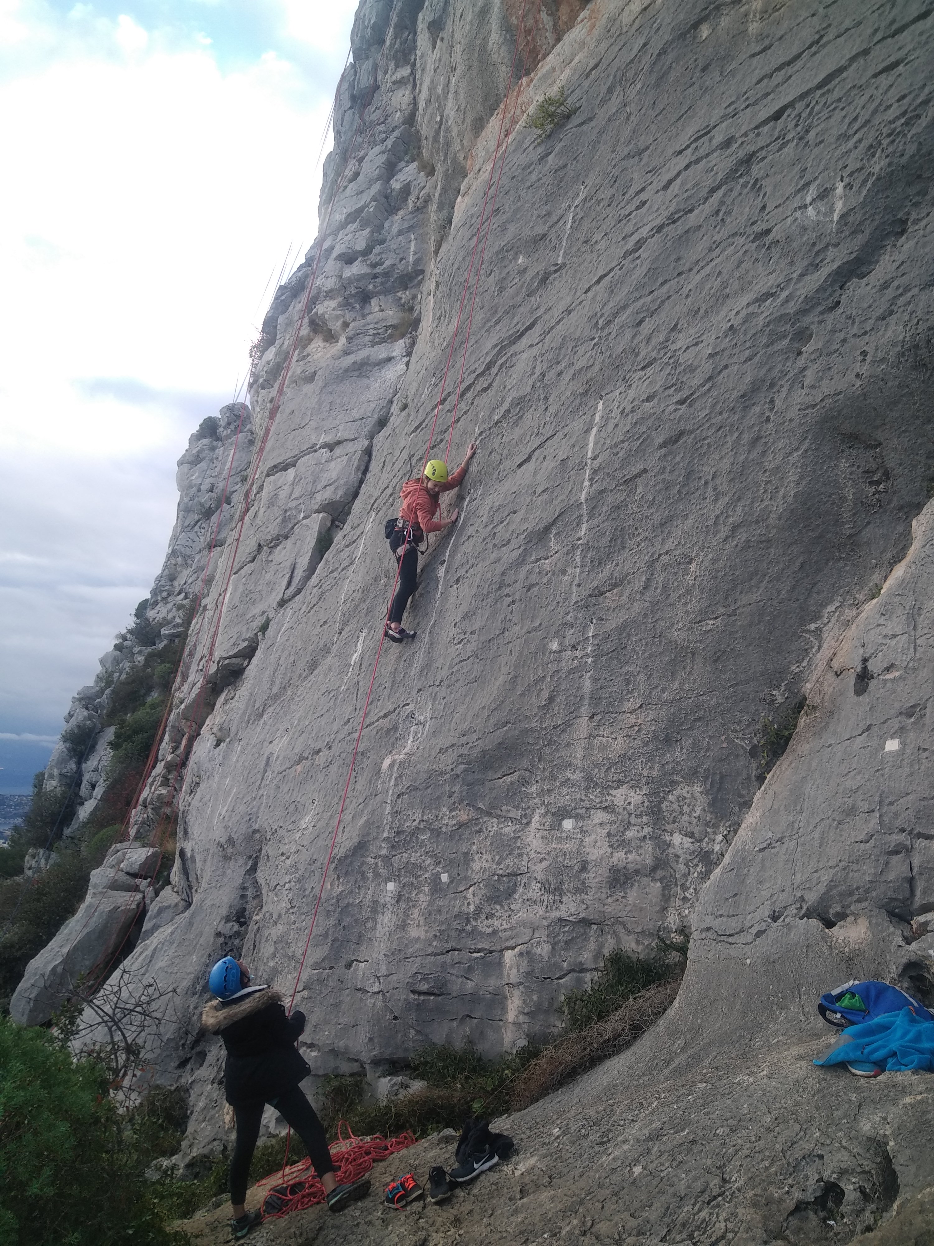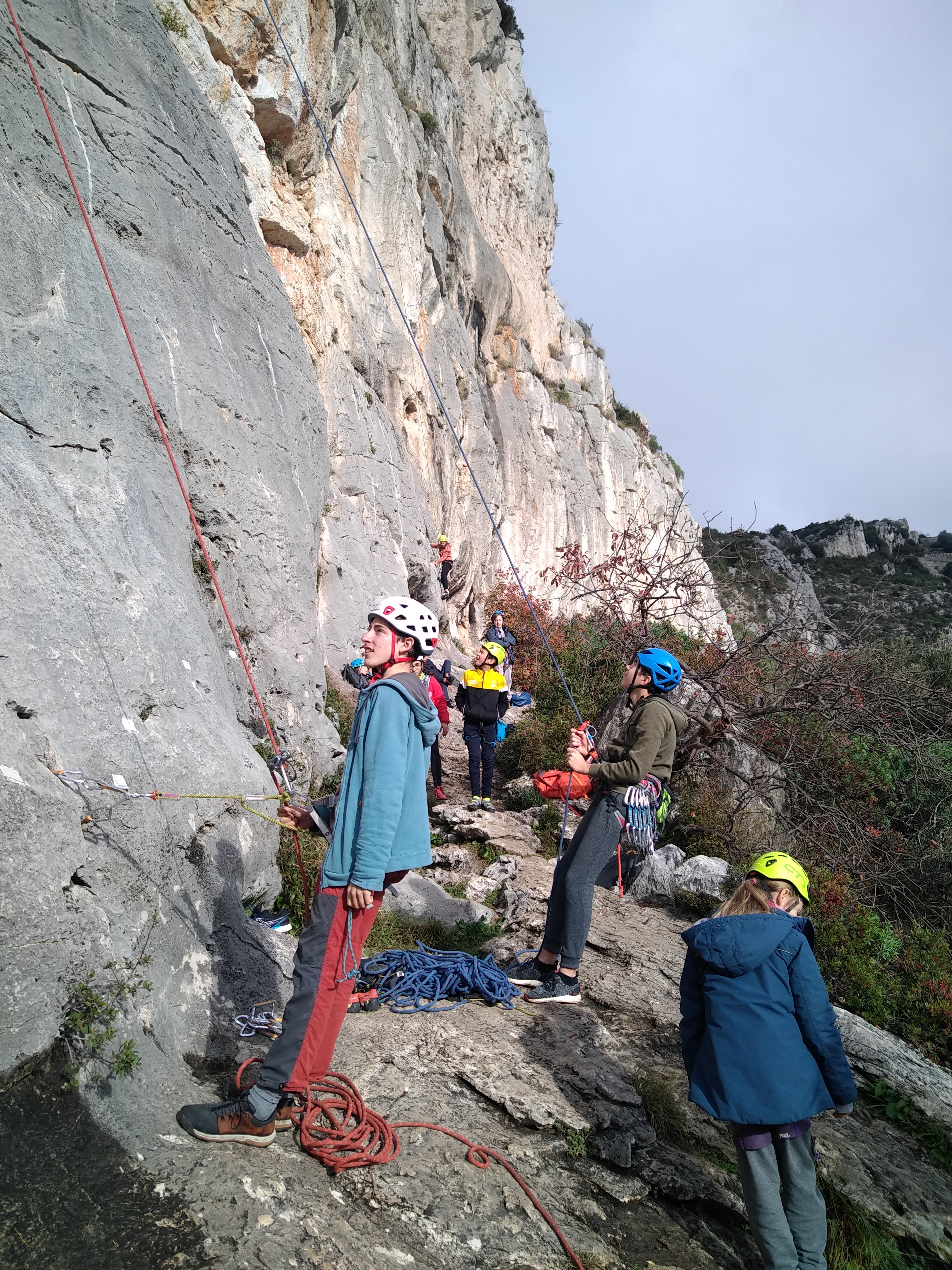 Hier, c’est avec une bande de 15 jeunes courageux que nous avons affronté une météo pas franchement réjouissante pour une reprise d’activité en falaise. Pourtant, quand nous nous sommes rejoints à Cagnes, c’est sous le soleil que nous avons organisé le transport des troupes. Sur le trajet, plus on se rapprochait de la Turbie, plus le ciel devenait gris.