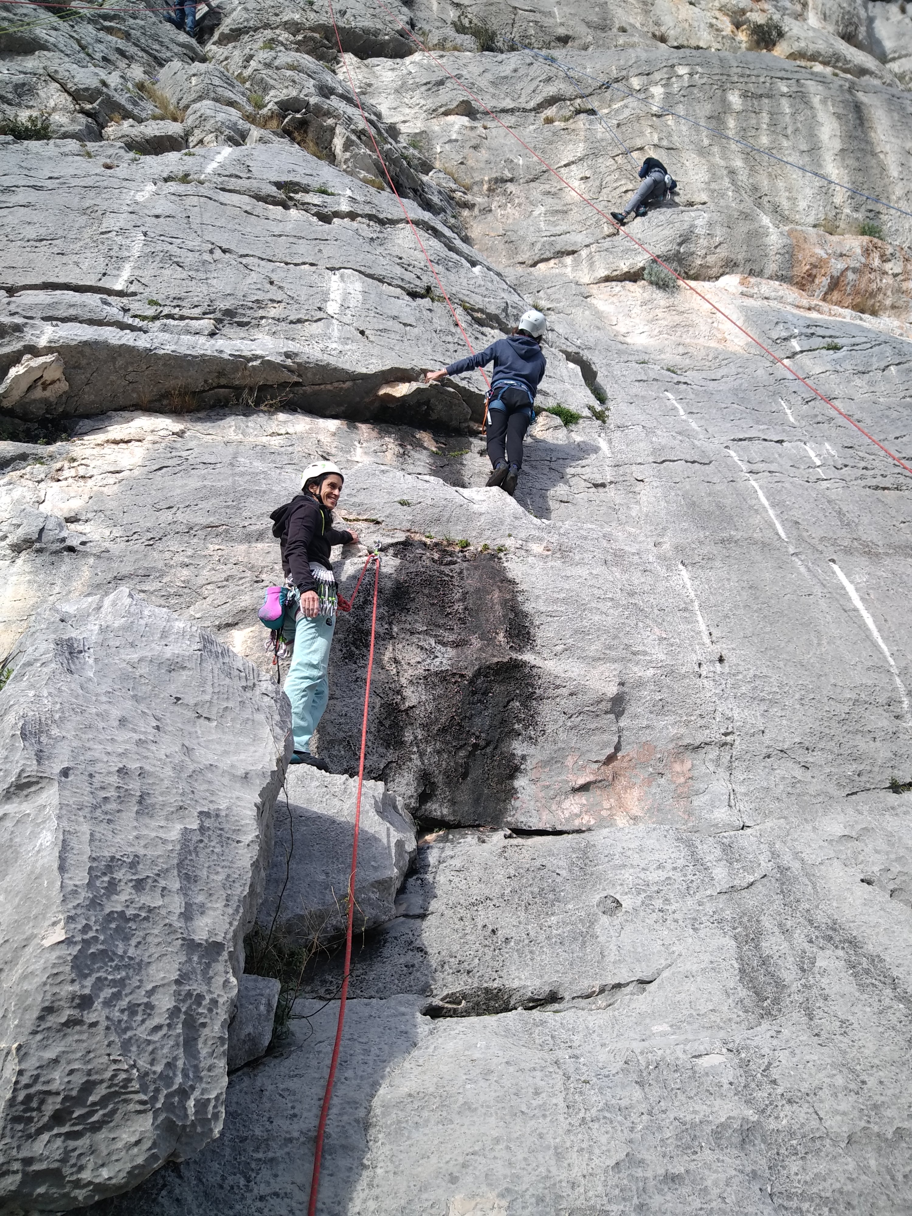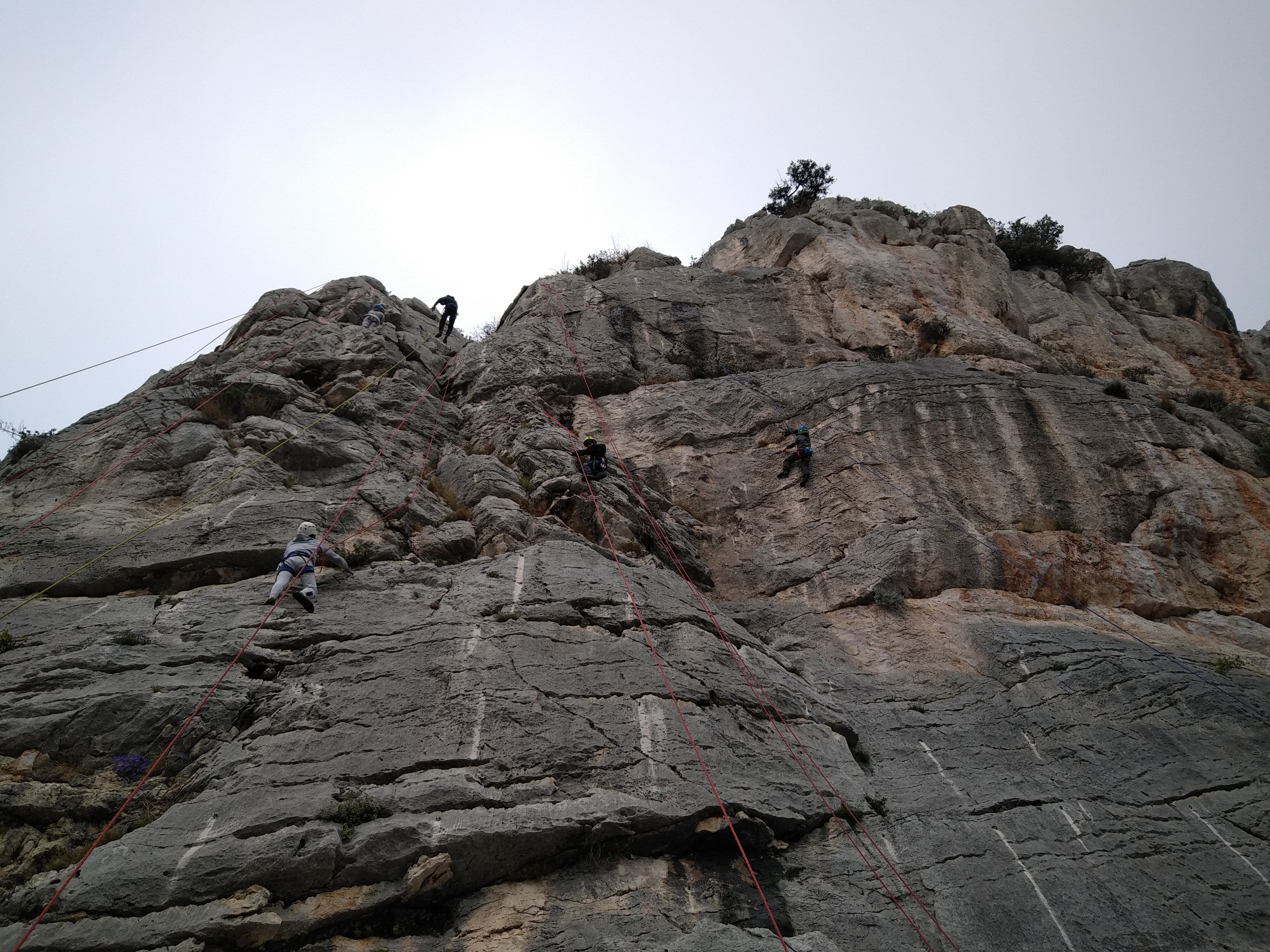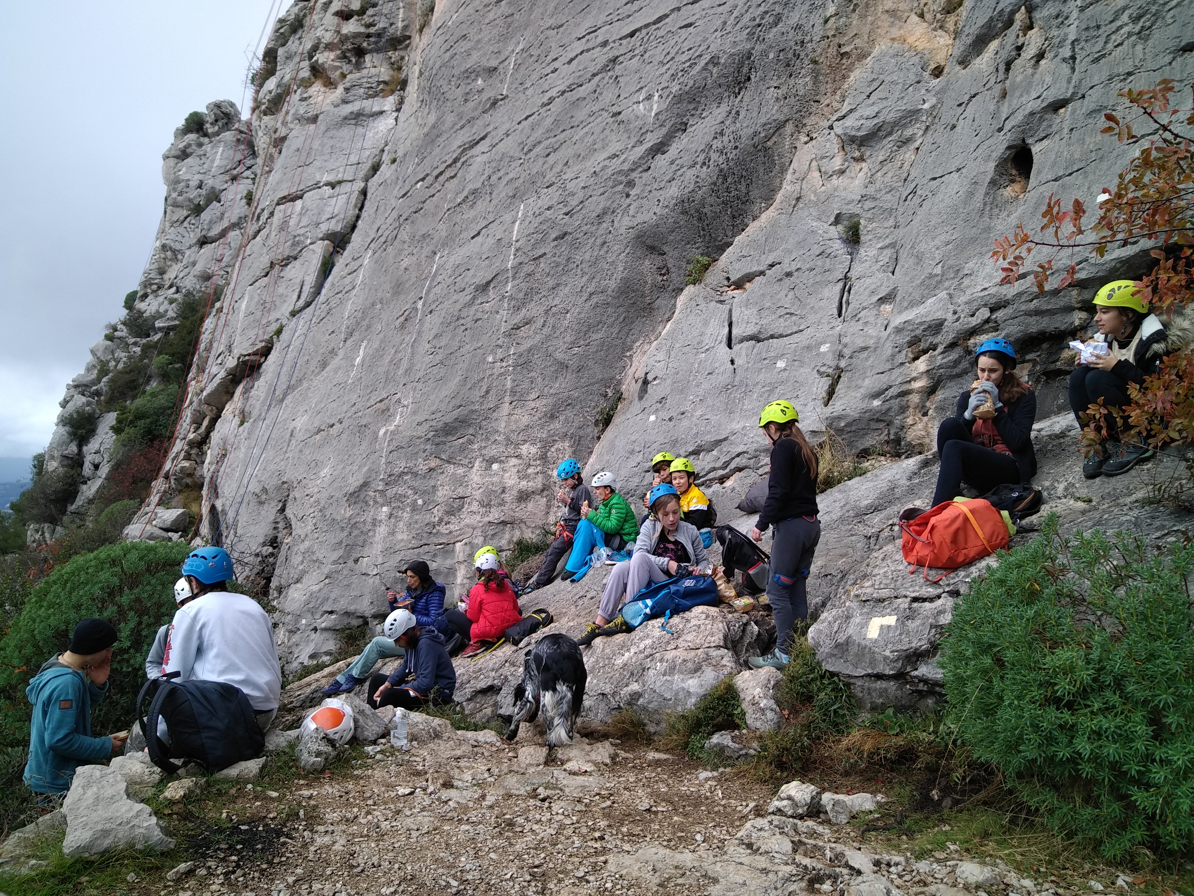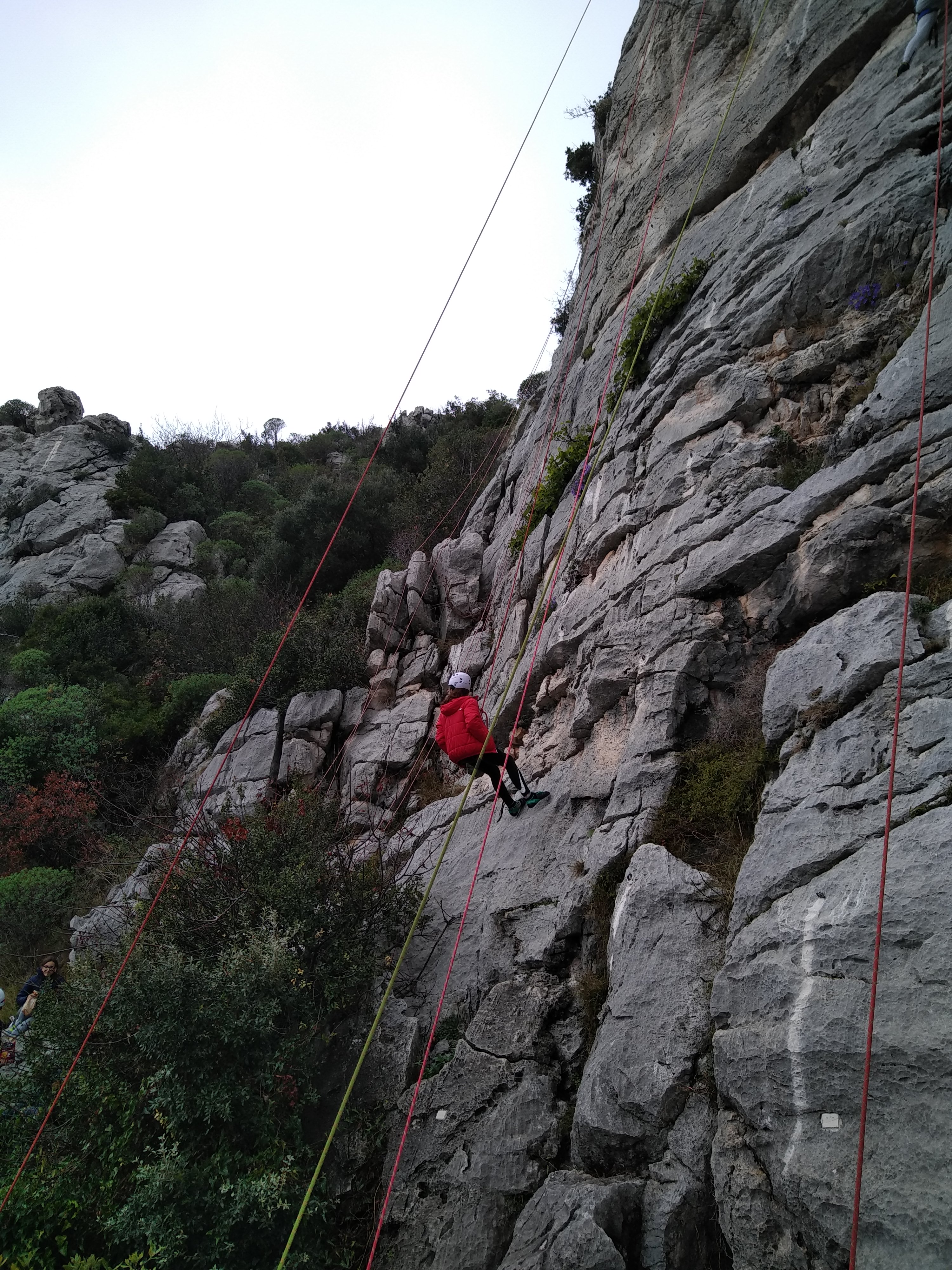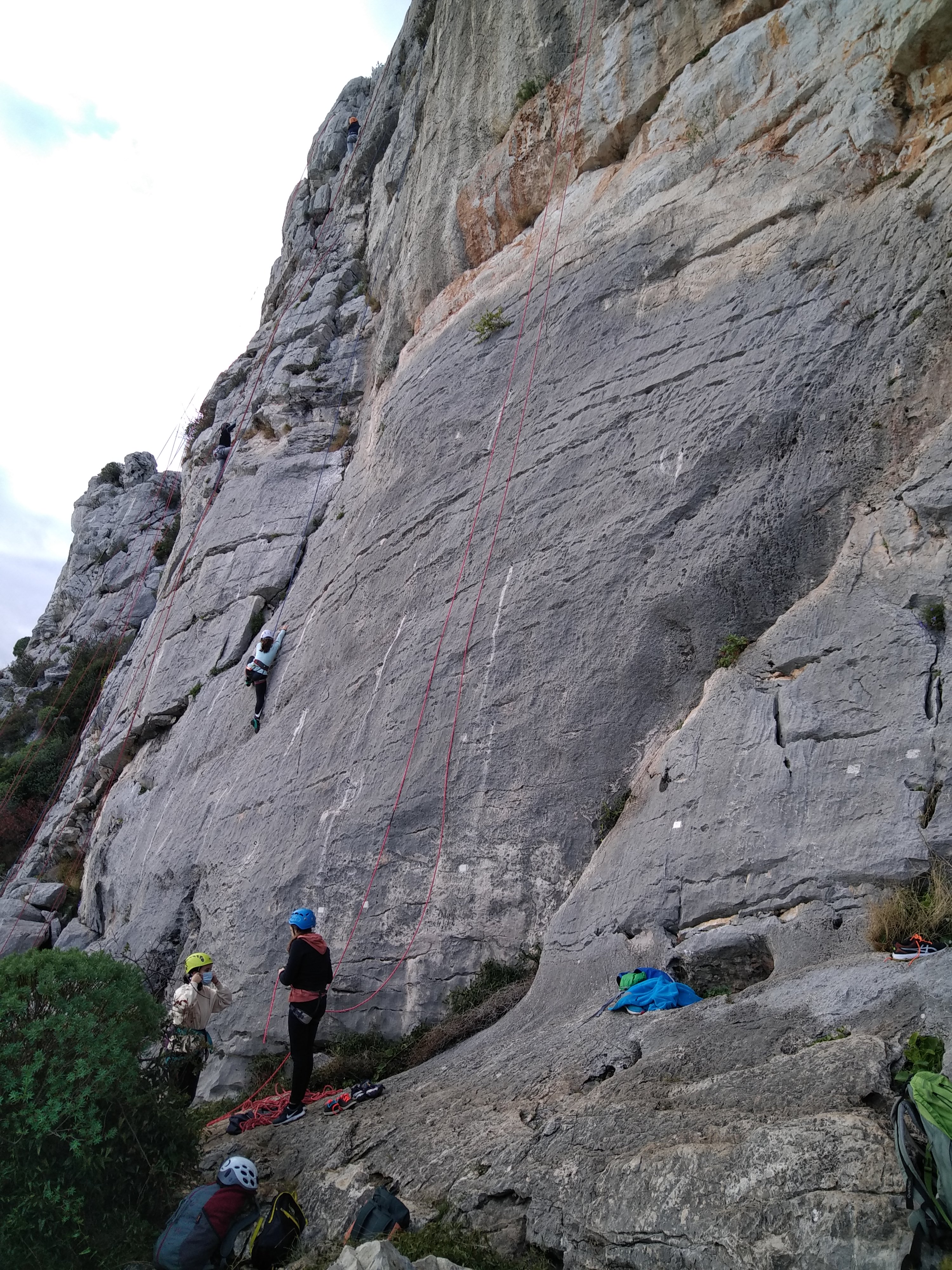 Hier, c’est avec une bande de 15 jeunes courageux que nous avons affronté une météo pas franchement réjouissante pour une reprise d’activité en falaise. Pourtant, quand nous nous sommes rejoints à Cagnes, c’est sous le soleil que nous avons organisé le transport des troupes. Sur le trajet, plus on se rapprochait de la Turbie, plus le ciel devenait gris.