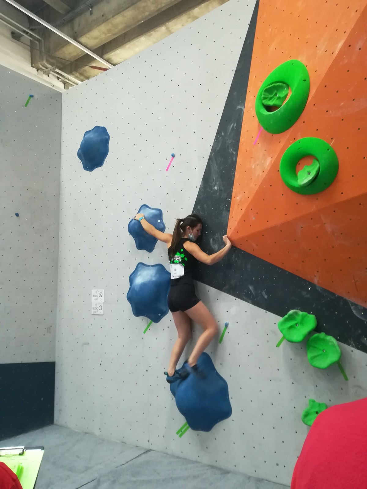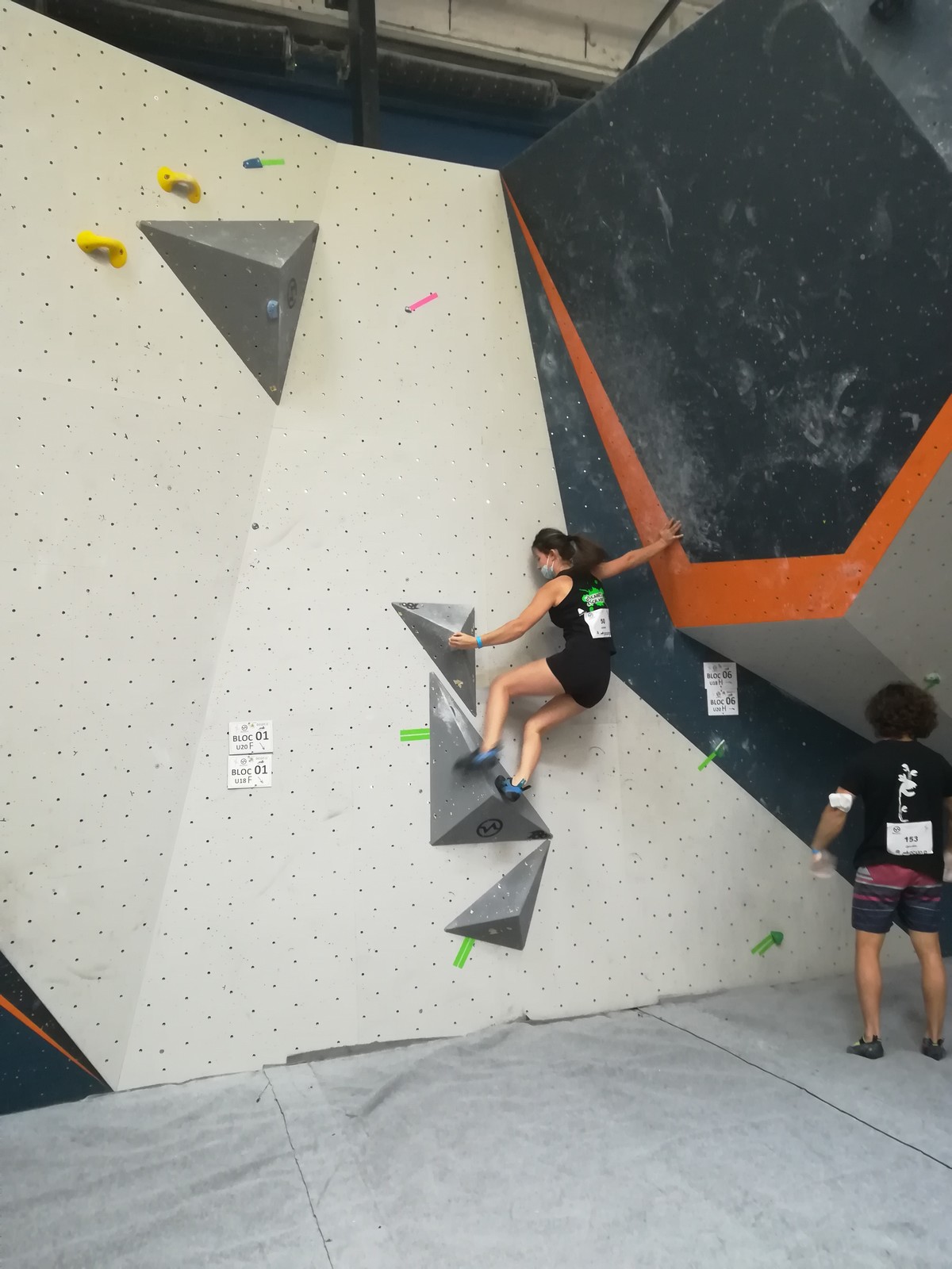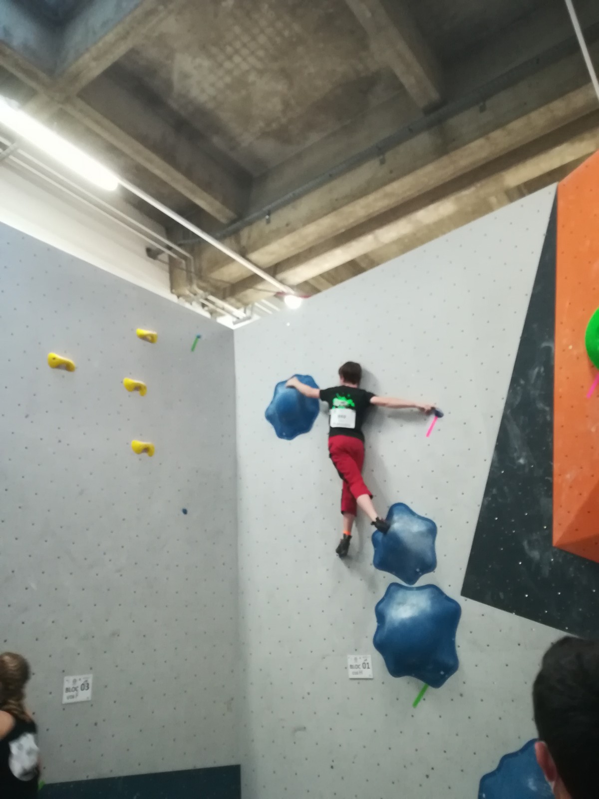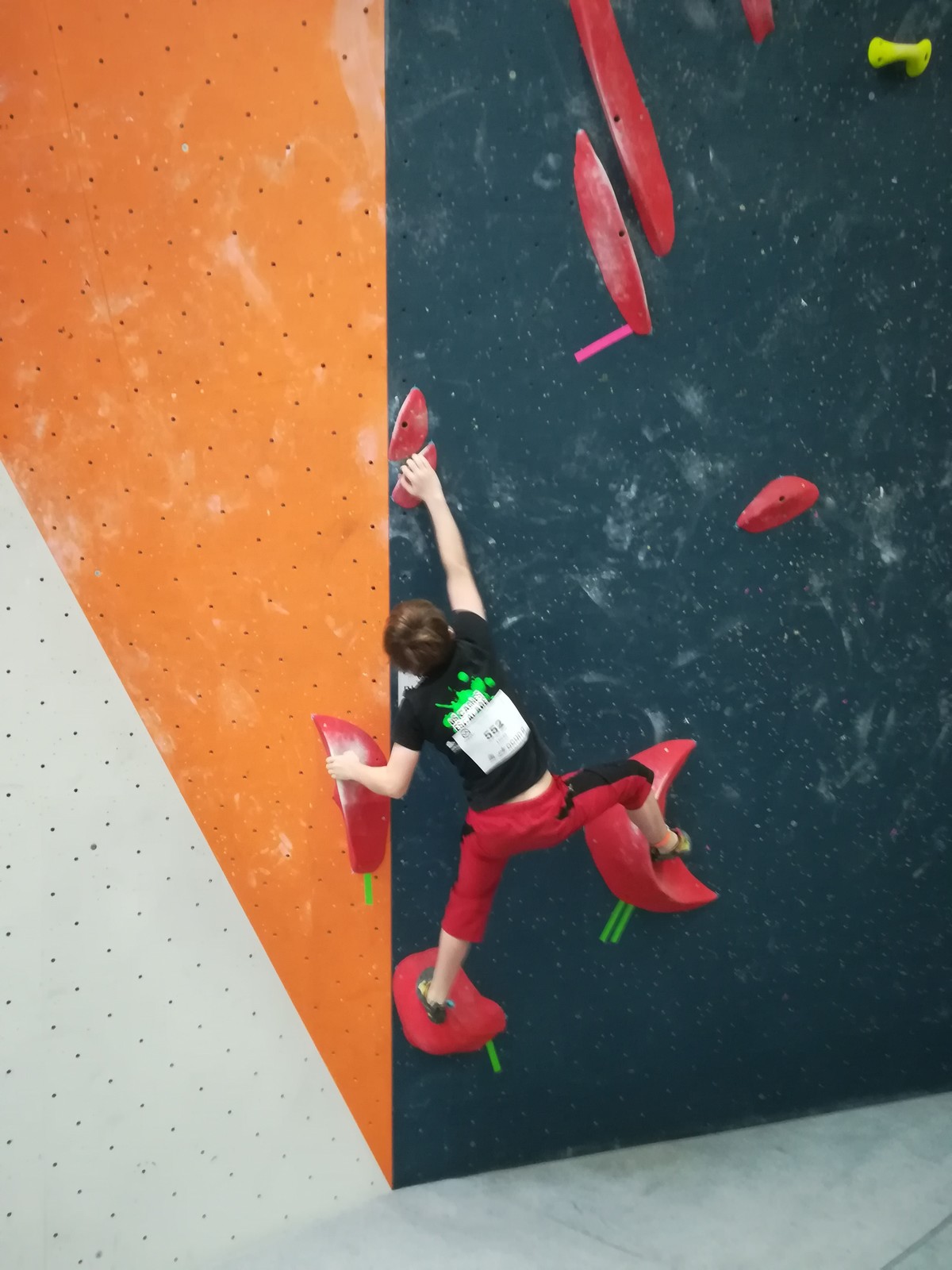 Lucas fait partie de la 2ème vague, et a eu le temps d’apprendre tous les blocs par cœur ! C’est sa 1ère coupe de France jeunes officielle, il sait que ça s’annonce dur mais il part motivé à bloc après un échauffement appliqué. Il est solide et flashe les 3 premiers blocs. Ce sera plus compliqué pour le reste du circuit, le niveau des blocs est élevé et sa taille n’est pas un avantage. Il garde le sourire et la motivation et aura le temps de faire des essais dans tous les blocs. Il termine 37ème, super expérience pour lui !