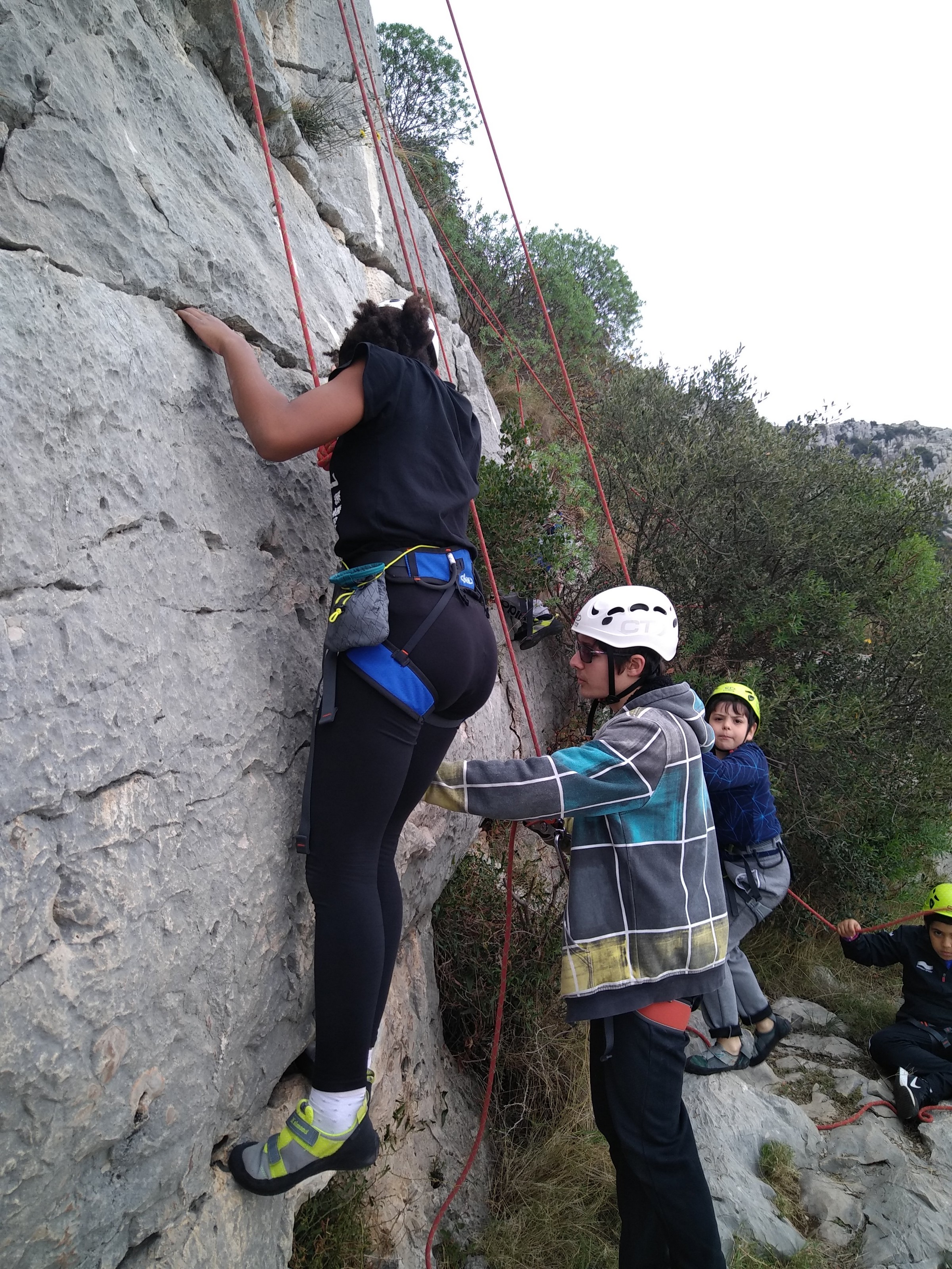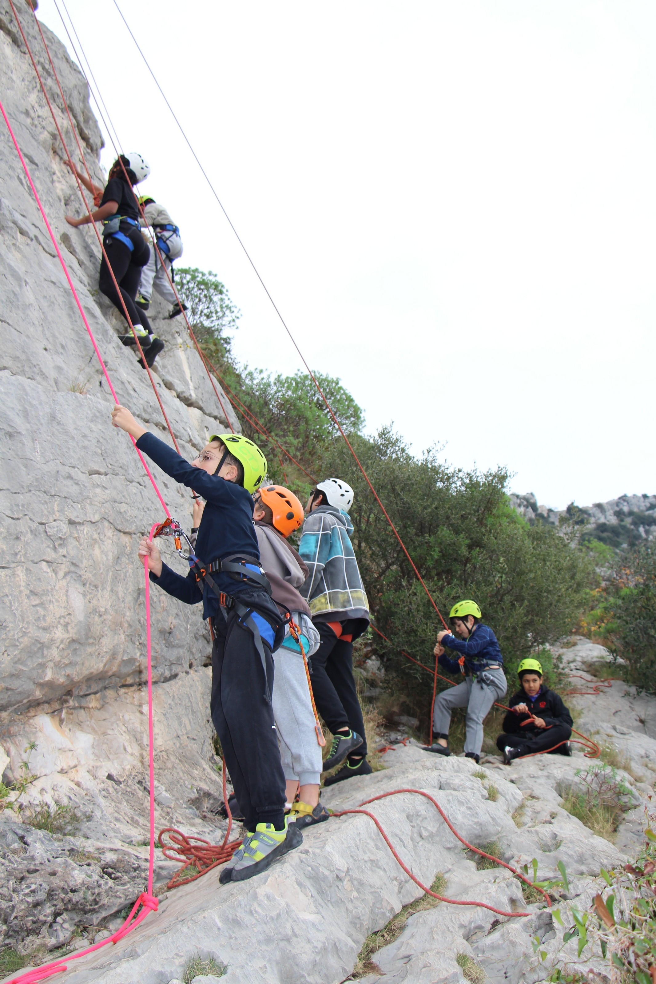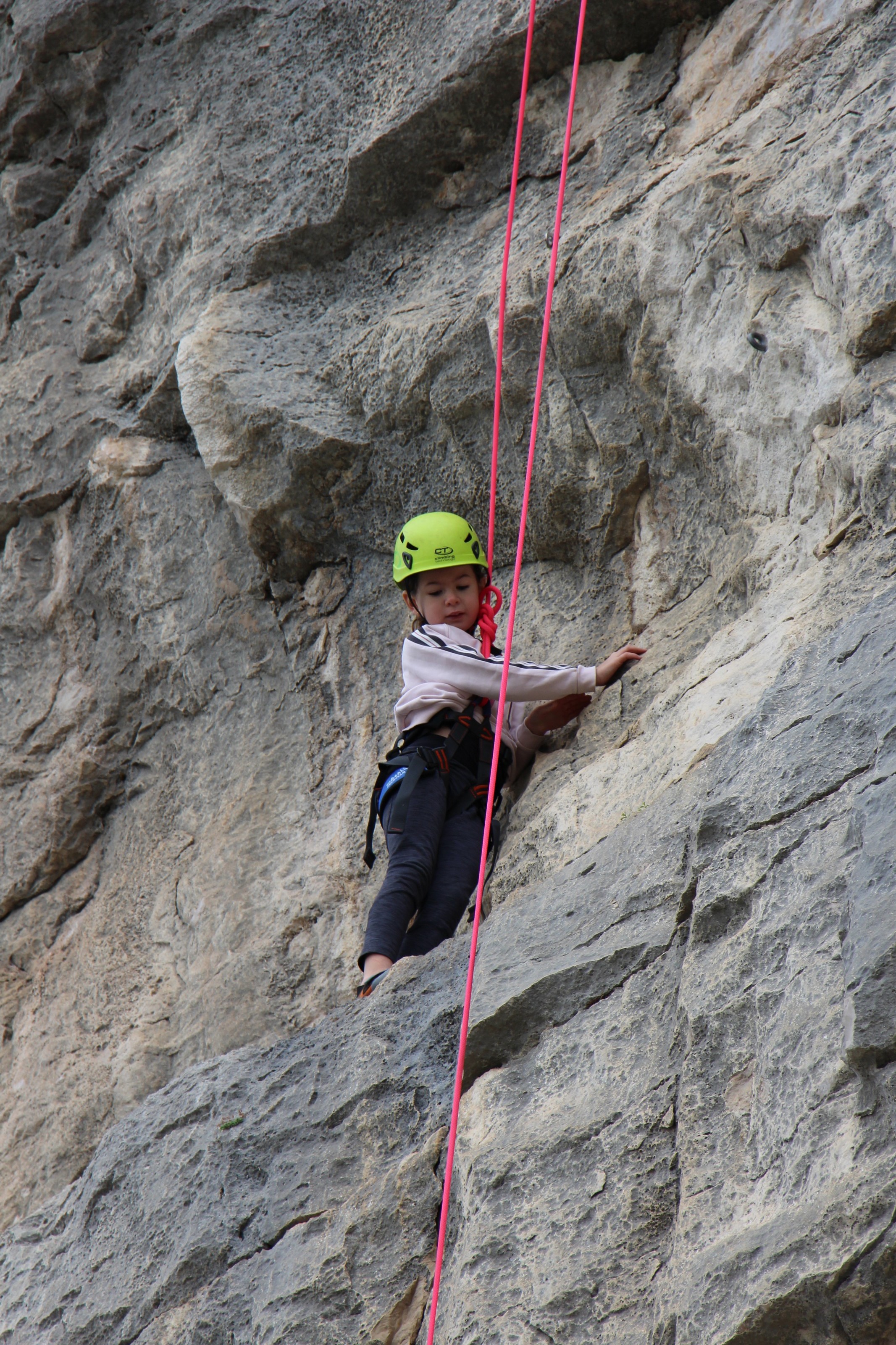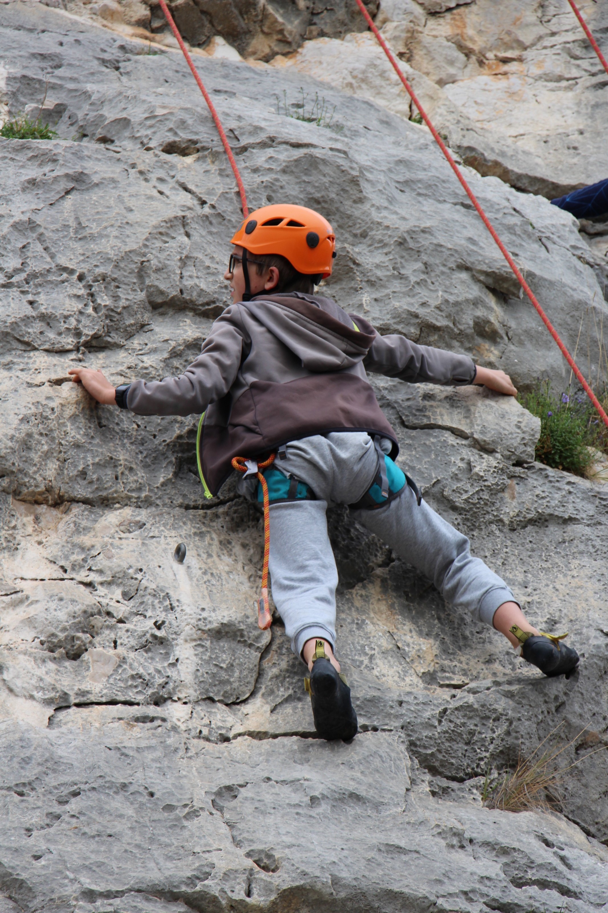 Une fois cette action effectuée, les jeunes se sont lancés à l’assaut des différents relais, avec en général pas mal de réussite. Alors oui, on ne parle pas trop d’arriver en haut dans les règles de l’art, sans pause et sans se pendre une seule fois dans la corde. Souvent, les jeunes butent et se reposent, mais c’est avec détermination qu’ils cherchent des solutions aux problèmes que leur pose la paroi, et c’est bien là le premier pas pour devenir un grimpeur aguerri : patience et pugnacité. Et ce malgré des conditions climatiques pas toujours optimum et malgré quelques frayeurs…