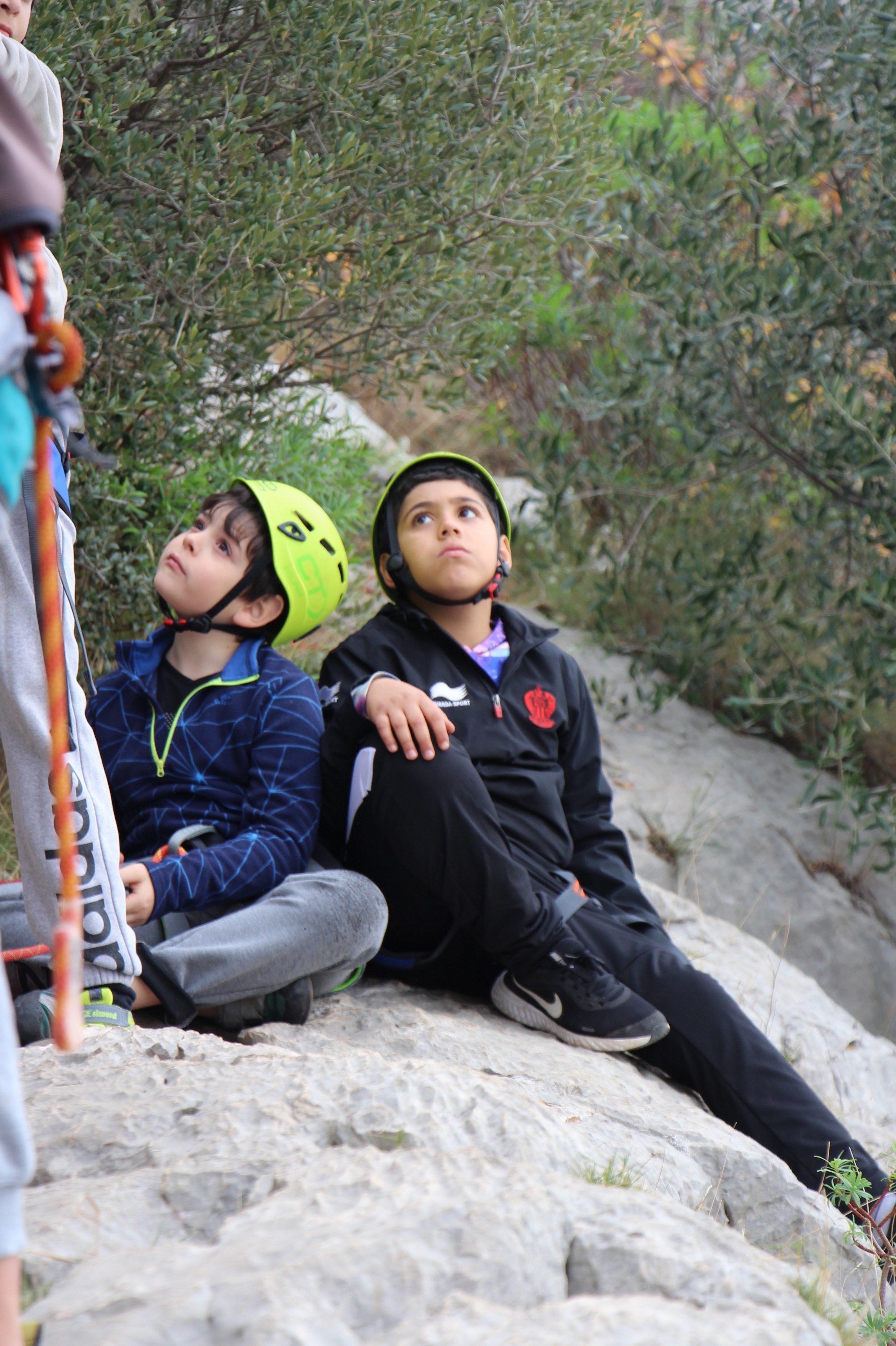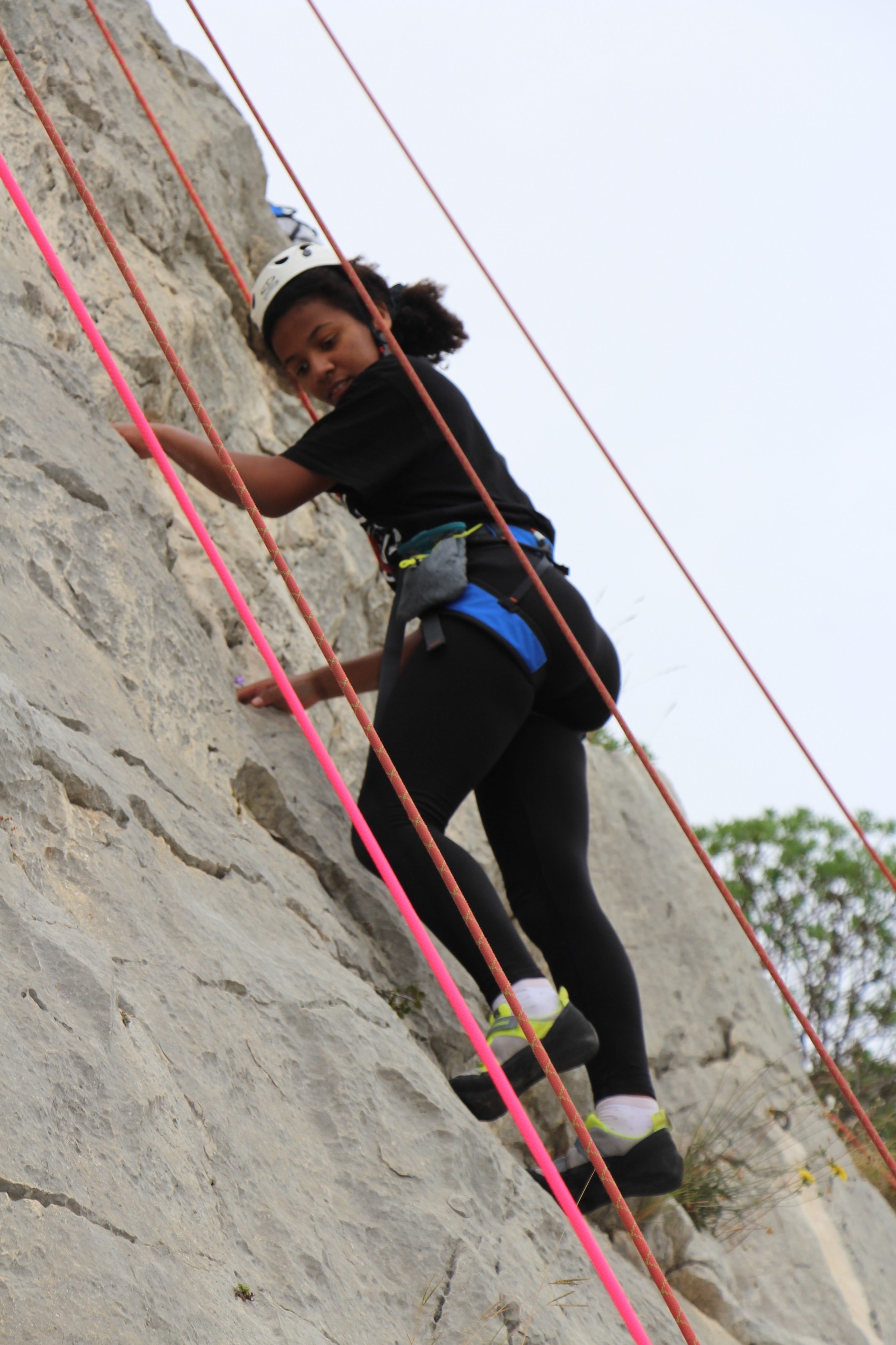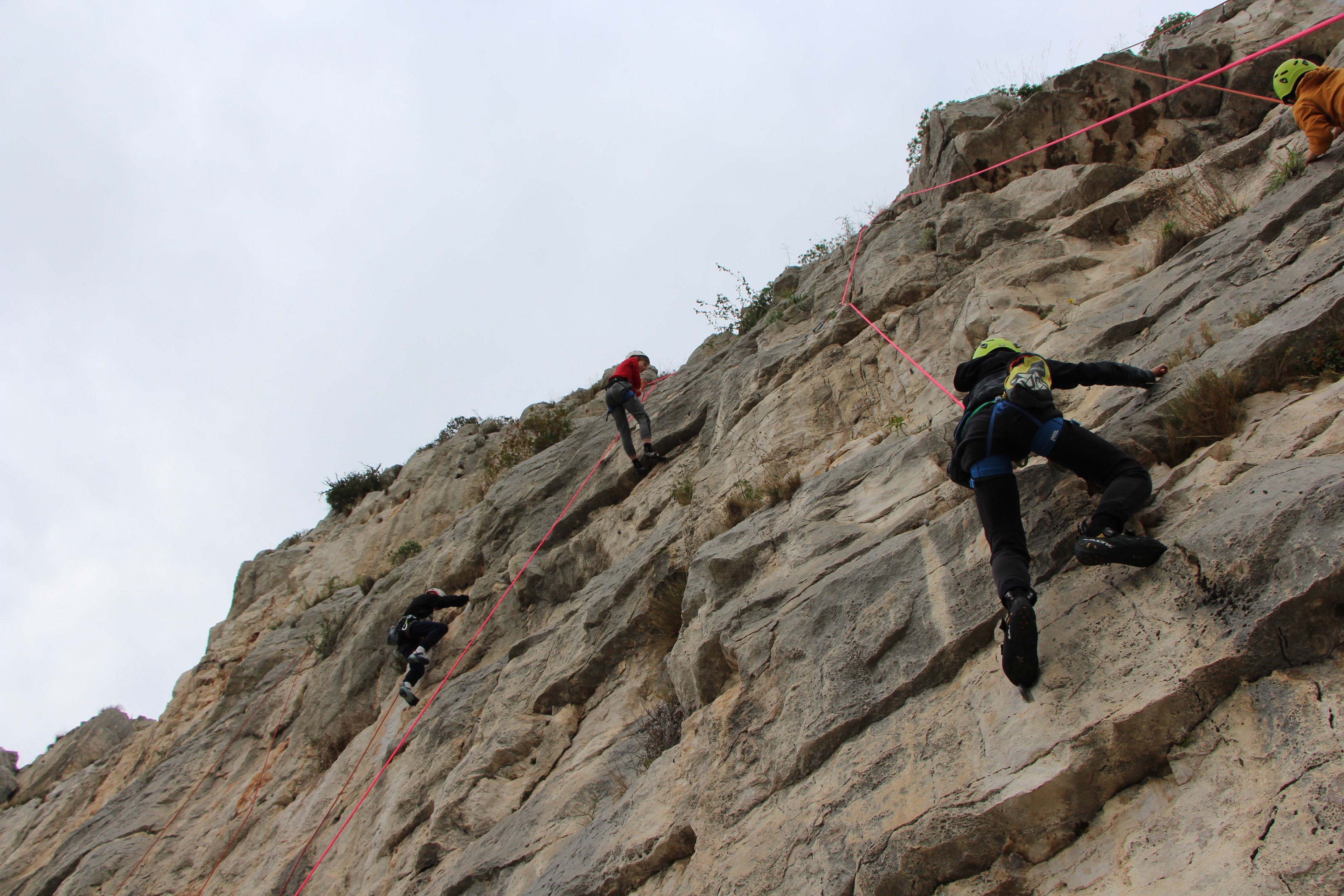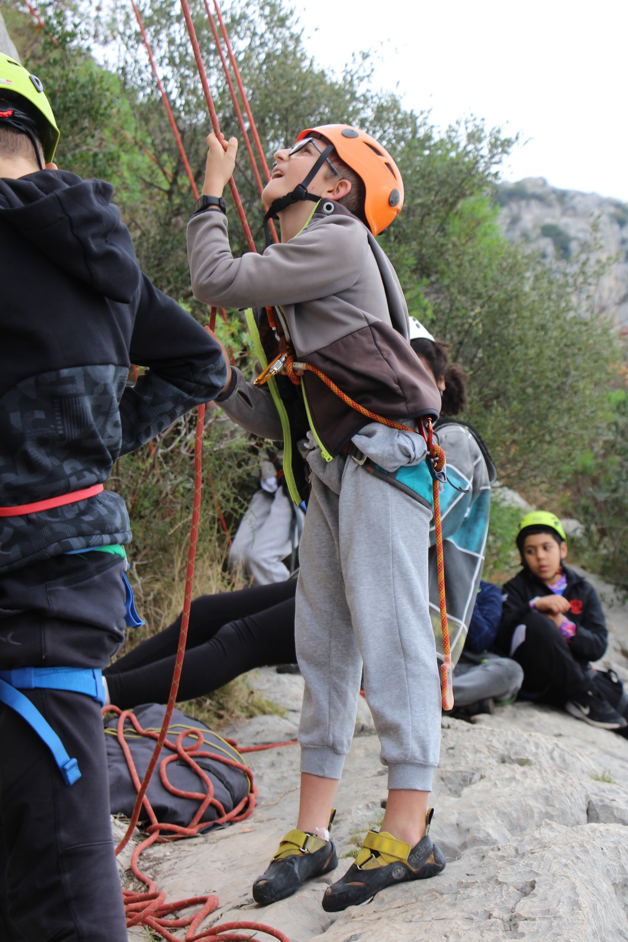 Une fois cette action effectuée, les jeunes se sont lancés à l’assaut des différents relais, avec en général pas mal de réussite. Alors oui, on ne parle pas trop d’arriver en haut dans les règles de l’art, sans pause et sans se pendre une seule fois dans la corde. Souvent, les jeunes butent et se reposent, mais c’est avec détermination qu’ils cherchent des solutions aux problèmes que leur pose la paroi, et c’est bien là le premier pas pour devenir un grimpeur aguerri : patience et pugnacité. Et ce malgré des conditions climatiques pas toujours optimum et malgré quelques frayeurs…