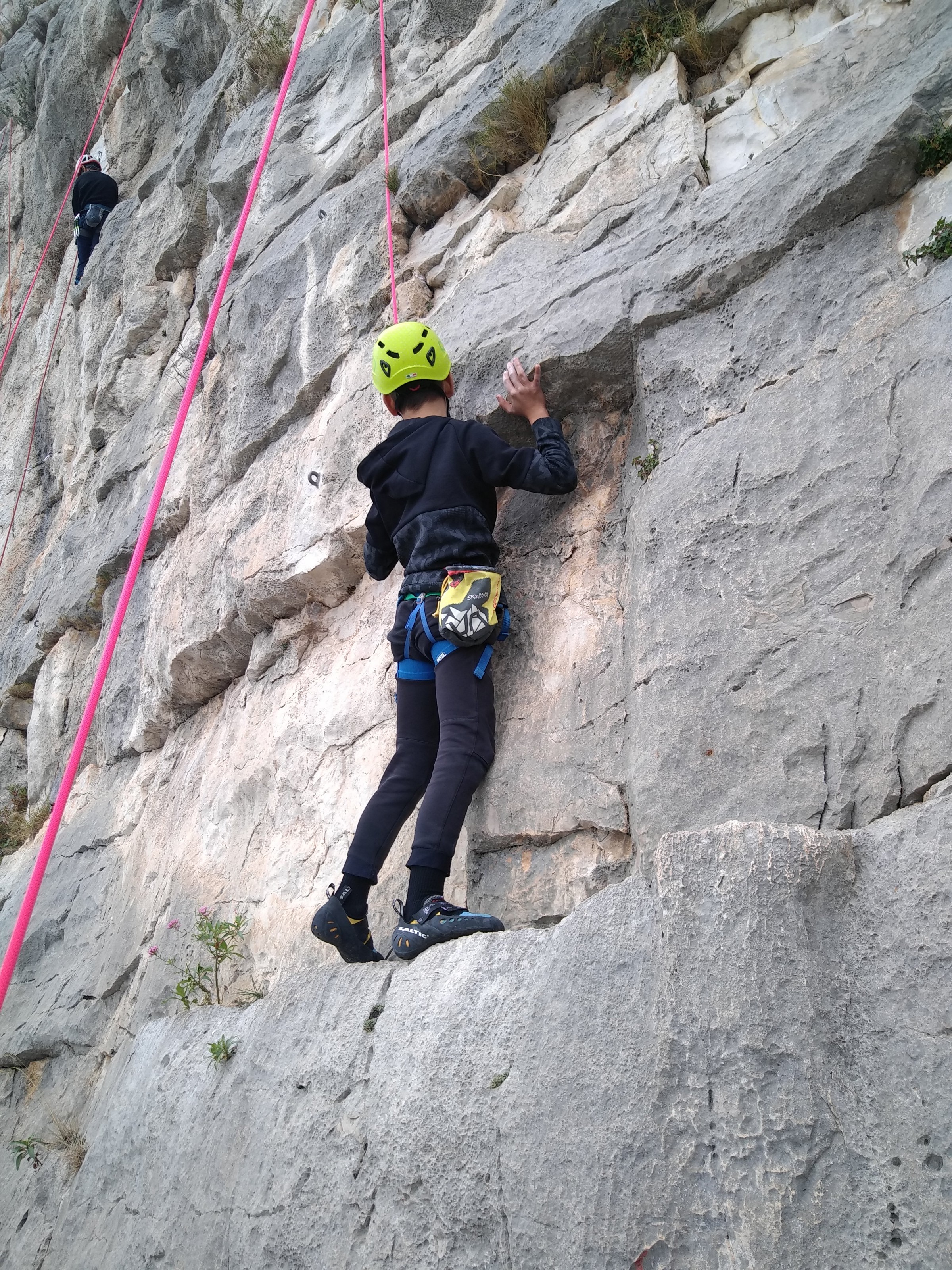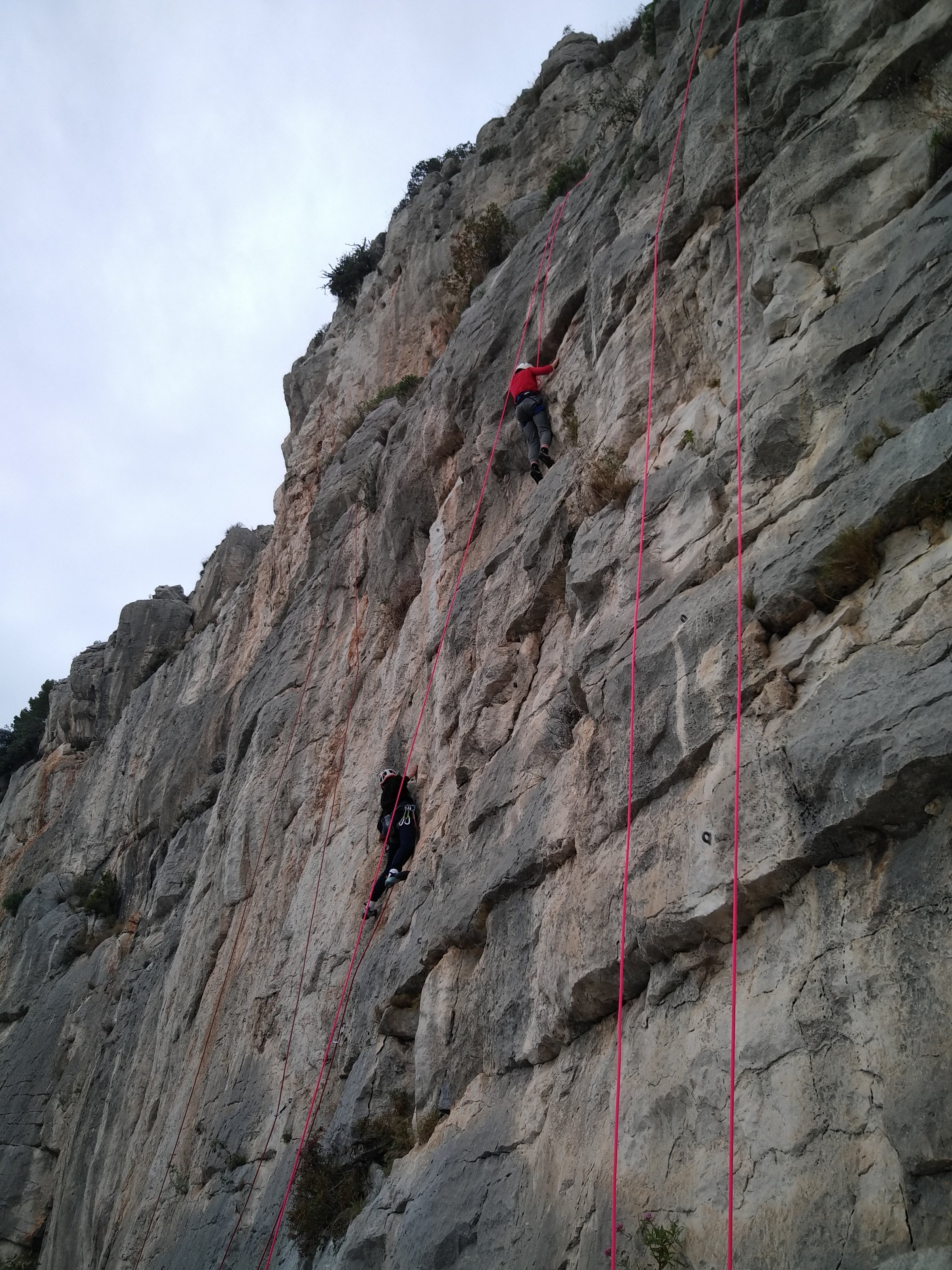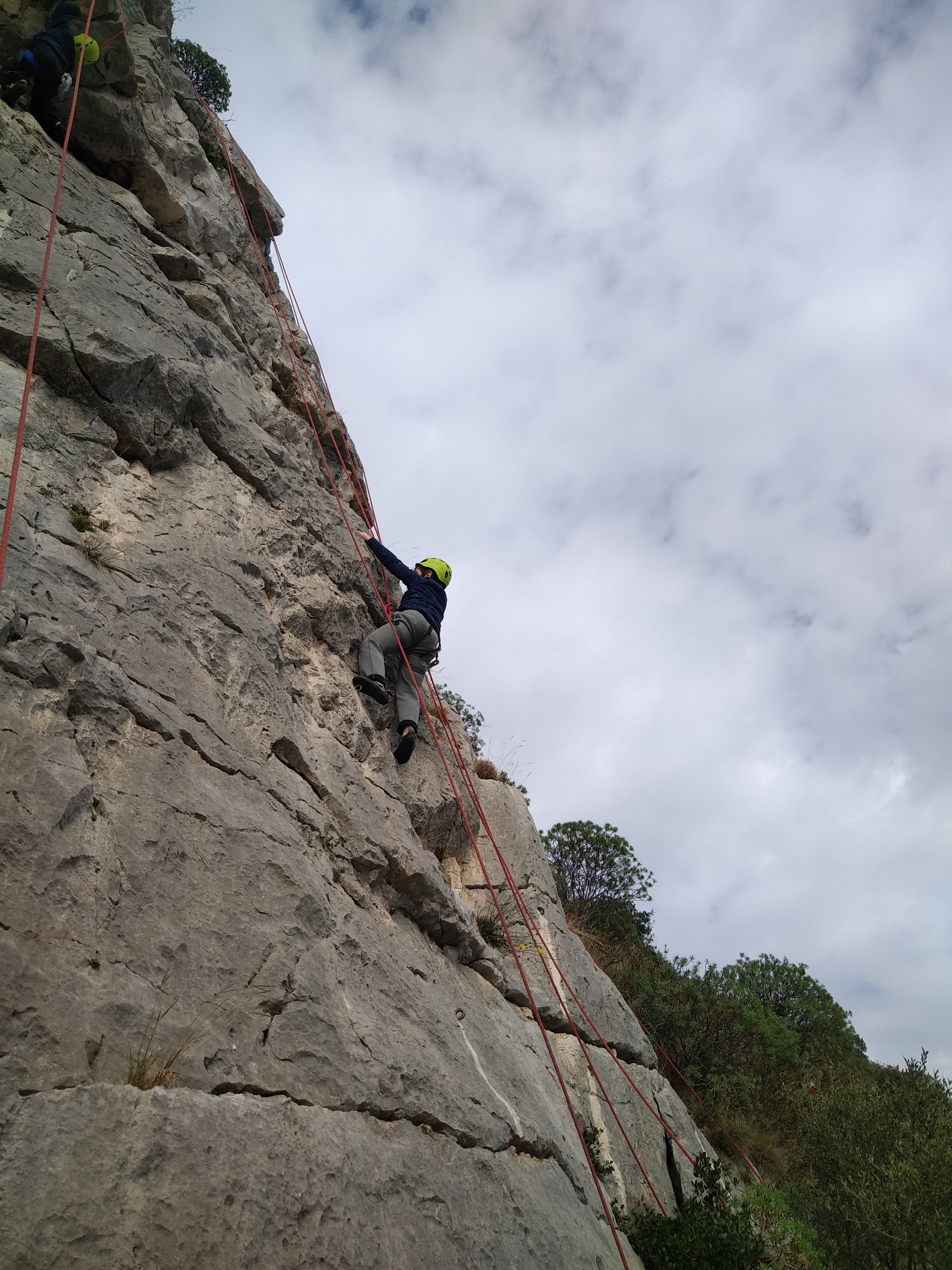 J’avais choisi pour une fois d’investir la partie droite du secteur avec une petite dizaine de lignes entre 3 et 5+. Comme peu de grands ont choisi de participer à la sortie, il nous a fallu un peu de temps pour pouvoir installer les moulinettes. J’en profite pour remercier Mathis et Bastien pour le coup de main, ainsi que Cyril pour l’assurage.