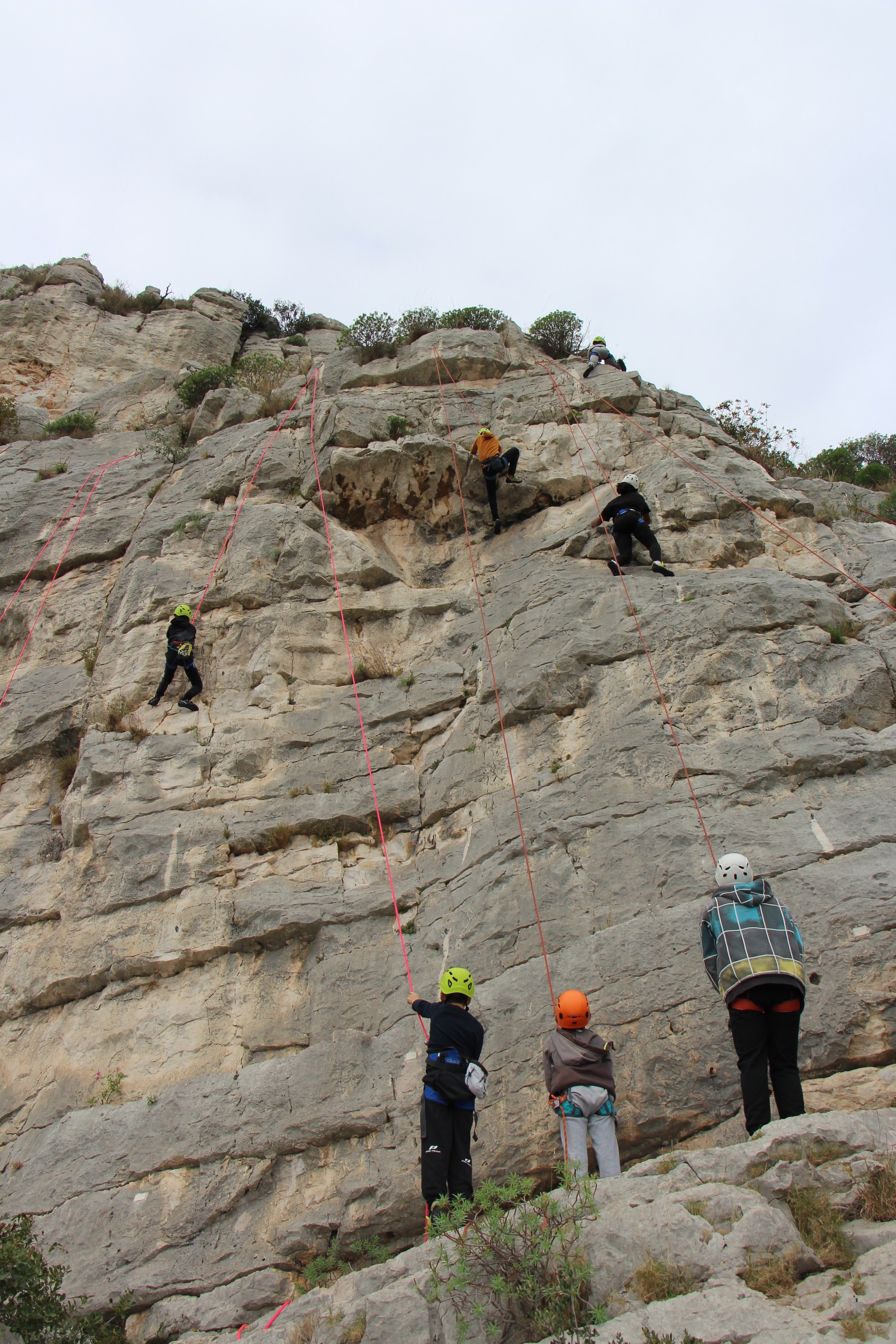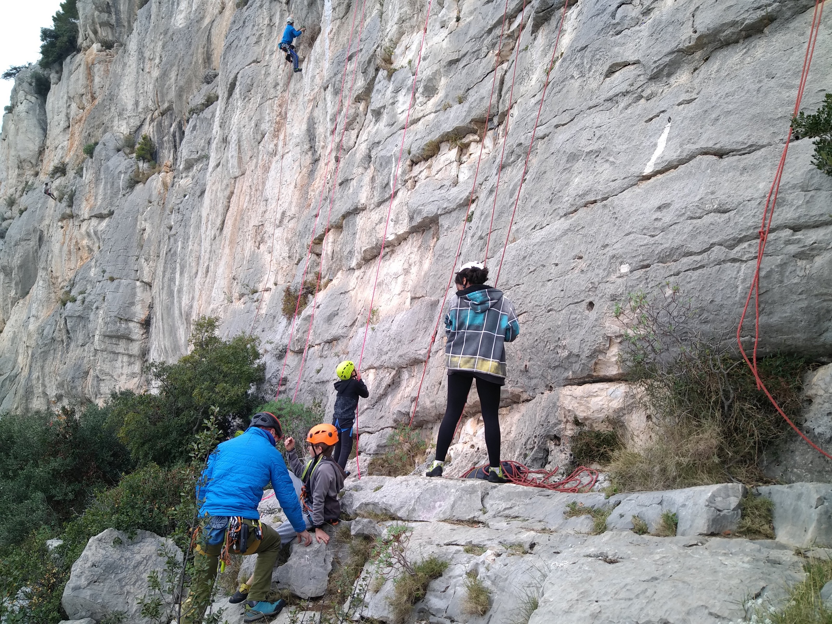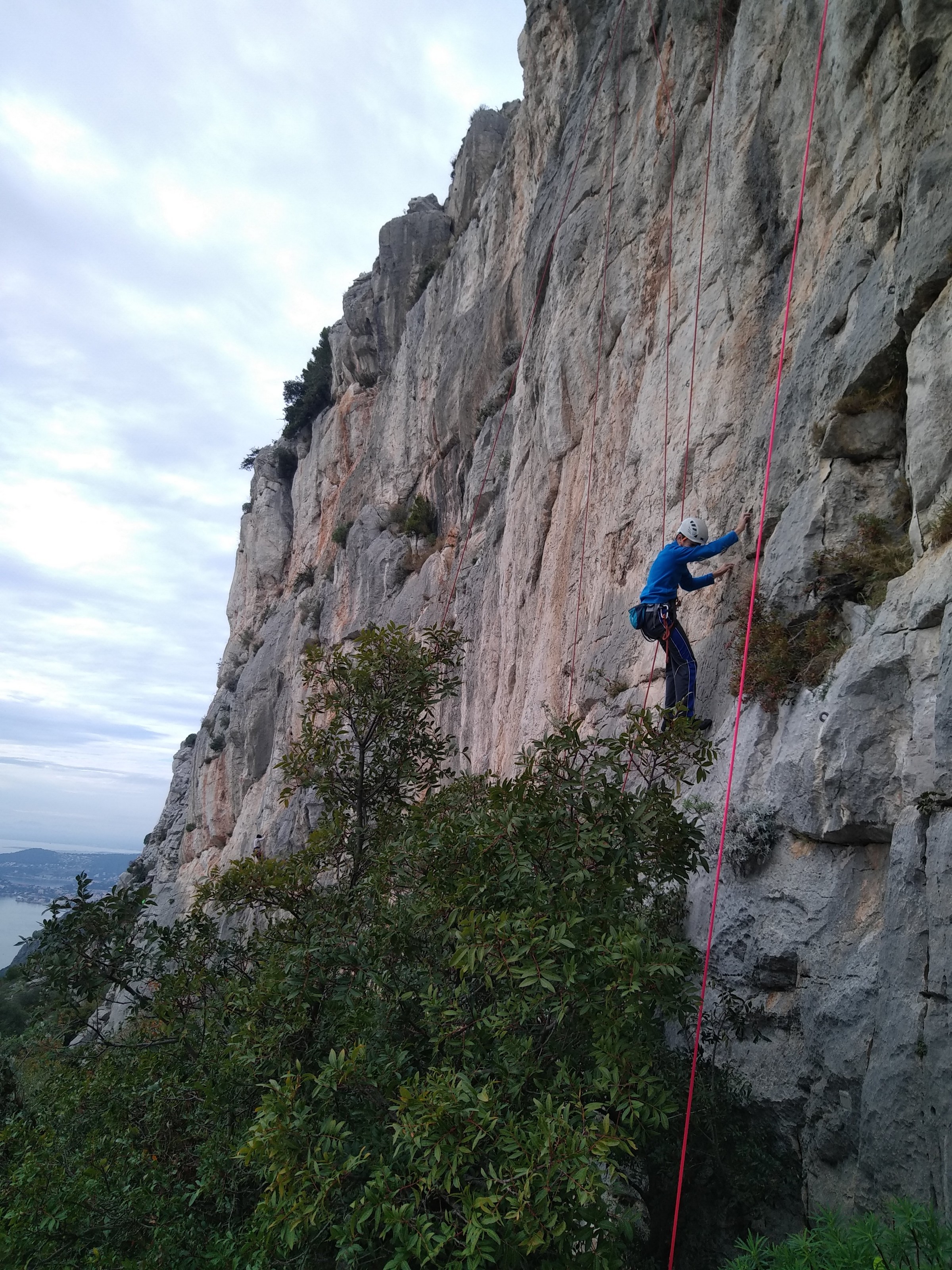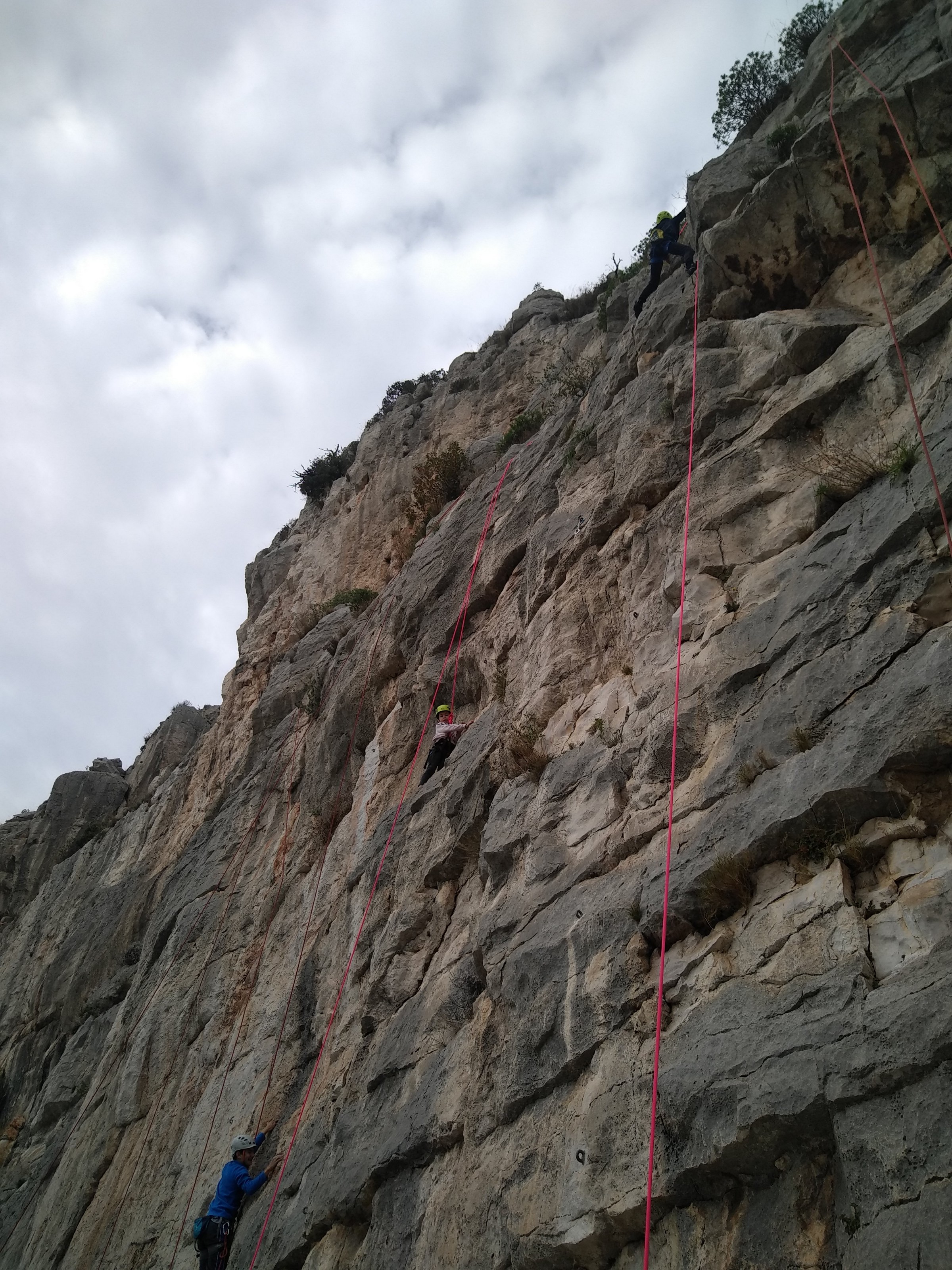 J’avais choisi pour une fois d’investir la partie droite du secteur avec une petite dizaine de lignes entre 3 et 5+. Comme peu de grands ont choisi de participer à la sortie, il nous a fallu un peu de temps pour pouvoir installer les moulinettes. J’en profite pour remercier Mathis et Bastien pour le coup de main, ainsi que Cyril pour l’assurage.