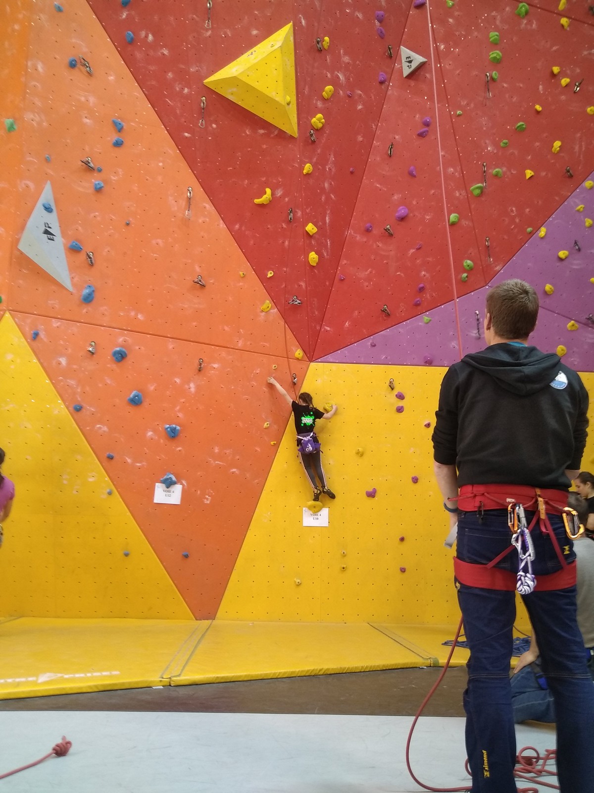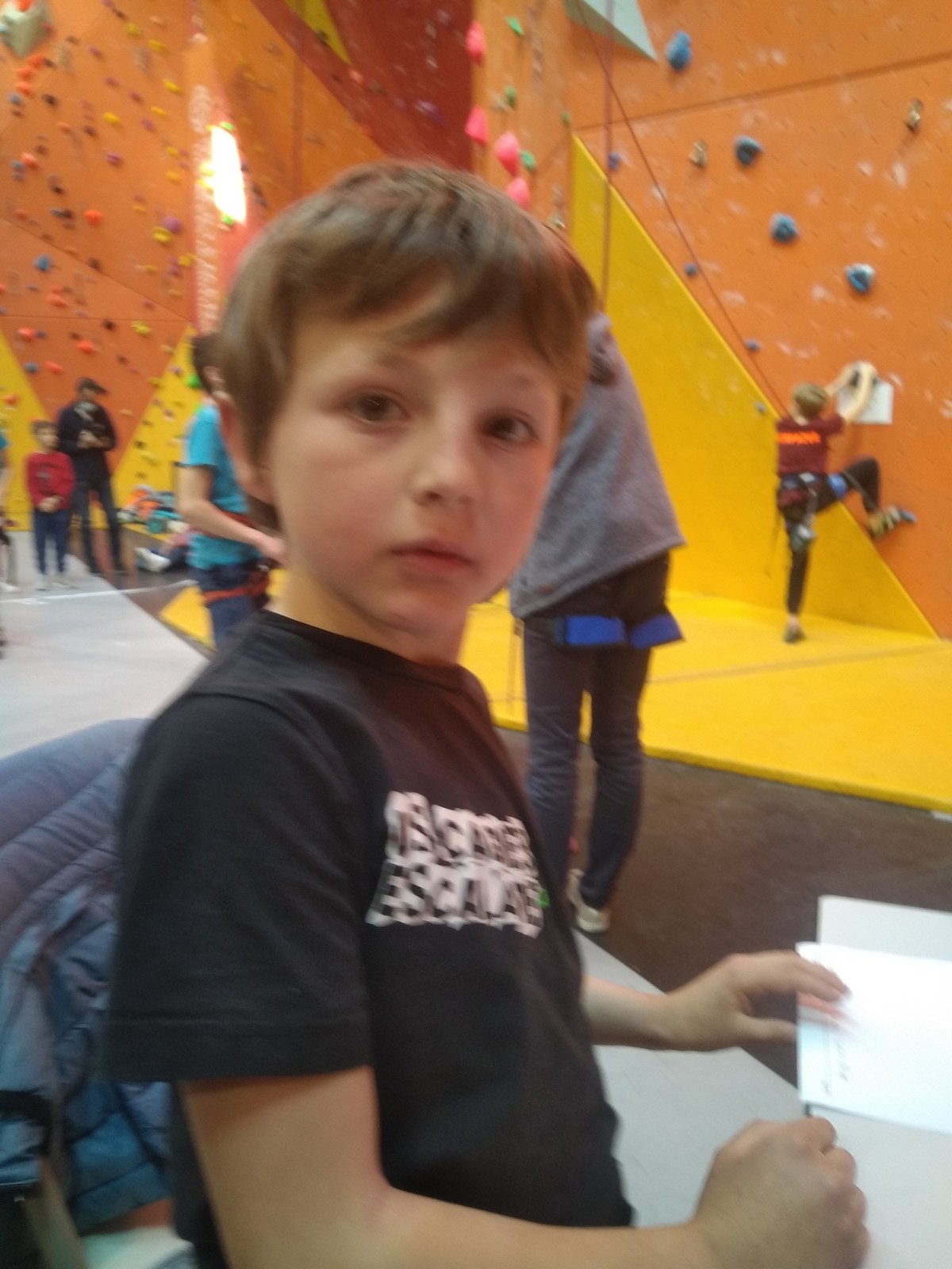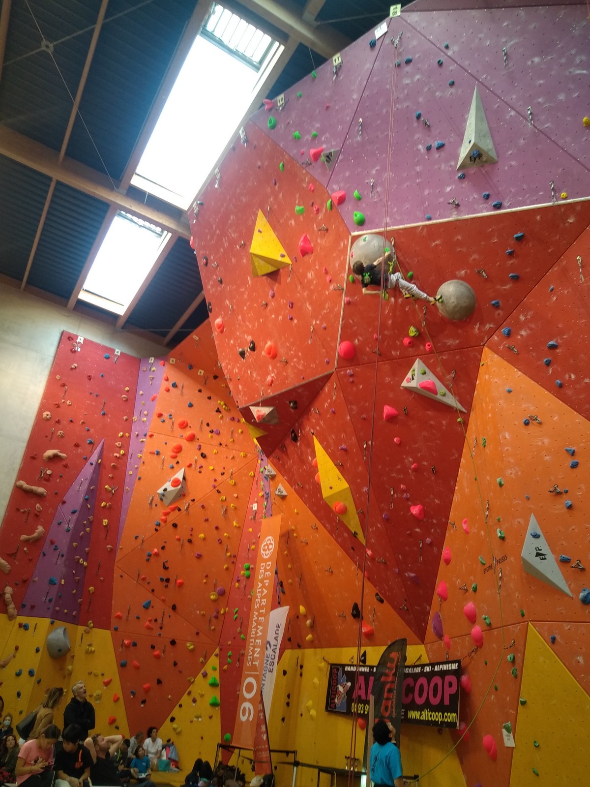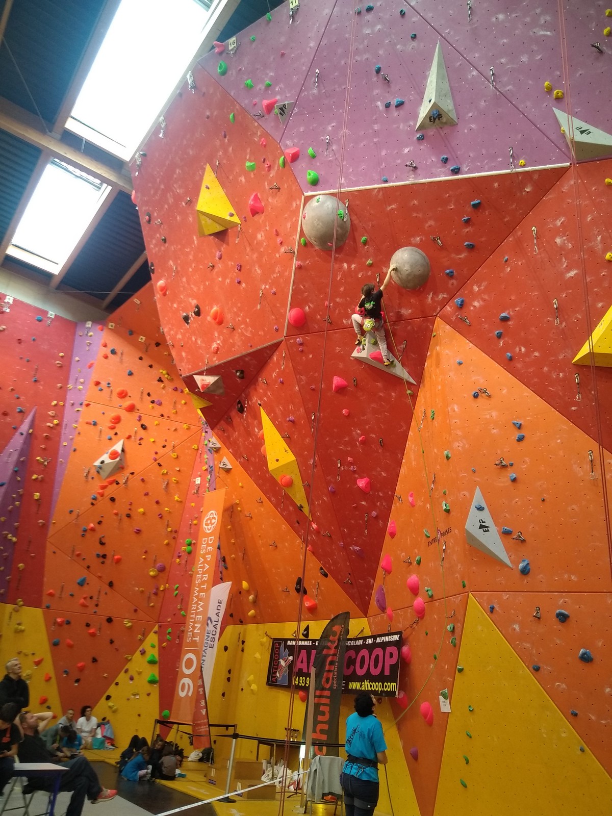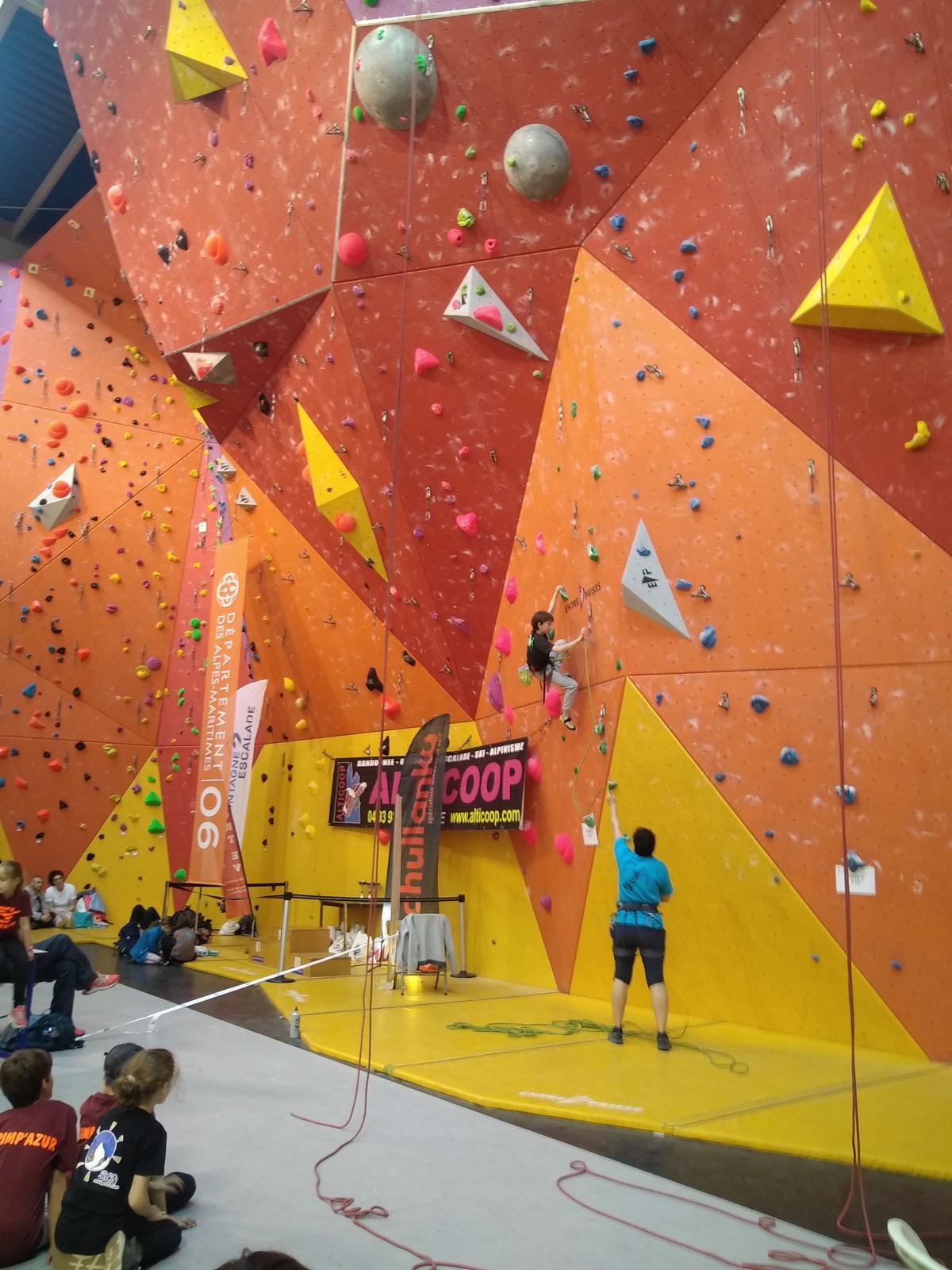 La journée a été un peu compliquée à organiser au niveau du bénévolat juges et assureurs. J’en profite ici pour remercier tous les parents et autres grimpeurs qui ont participé, certains sur la journée entière avec même des difficultés pour prendre 10min pour manger ! Ce fut rude et je n’y ai pas coupé. J’ai passé une bonne partie de la matinée à courir après les enfants, micro à la main, pour essayer de ne pas prendre trop de retard. On s’en ai pas mal sorti ! Et après, j’ai du juger pas mal et assurer un peu.