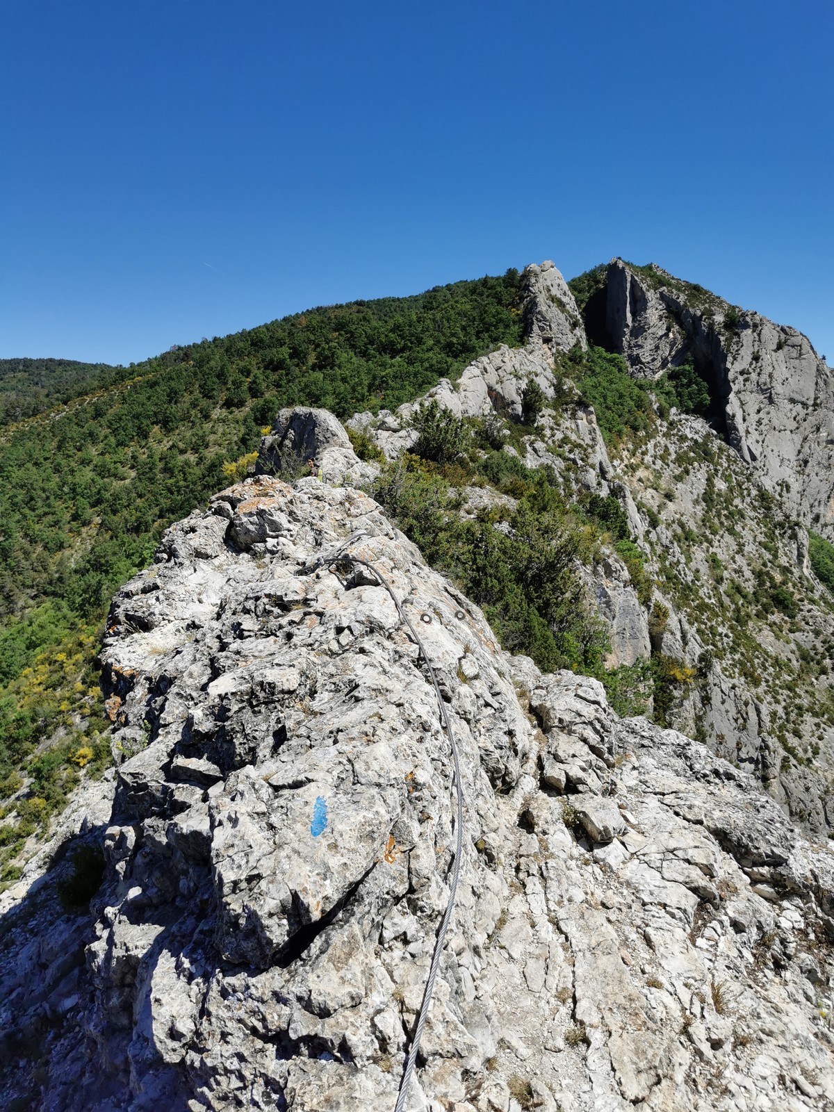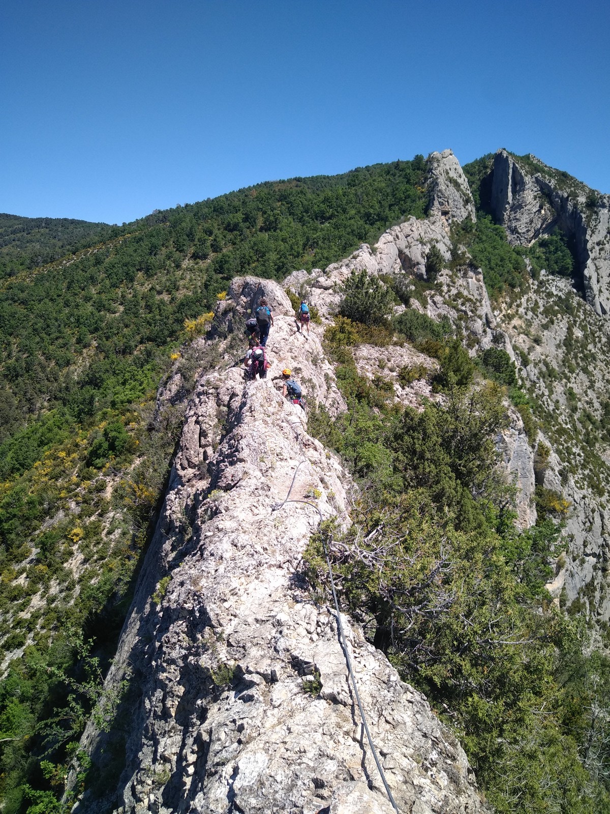 Cécile et Gautier s’élancent en premier dans « La rondeur des jours », 150m, 6b max. Jean-Luc est rapidement prêt également et attaque la première longueur en 6a de « Merci madame le maire », 150m, 6a max avec Xav et moi, suivis par Jean, Philippe et Laura.