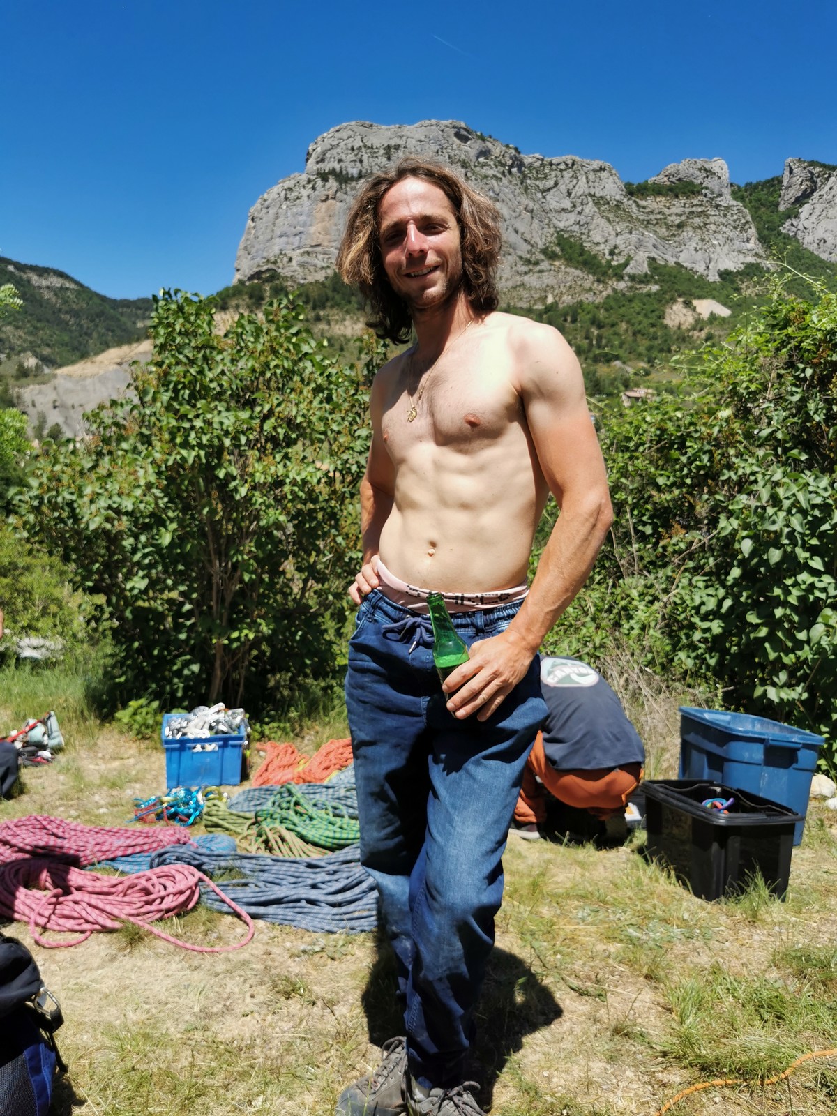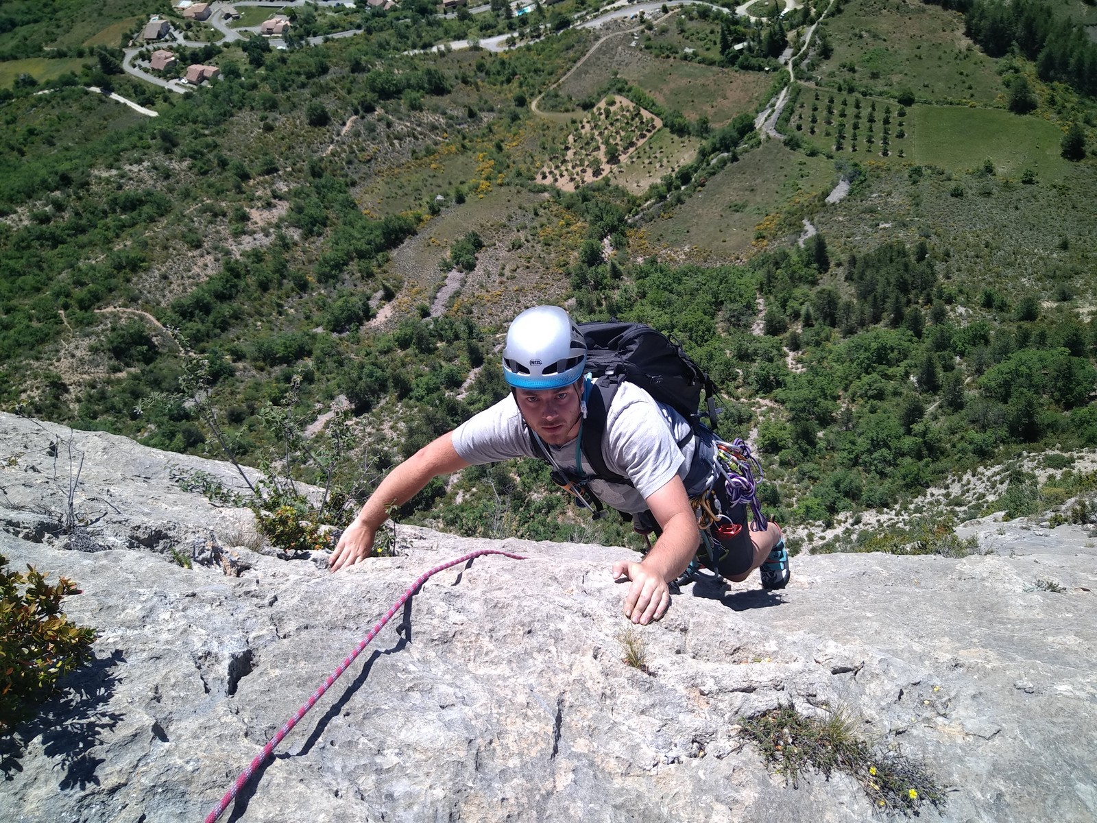 Après un repos plus ou moins long, on décide d’aller explorer un autre secteur pour la suite de la journée. On se rend donc au pied de l’Ascle, un beau pilier de 100m où quelques longueurs nous attendent. Nous patientons jusqu’à environ 15h pour laisser passer les grosses chaleur et prendre un peu d’ombre avant de commencer à grimper.