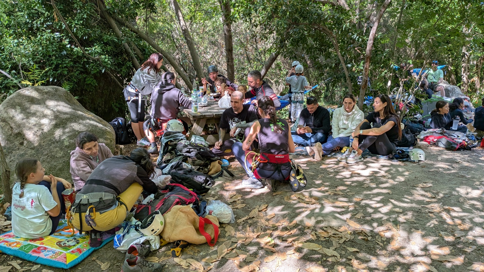 Ce dimanche 5 octobre l’US Cagnes organisait la première sortie « club », une des trois sorties de l’année où tout le monde est invité à partager un moment convivial au pied d’un bout de caillou, ici de la dalle du Plantier situé sur la commune de Contes. La nature y est préservée, les bogues jonchent le sol, les châtaigniers règnent en maître et sont en plus des alliés parfaits pour naviguer entre ombre et soleil.