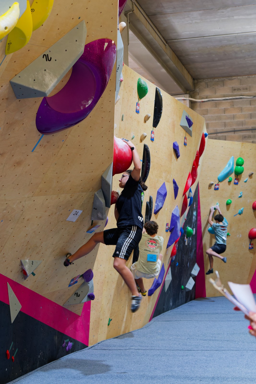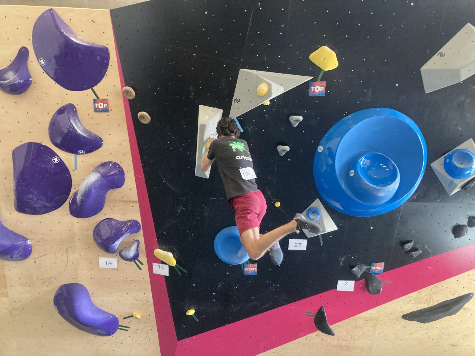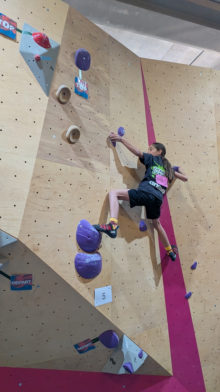 Nathan, de son côté, n’a pas encore trop de stratégie mais une énergie incroyable. Je le vois mettre des essais à la chaîne, à tel point que je suis obligé de le freiner un peu. Mais il fait son bonhome de chemin et ne se laisse pas impressionner par les blocs durs : il essaie tout ! Il finit avec 11 blocs au compteur et 3 zones et une belle 10ème place. Ça progresse sérieusement !