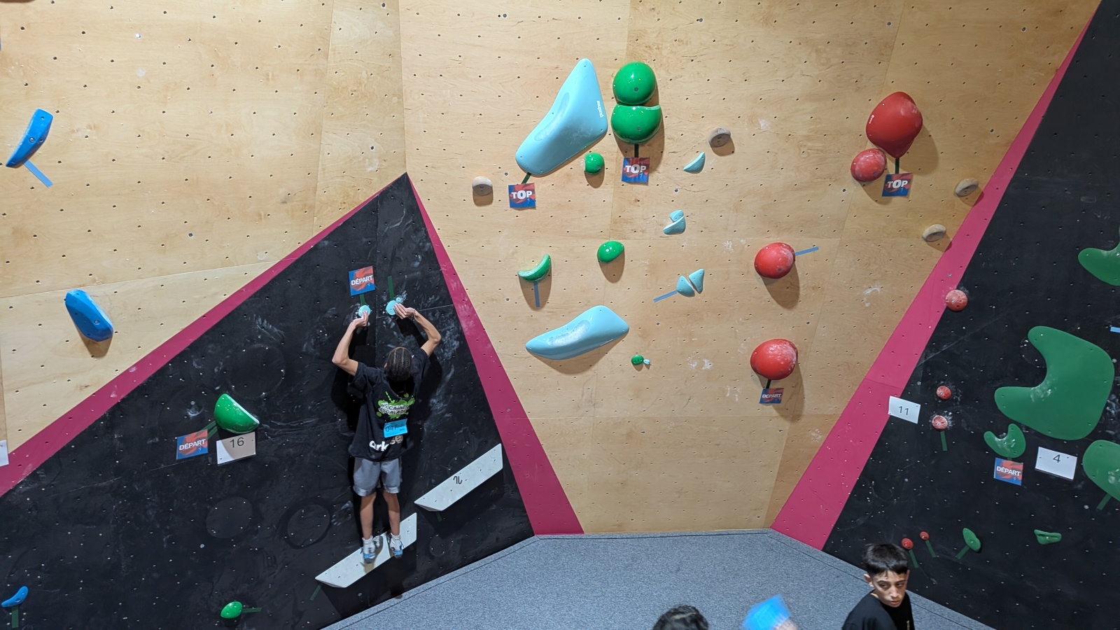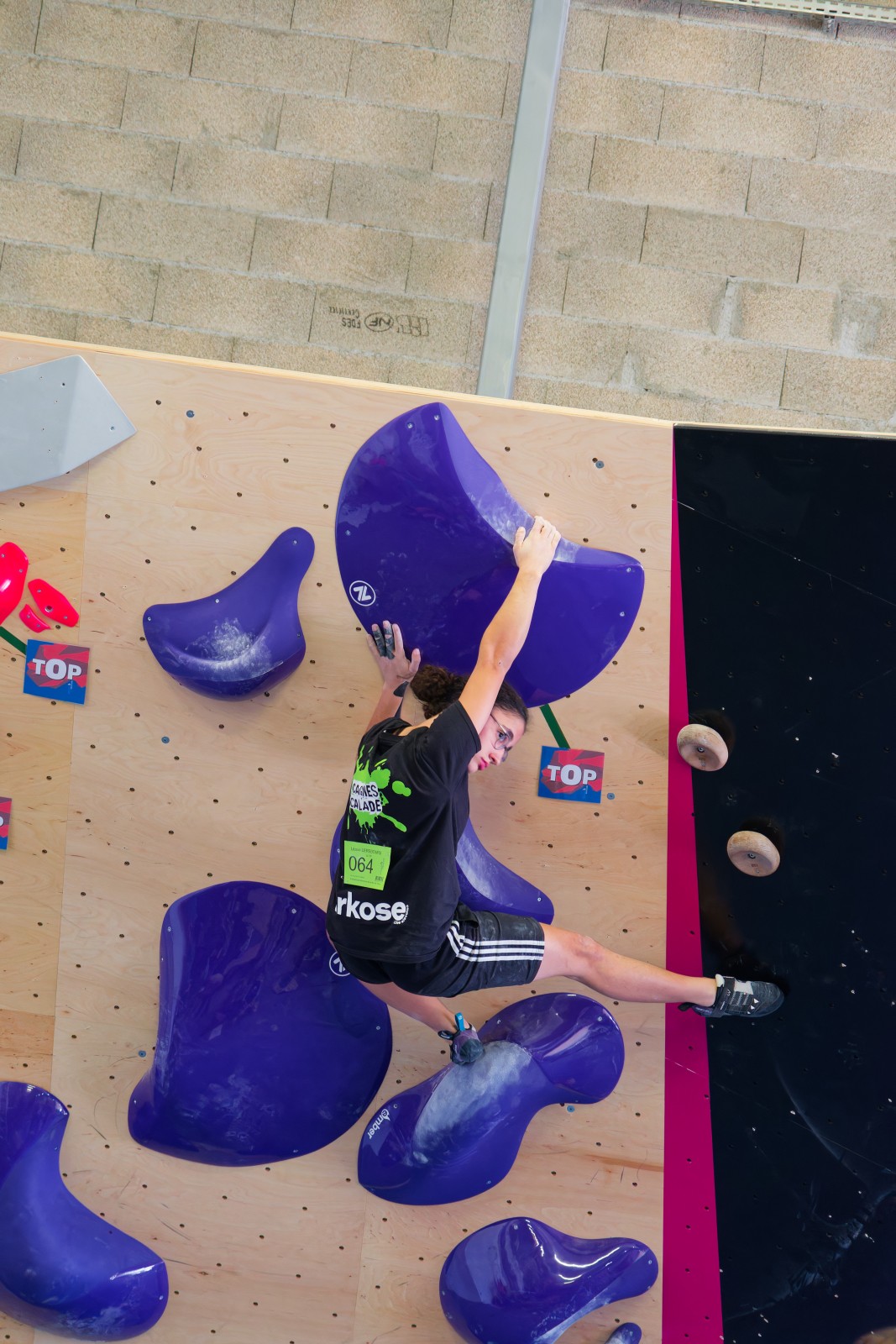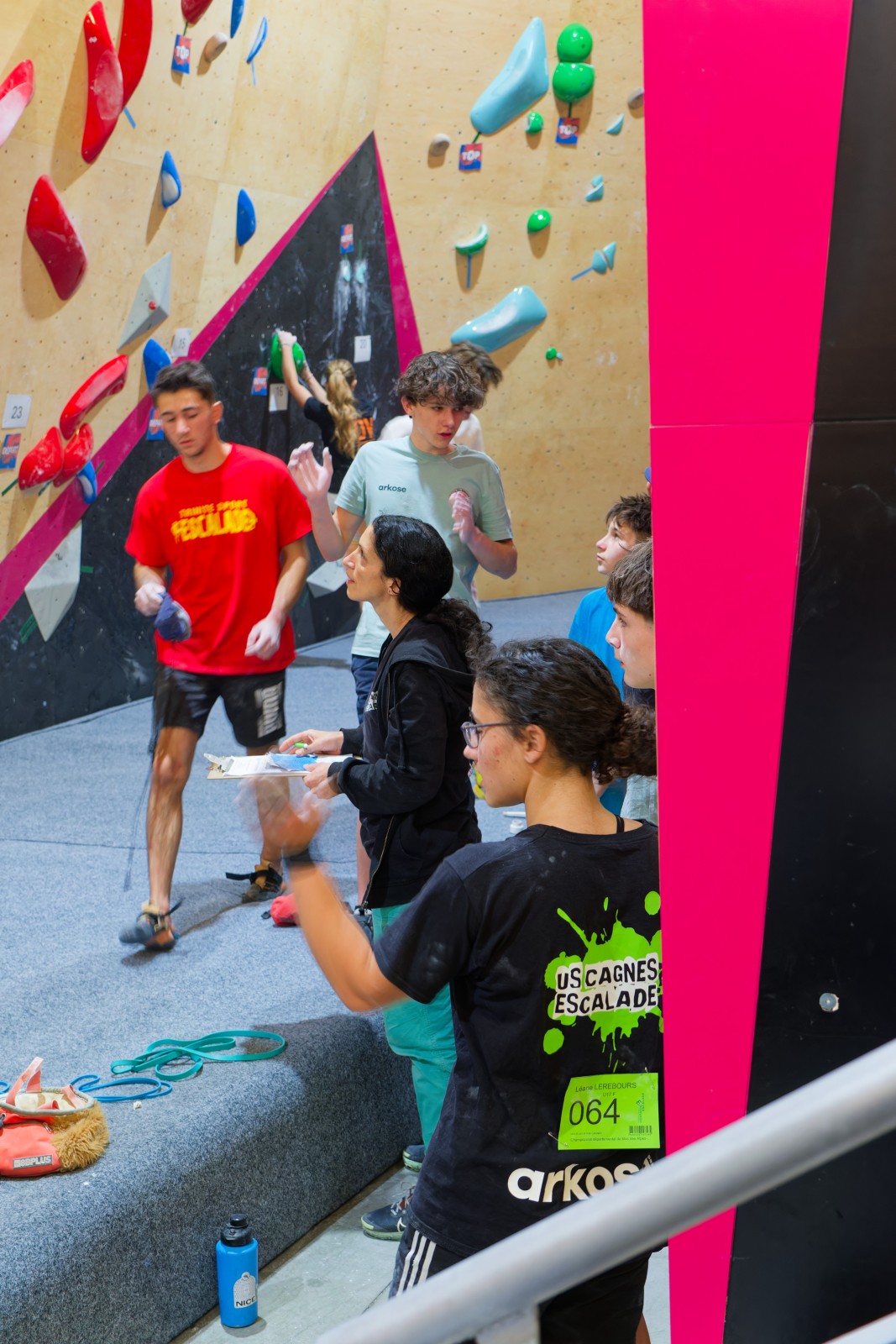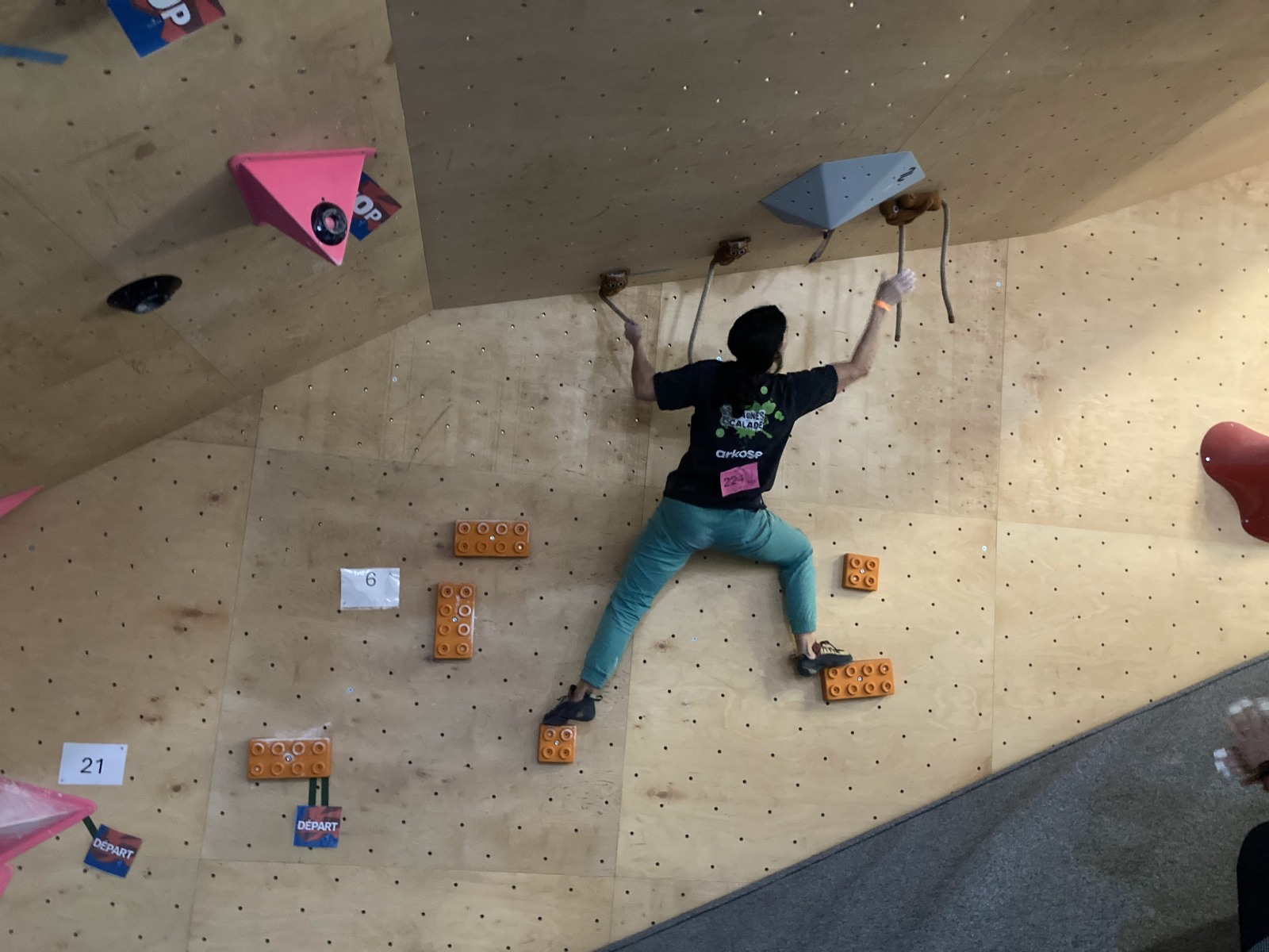 Nathan, de son côté, n’a pas encore trop de stratégie mais une énergie incroyable. Je le vois mettre des essais à la chaîne, à tel point que je suis obligé de le freiner un peu. Mais il fait son bonhome de chemin et ne se laisse pas impressionner par les blocs durs : il essaie tout ! Il finit avec 11 blocs au compteur et 3 zones et une belle 10ème place. Ça progresse sérieusement !