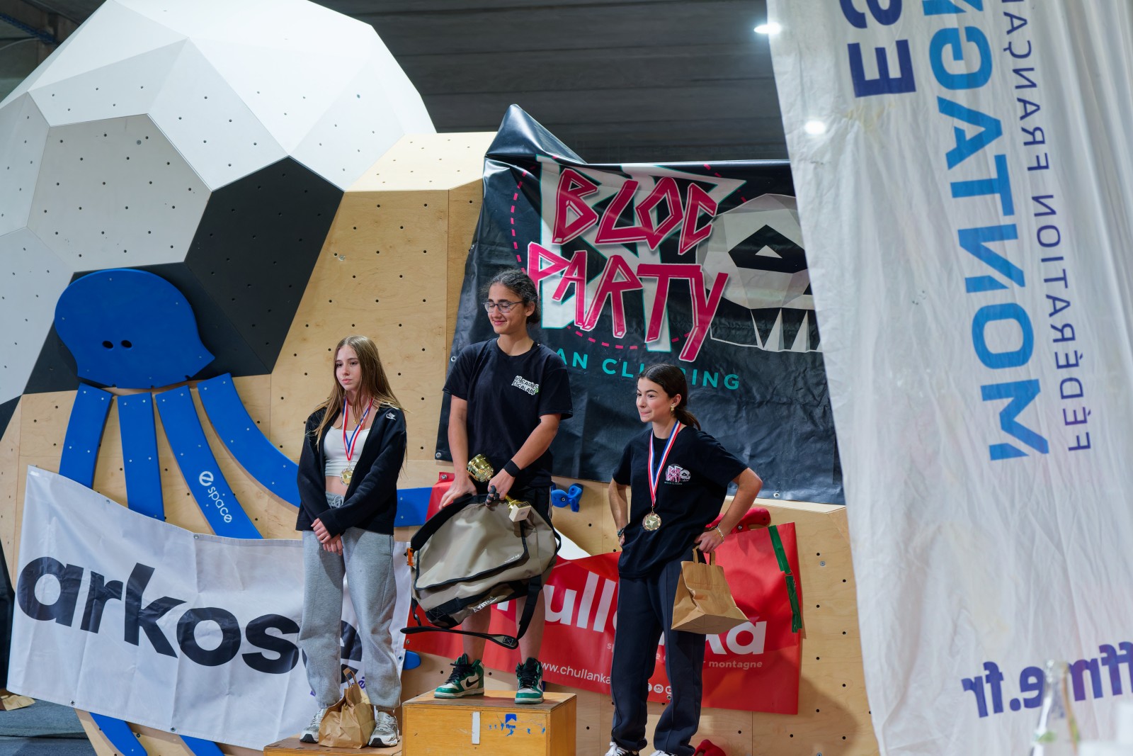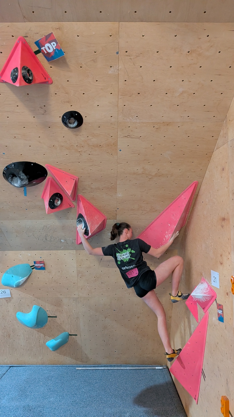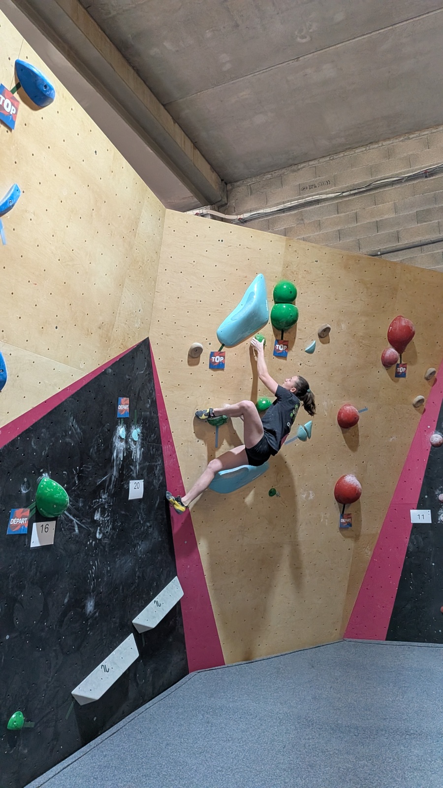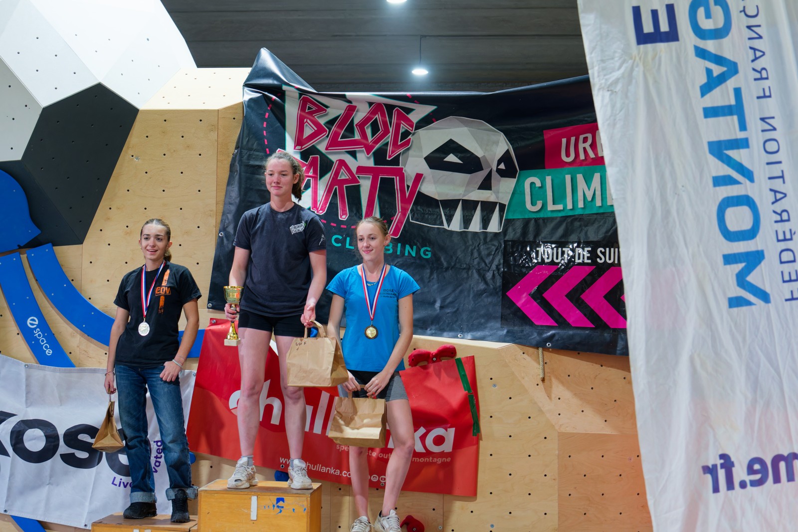 Léane n’a pas trop de pression, pour elle ça se joue plus haut. Elle remporte également la victoire haut la main. Pour Lia, c’est plus compliqué. Après une bonne performance à VdG, une petite claque en coupe de France et un gros mal de dos qui l’empêche de grimper correctement, elle prend tout de même la 4ème place.
