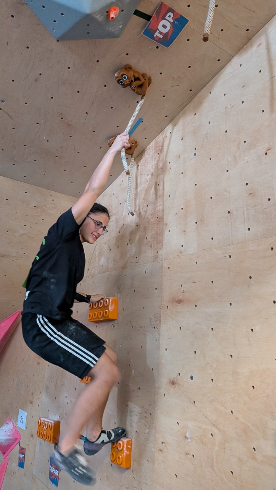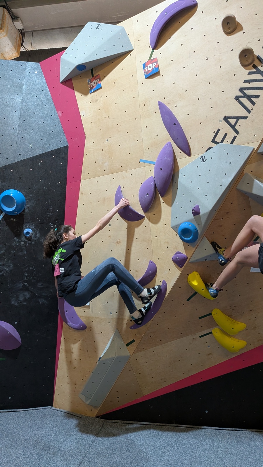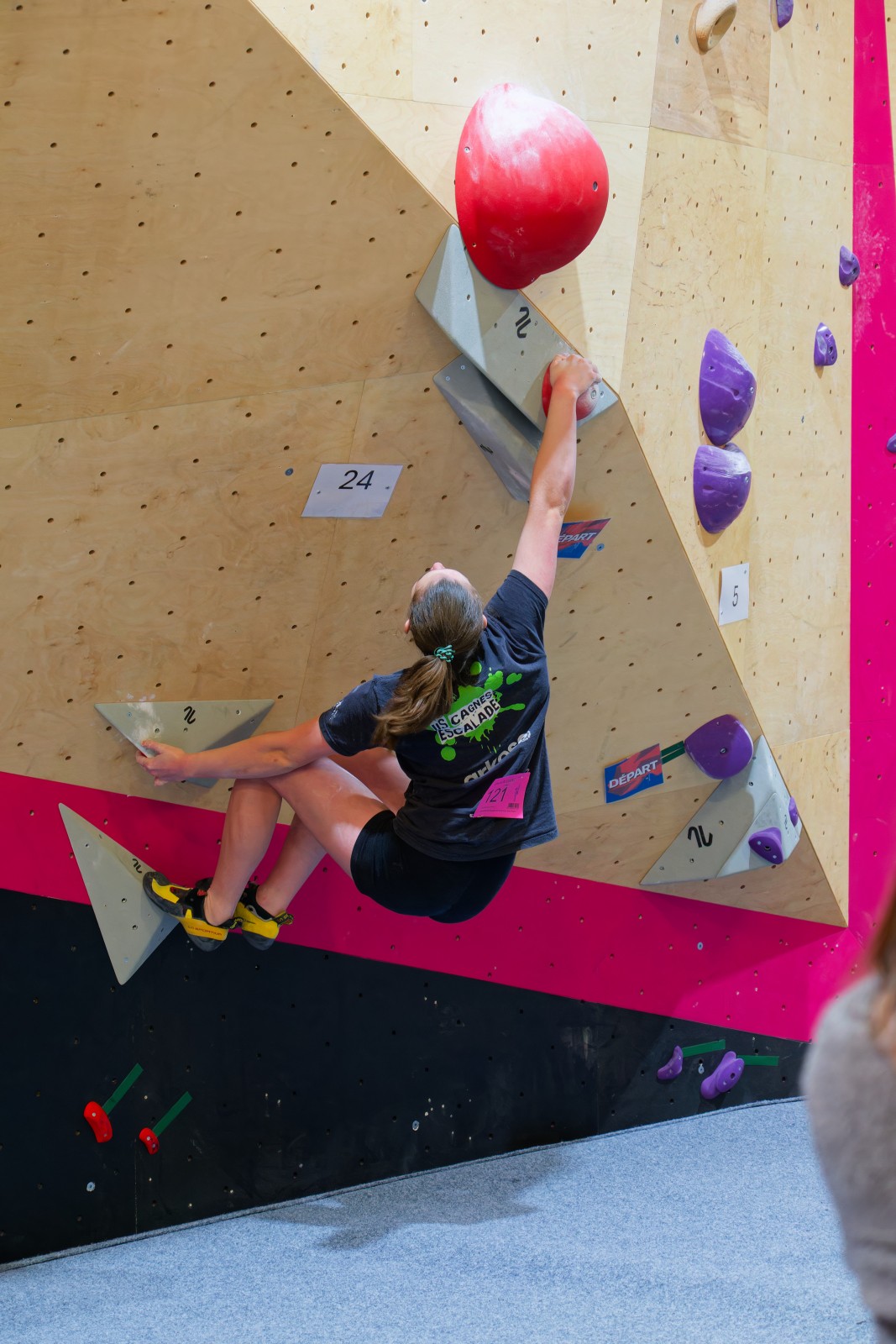 Léane n’a pas trop de pression, pour elle ça se joue plus haut. Elle remporte également la victoire haut la main. Pour Lia, c’est plus compliqué. Après une bonne performance à VdG, une petite claque en coupe de France et un gros mal de dos qui l’empêche de grimper correctement, elle prend tout de même la 4ème place.