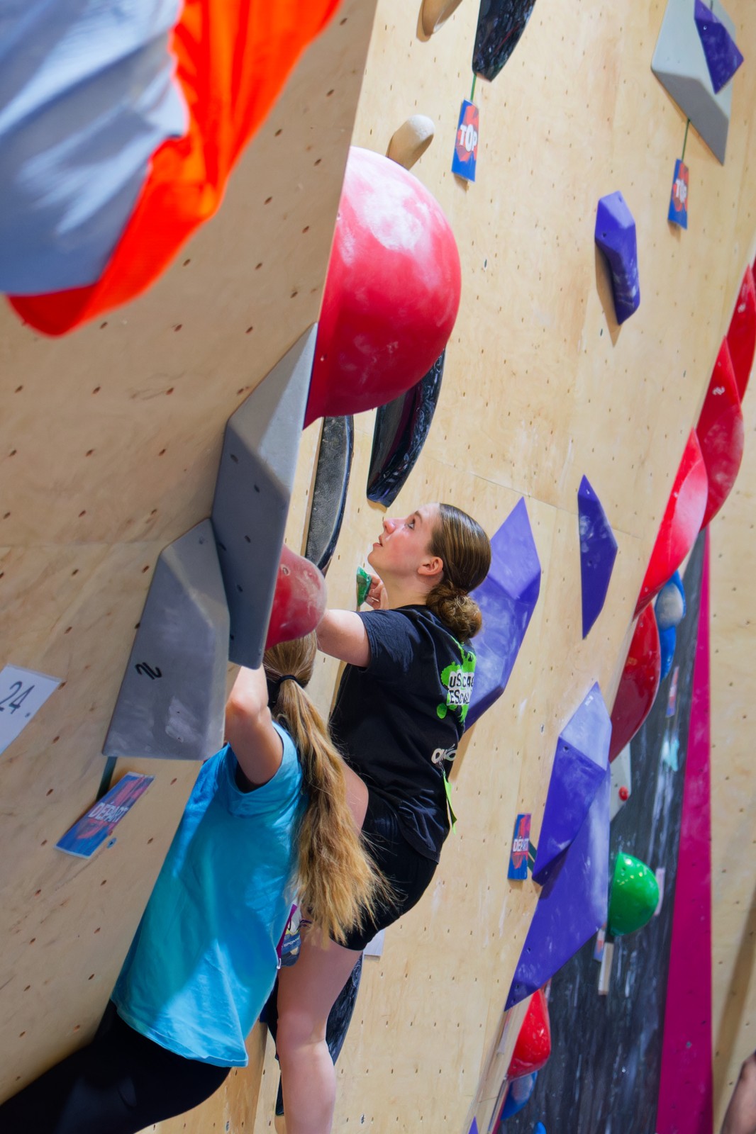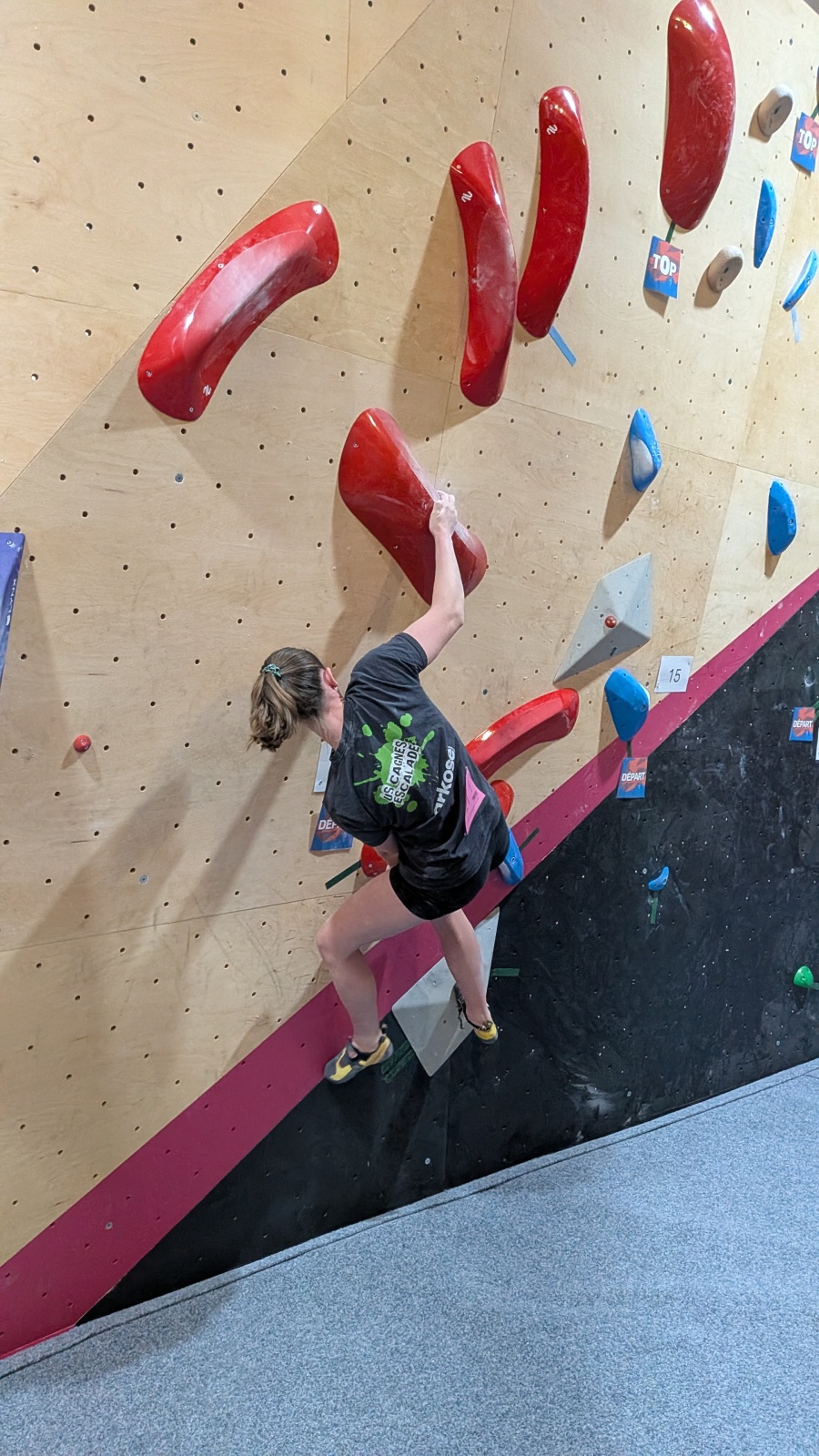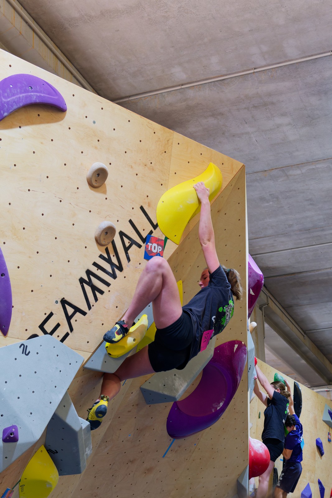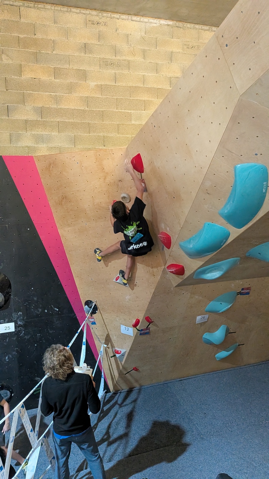 Léane n’a pas trop de pression, pour elle ça se joue plus haut. Elle remporte également la victoire haut la main. Pour Lia, c’est plus compliqué. Après une bonne performance à VdG, une petite claque en coupe de France et un gros mal de dos qui l’empêche de grimper correctement, elle prend tout de même la 4ème place.