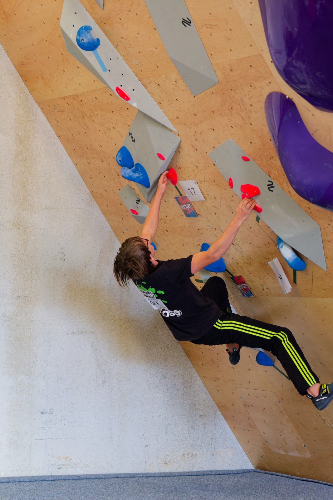 Yann se concentre sur ce qu’il doit faire, sans se focaliser sur les blocs qu’il ne réussit pas. Il change quand il sent que c’est trop dur et qu’il a besoin de temps. C’est payant et il parvient à sortir 16 blocs et 1 zone. Mais la victoire se joue à pas grand chose. Il donne de très beaux essais dans le 20 mais ne parvient pas à ramener sur la prise de fin. C’est la troisième marche du podium pour Yann et le titre de vice-champion départemental.
