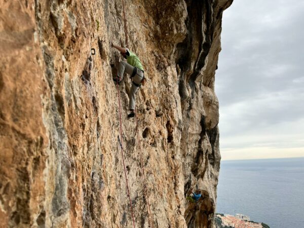 Kim part en tête dans la classique Bigben (4c) pendant que Mathieu s’échauffe dans « si tu végète t’as rien »(6a). Un réveil trop déversant à son goût. Suite à cela Laurent part en tête dans un 6a typique de la grotte pendant que Florian enchaine la némésis de Mathieu.