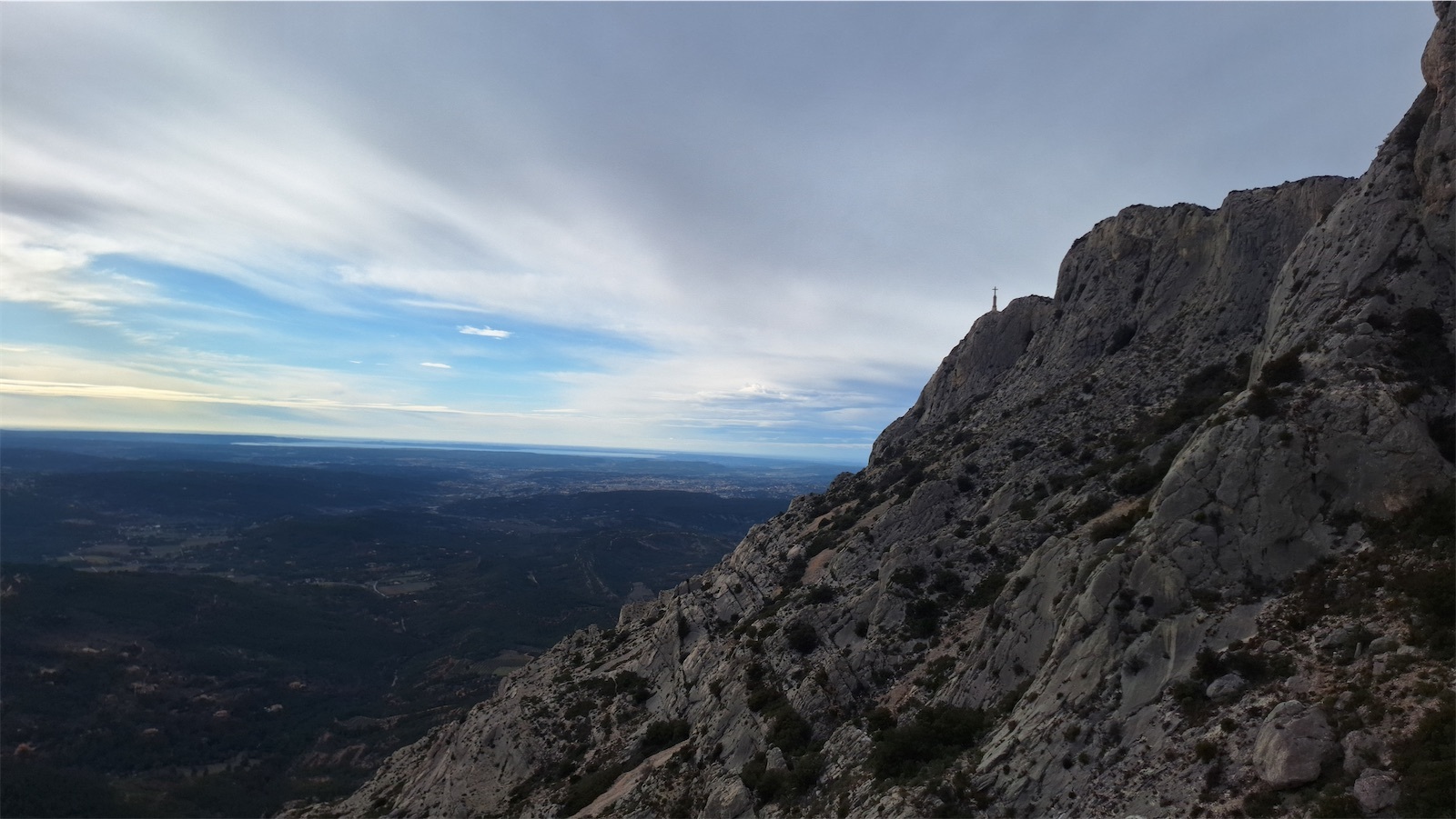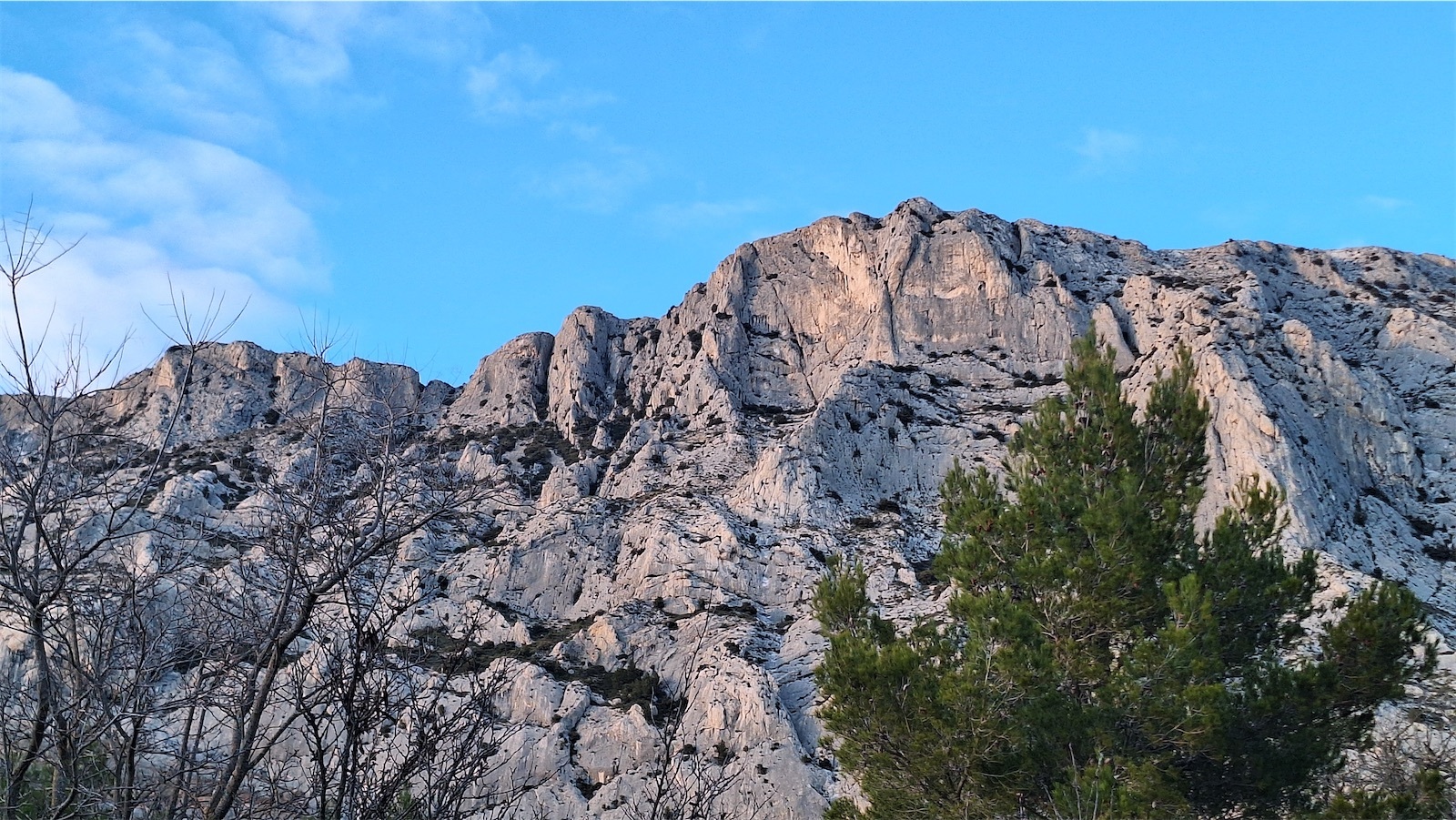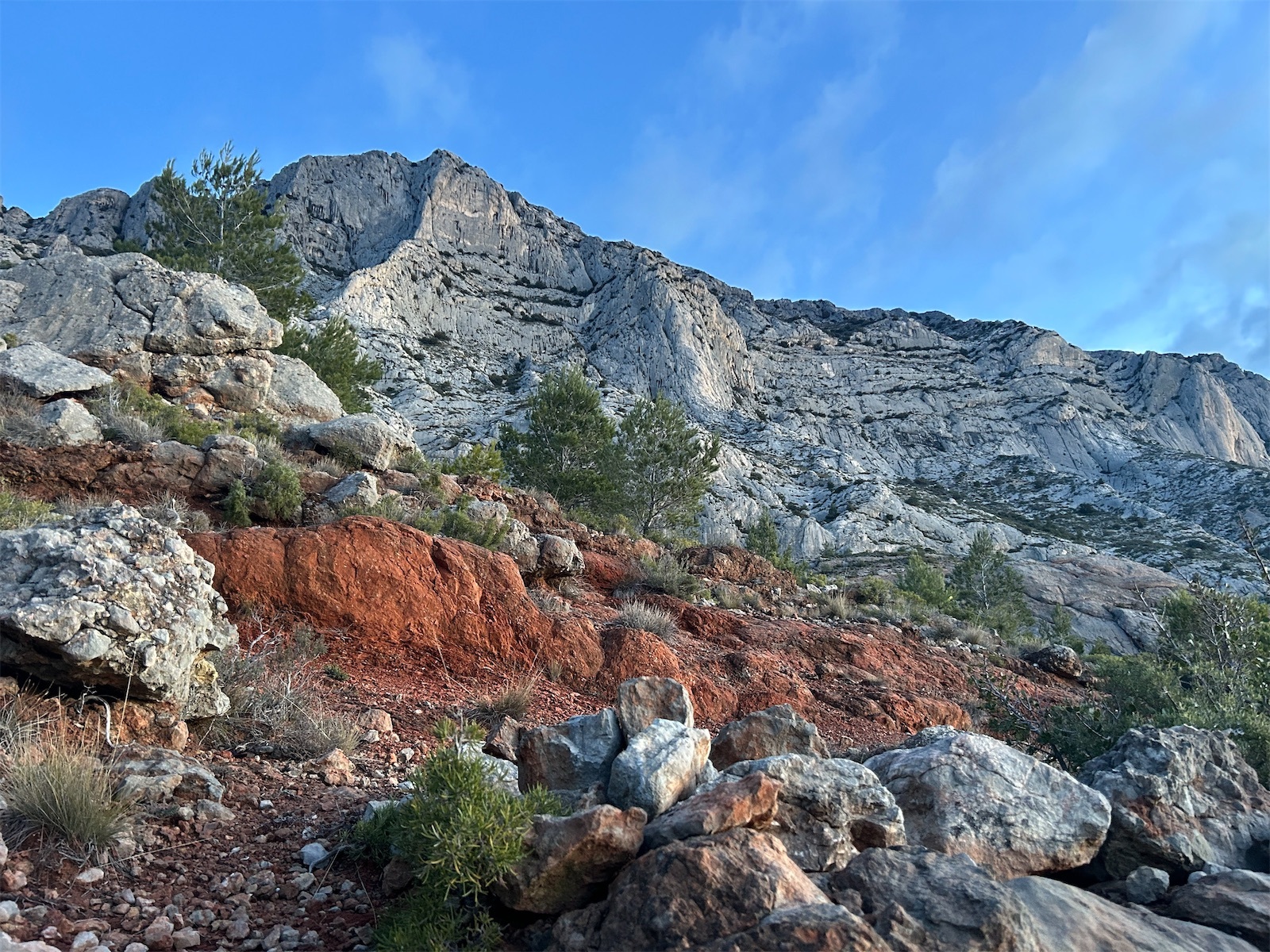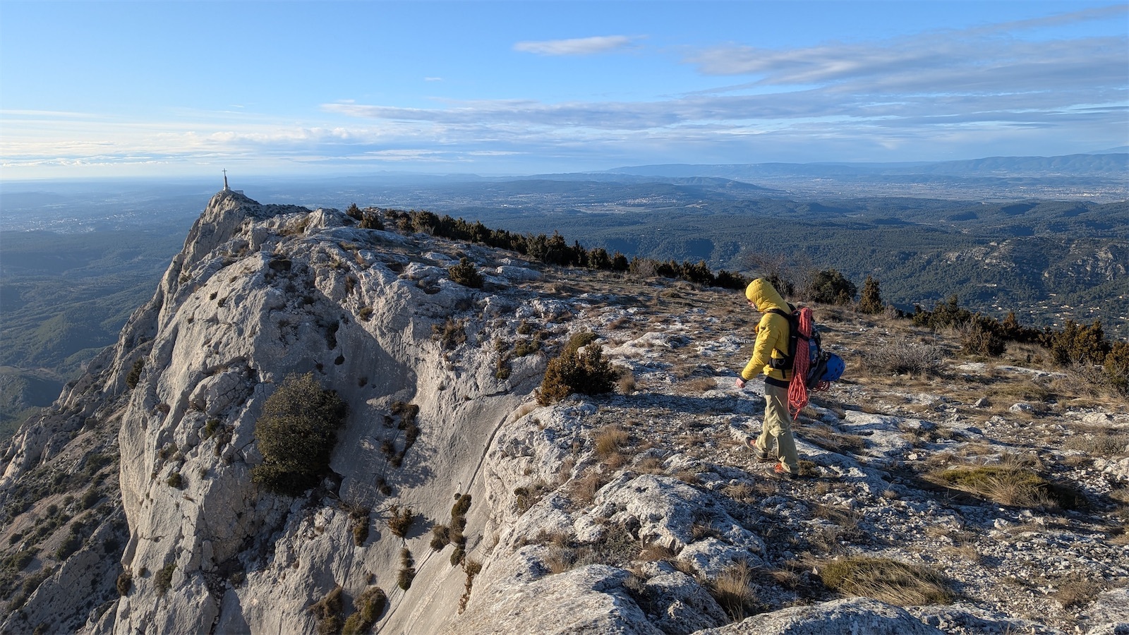 Le grand Parcours est une voie d’environ 14 longueurs qui grimpe l’ensemble de la montagne Sainte Victoire jusqu’à la crête sommitale au niveau de la paroi du signal. C’est un itinéraire d’ampleur en grande partie terrain d’aventure avec cotation max en 5c+/6a. Nous ne sommes pas certains d’avoir le temps d’arriver en haut, surtout avec 4 cordées qui se suivent ! Il va falloir partir tôt et être efficaces. Le parcours se divise en 3 tronçons avec des échappatoires plus ou moins faciles entre.