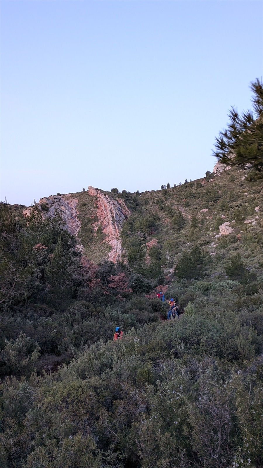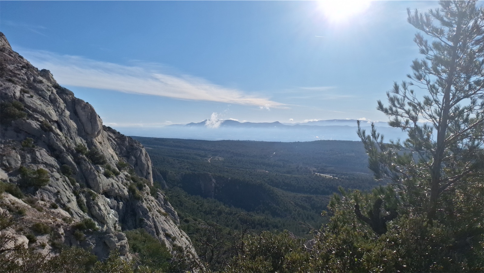 Après avoir profité de la vue sur la mer et les Alpes enneigées, on prend le chemin de retour qui nous ramène au parking en 1h, pas si longtemps après l’autre groupe qui gérait sa descente sur un chemin pas facile, nécessitant même un rappel.