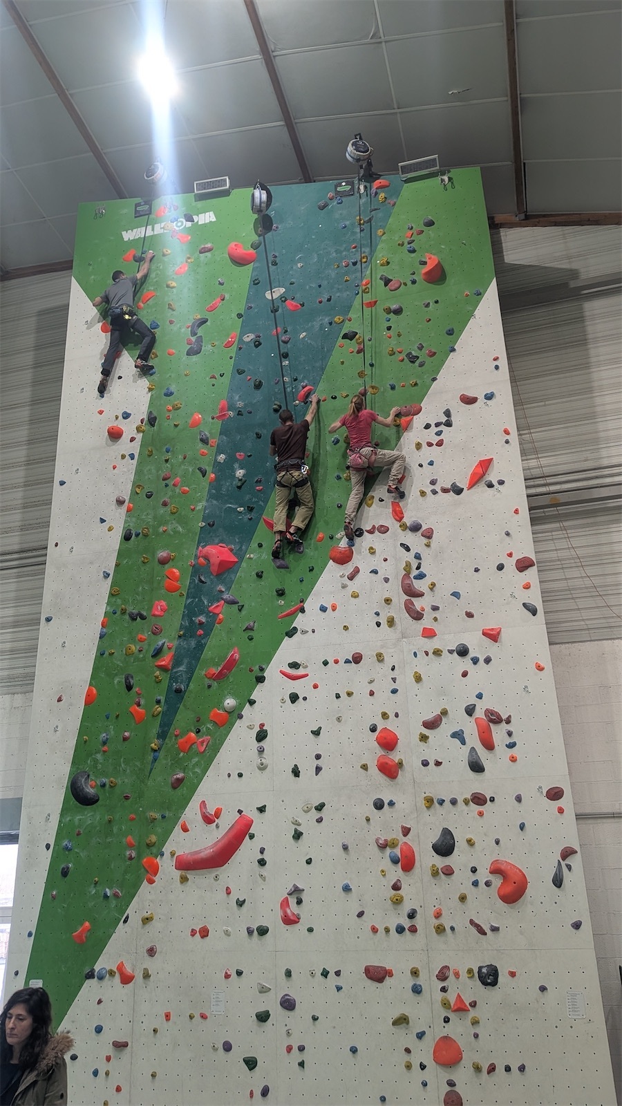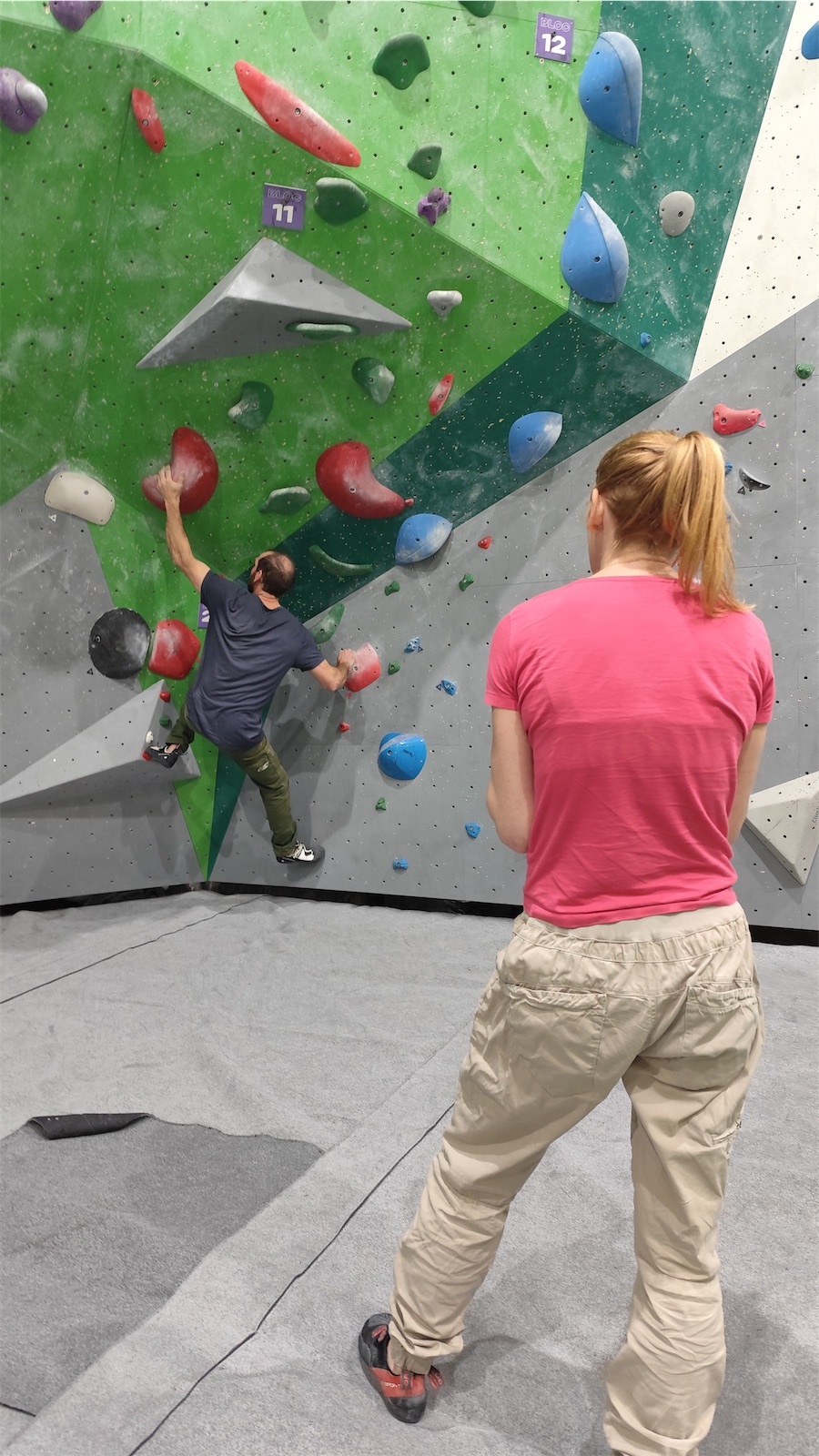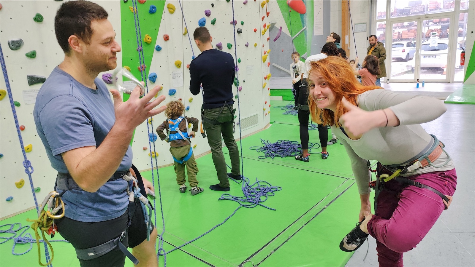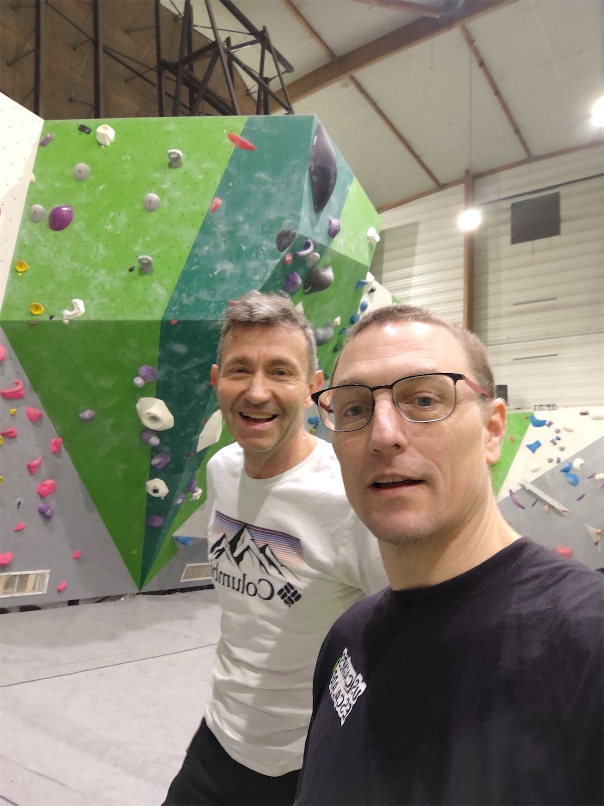 Les cordées sont déjà organisées, mais les prévisions météorologiques sont de plus en plus pessimistes et c’est sous une pluie battante que nous nous réveillons le lendemain. Plan de secours, direction la salle Climb Up Aubagne où nous passons une bonne partie de la journée à faire tantôt du bloc, tantôt des voies. Moins sexy qu’une journée en falaise mais largement plus fatiguant !