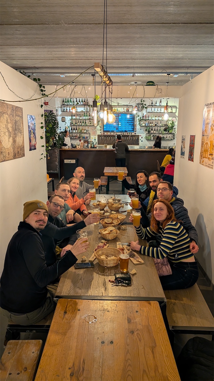 Le soir, ce sont Jean et Laura qui nous quittent. Ils n’ont pas leur dimanche et le plan a tourné court pour ces deux là. Xav et Alexis, qui avaient prévu de repartir également, décident de rester pour une nuit supplémentaire. On passe la soirée dans un bar à bières à manger saucissons et fromages et organiser le lendemain. Cette fois, pas de pluie au rendez-vous !
