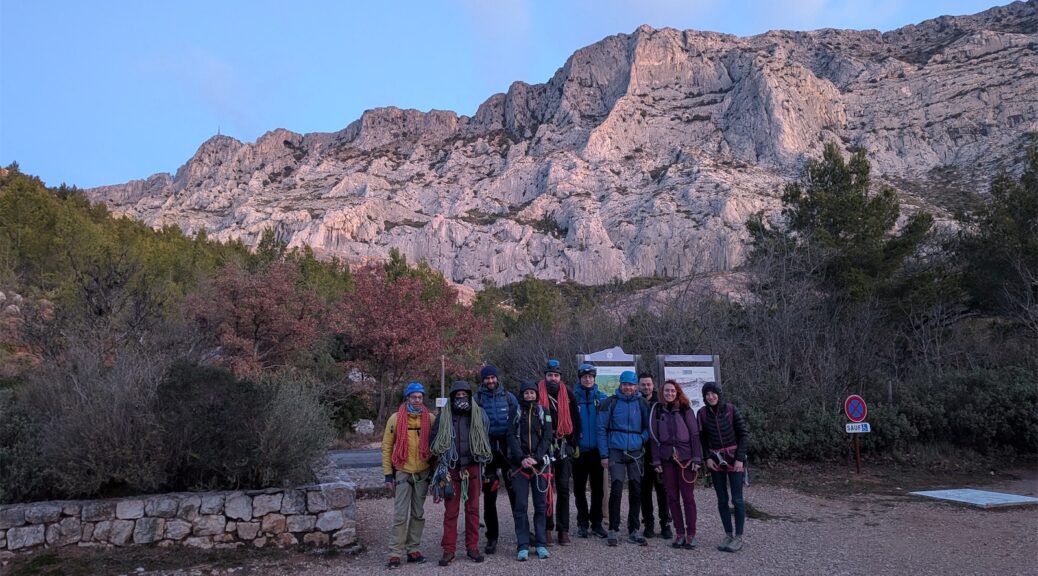 Ce weekend, c’était direction les Bouches du Rhône pour les membres de l’équipe restreinte du cycle grandes voies. Objectif principal : les falaises Soubeyrannes au cap Canaille entre Cassis et La Ciotat. Objectif secondaire, tant qu’à aller jusqu’à là bas, autant y rester le weekend entier et tenter l’ascension du Grand Parcours à la Sainte Victoire.