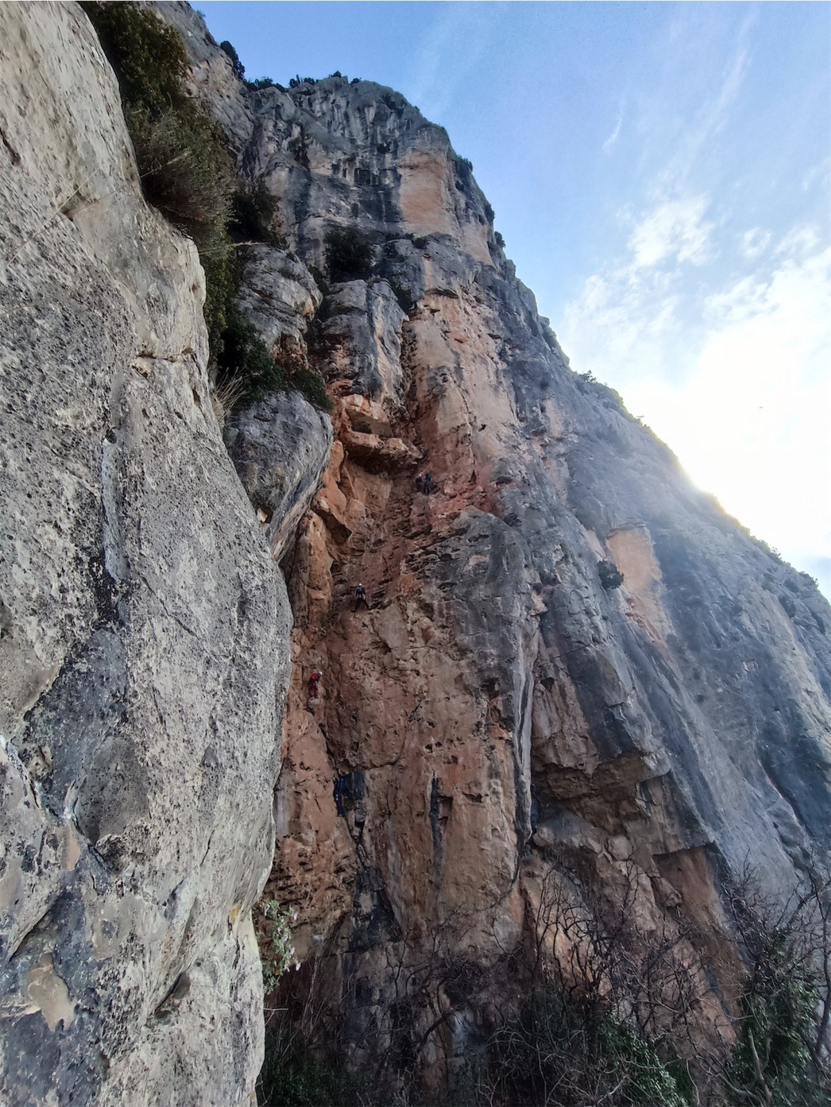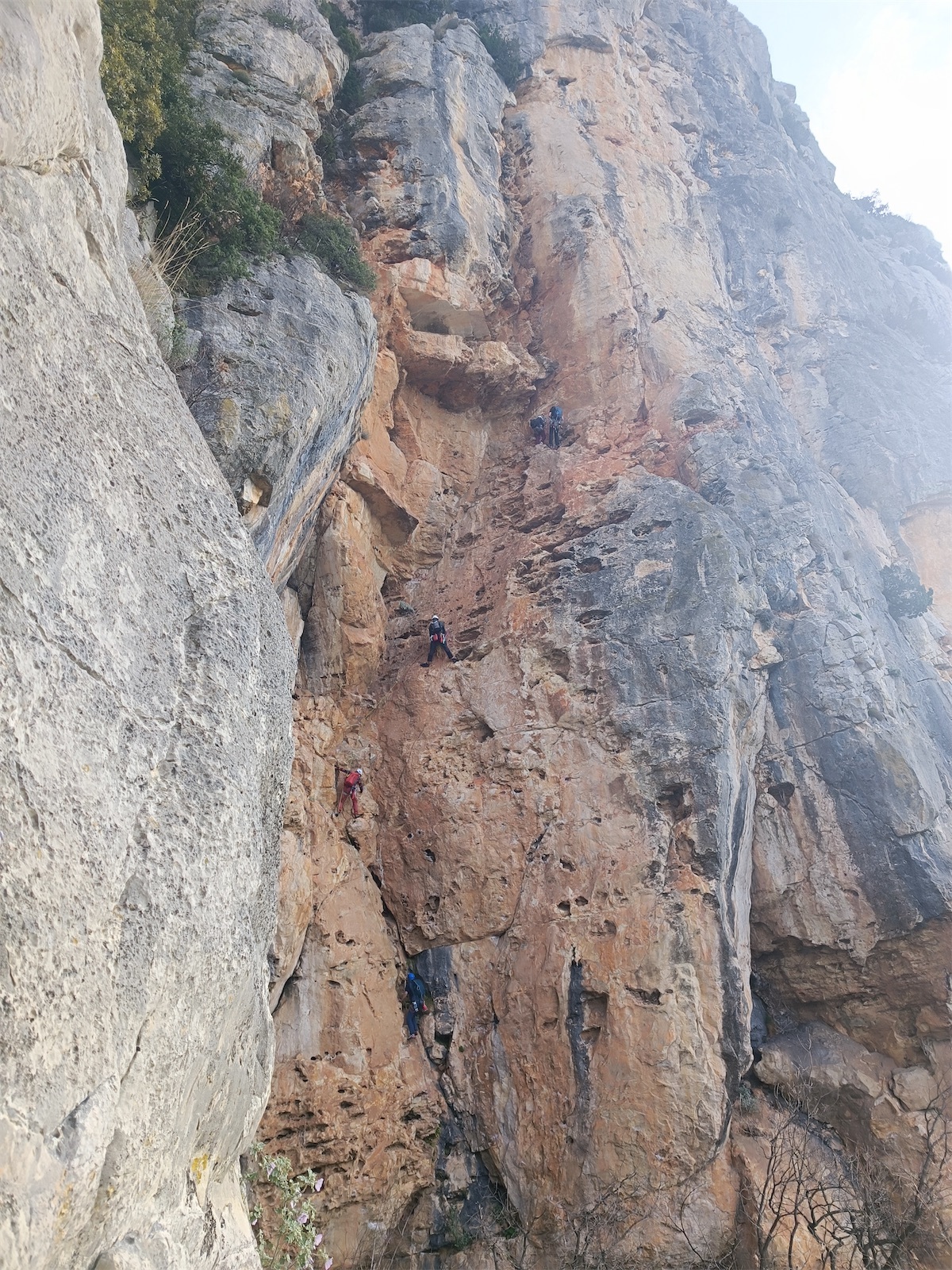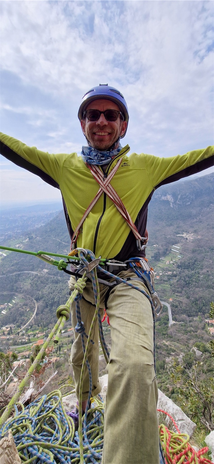C’est donc sur la grande face de notre mythique et historique baou de St Jeannet que les participants du cycle grandes voies sont allés exprimer leurs aptitudes en grimpe et recherche d’itinéraire. Le baou, c’est souvent du rocher médiocre et des points plutôt loin. Savoir garder son sang froid y est une qualité nécessaire.