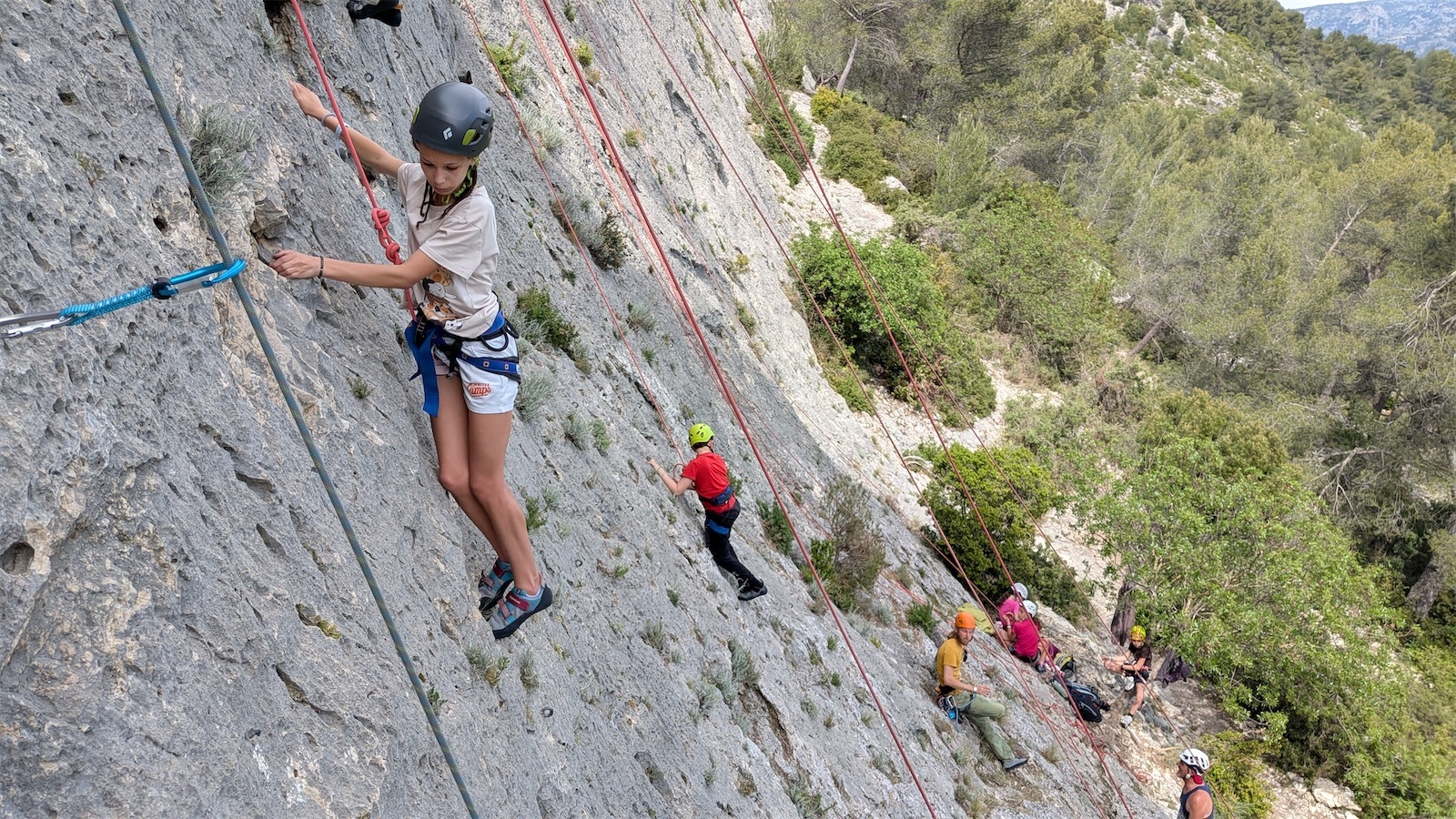 Les jeunes ont pris la confiance au fil du séjour et Maya et Esteban attaquent direct avec des 6a+ en tête ! Esteban est carrément en feu et enchaîne même son premier 6c.