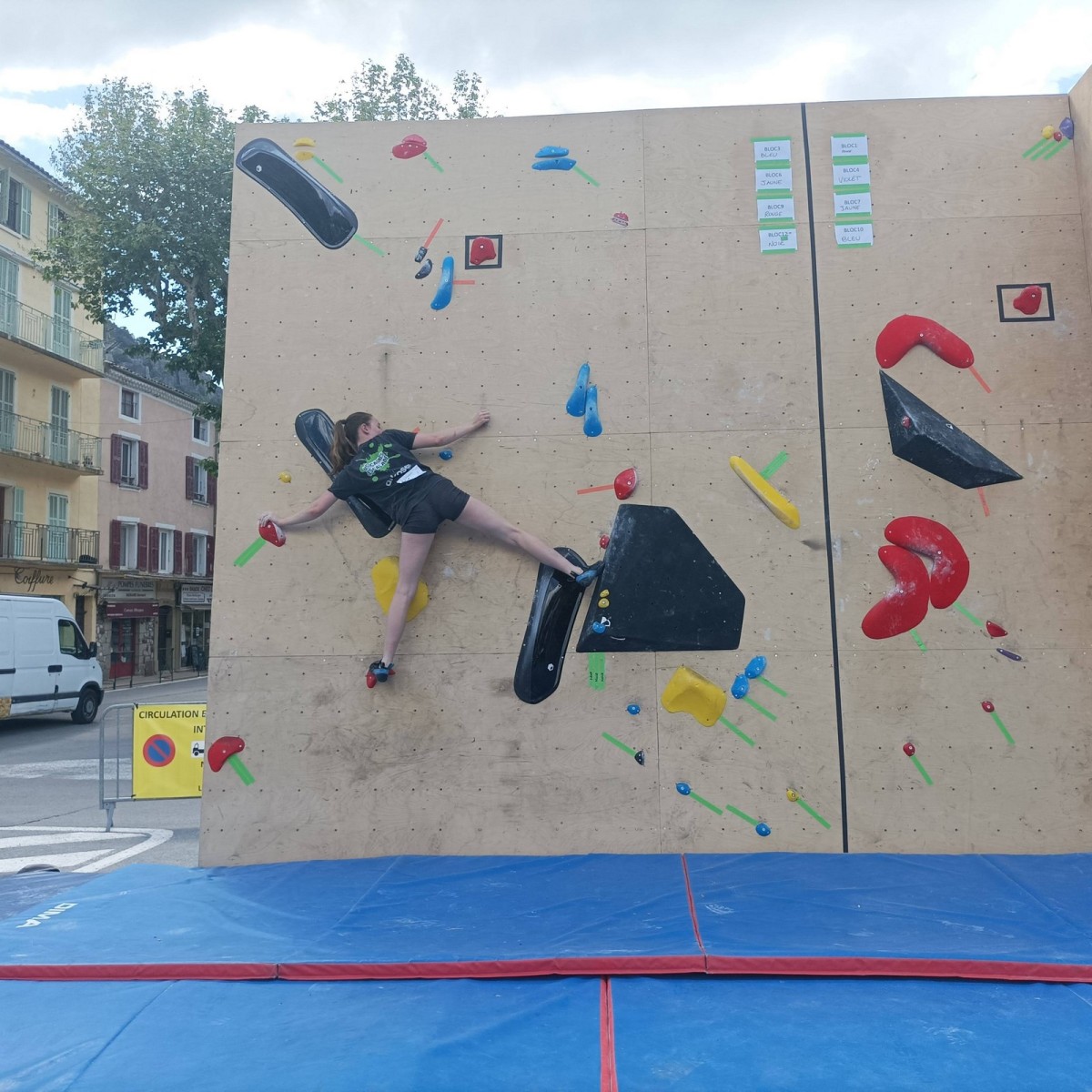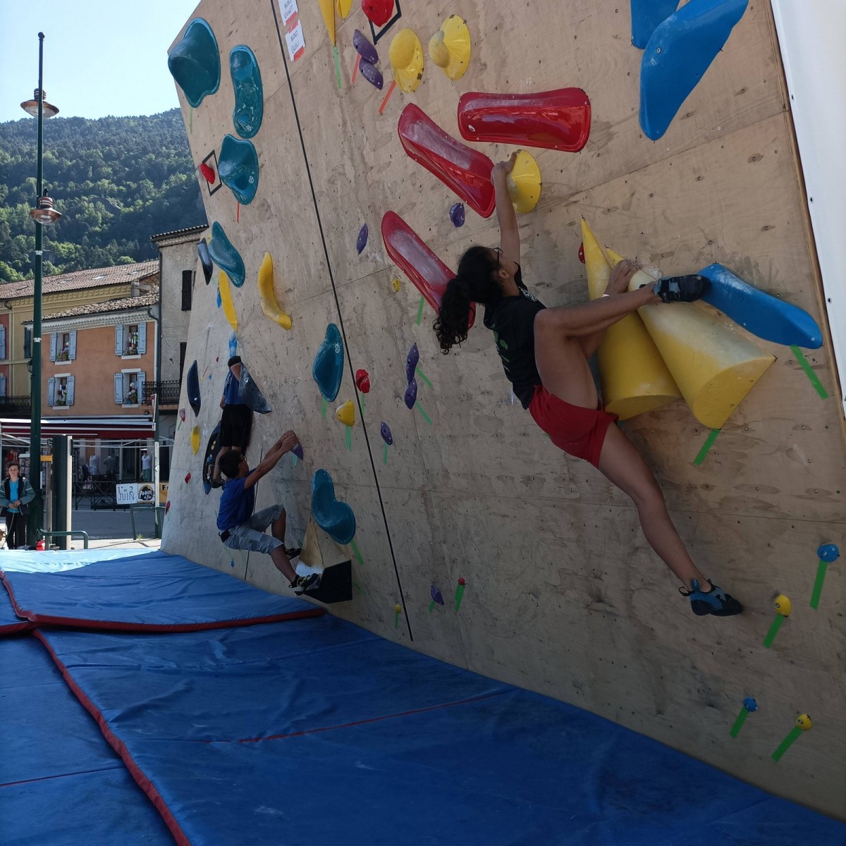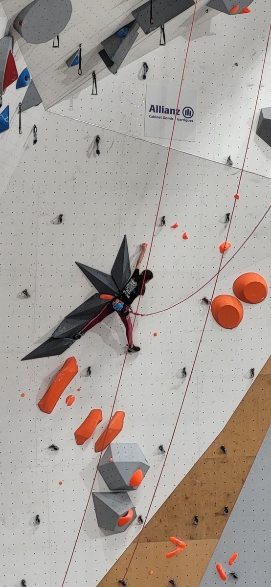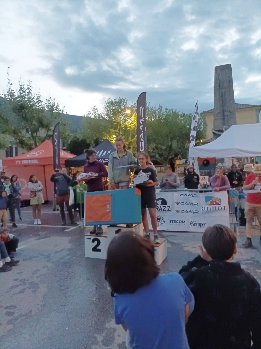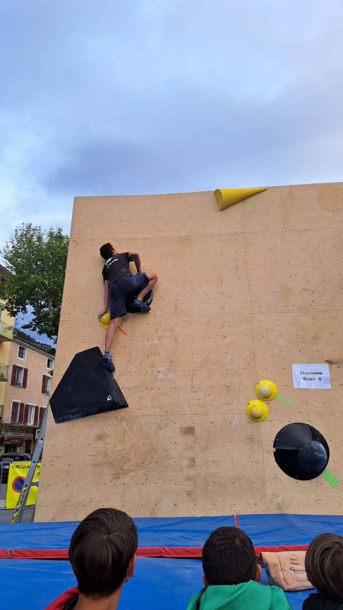 En expert, seuls les blocs les plus durs comptabilisaient des points. Léane parvient à sortir quelques 6c et 7a, ce qui lui offre un place pour la finale le soir, sur fronton articifiel sur la place du village. Mathis est également de la partie !