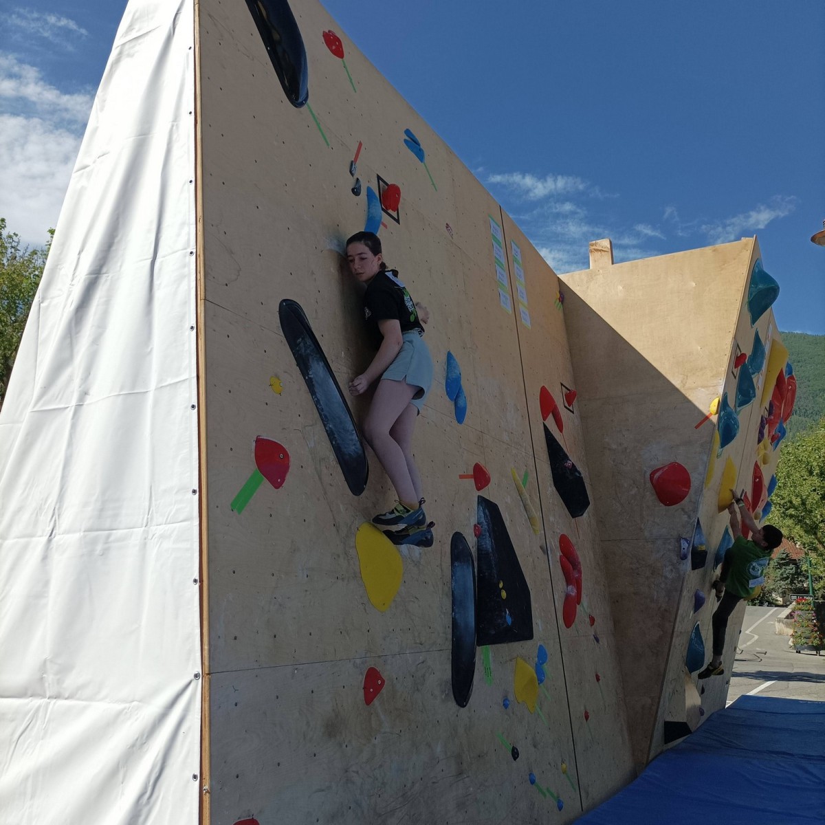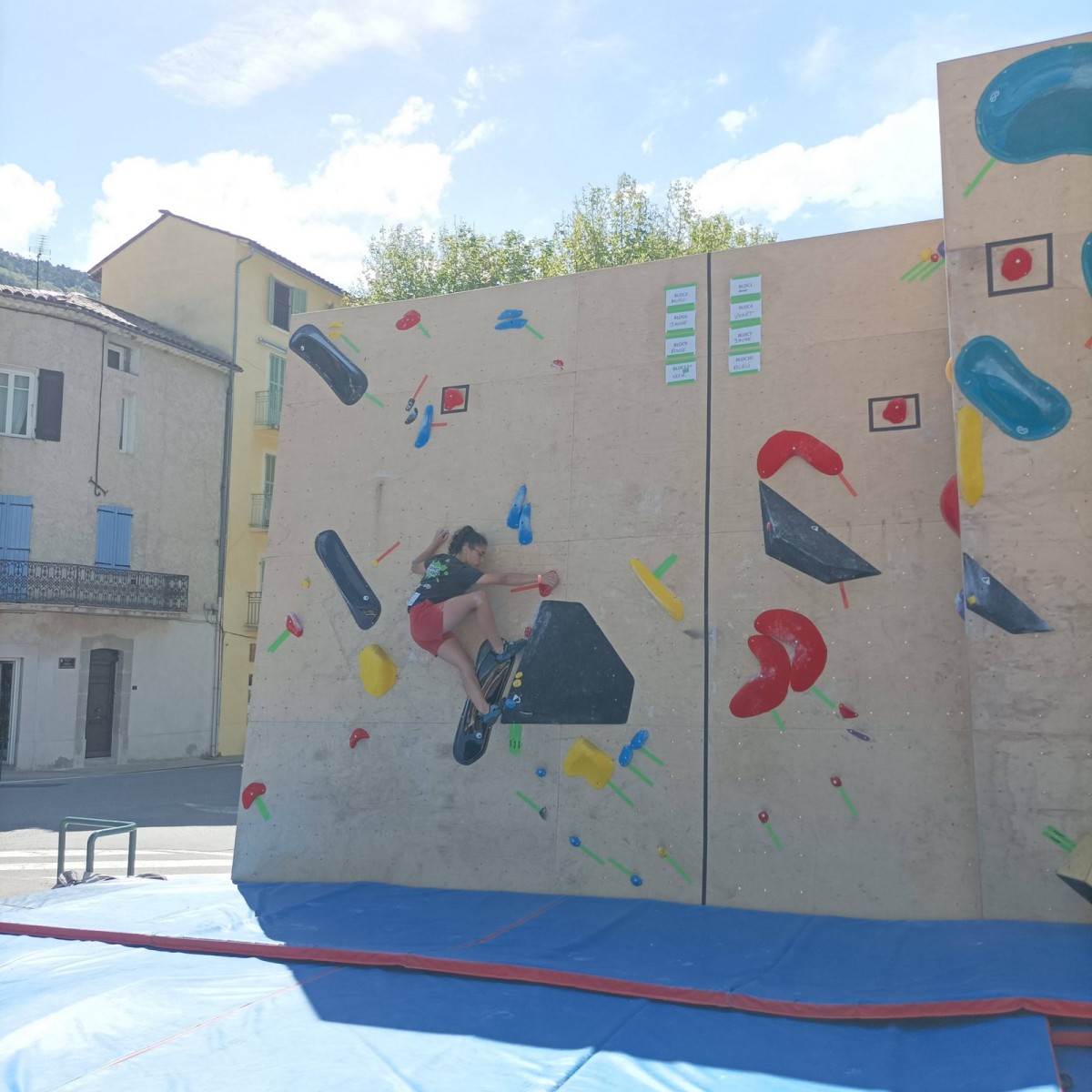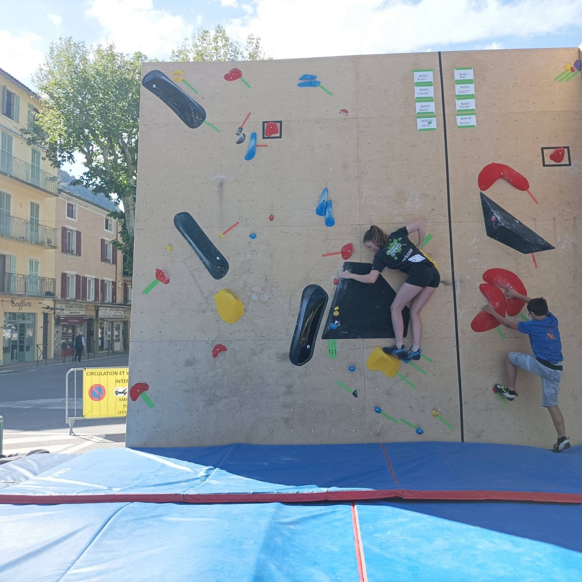 En expert, seuls les blocs les plus durs comptabilisaient des points. Léane parvient à sortir quelques 6c et 7a, ce qui lui offre un place pour la finale le soir, sur fronton articifiel sur la place du village. Mathis est également de la partie !
