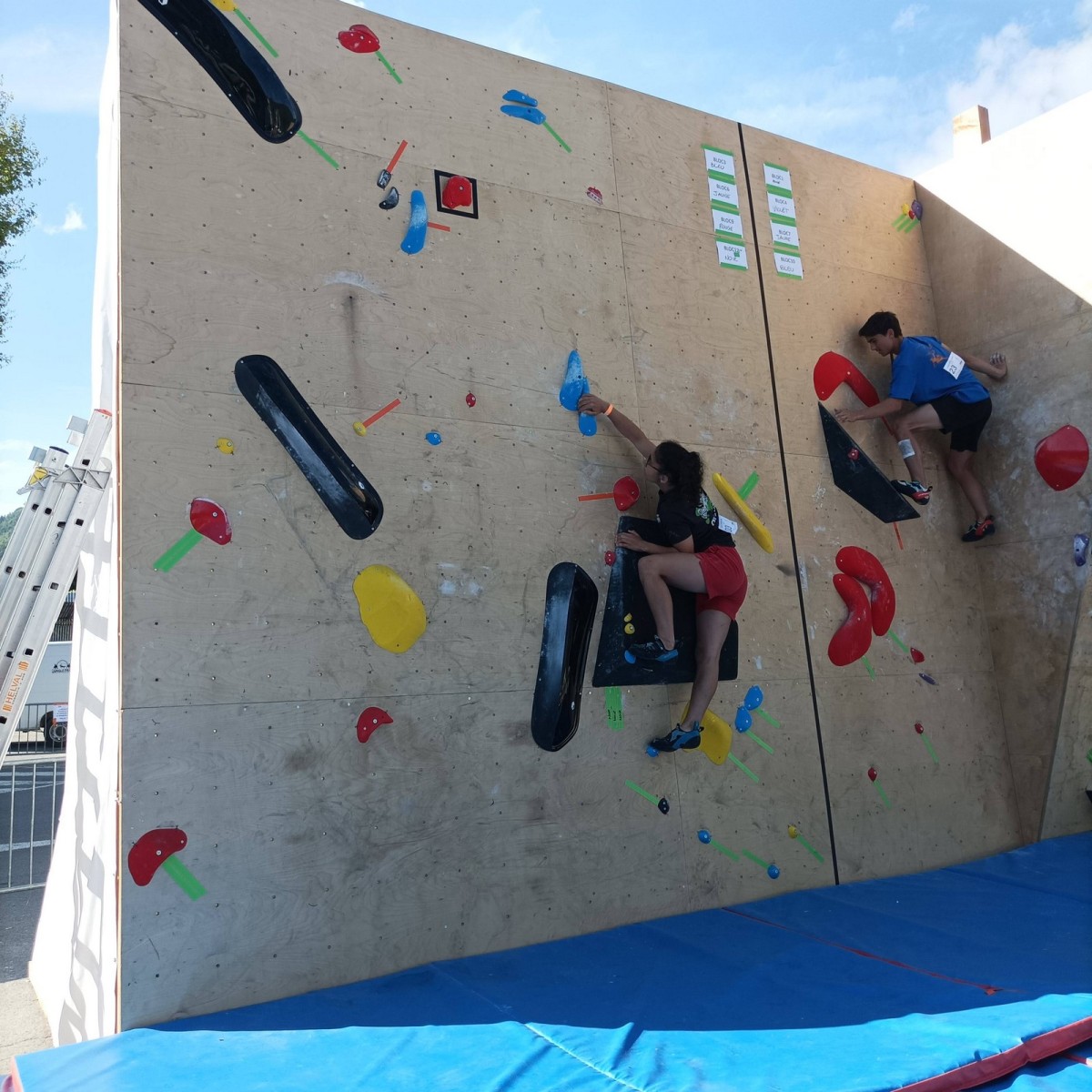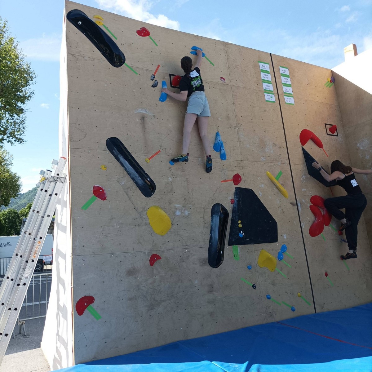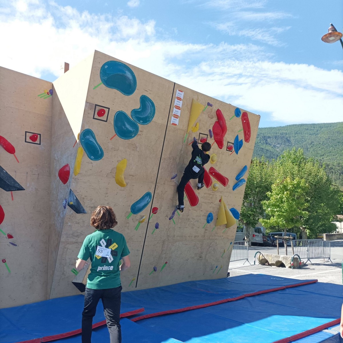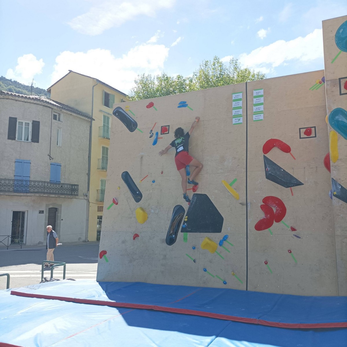 En expert, seuls les blocs les plus durs comptabilisaient des points. Léane parvient à sortir quelques 6c et 7a, ce qui lui offre un place pour la finale le soir, sur fronton articifiel sur la place du village. Mathis est également de la partie !