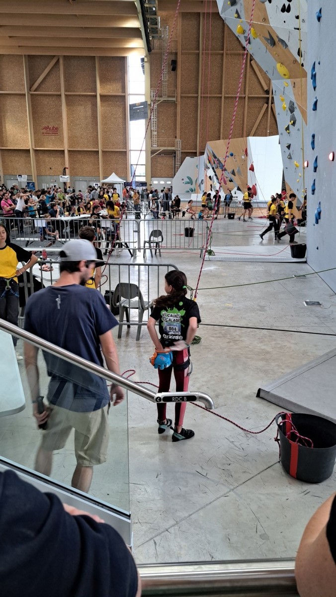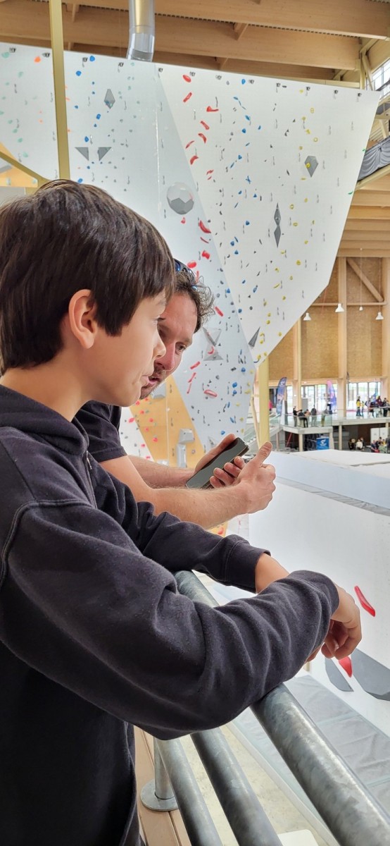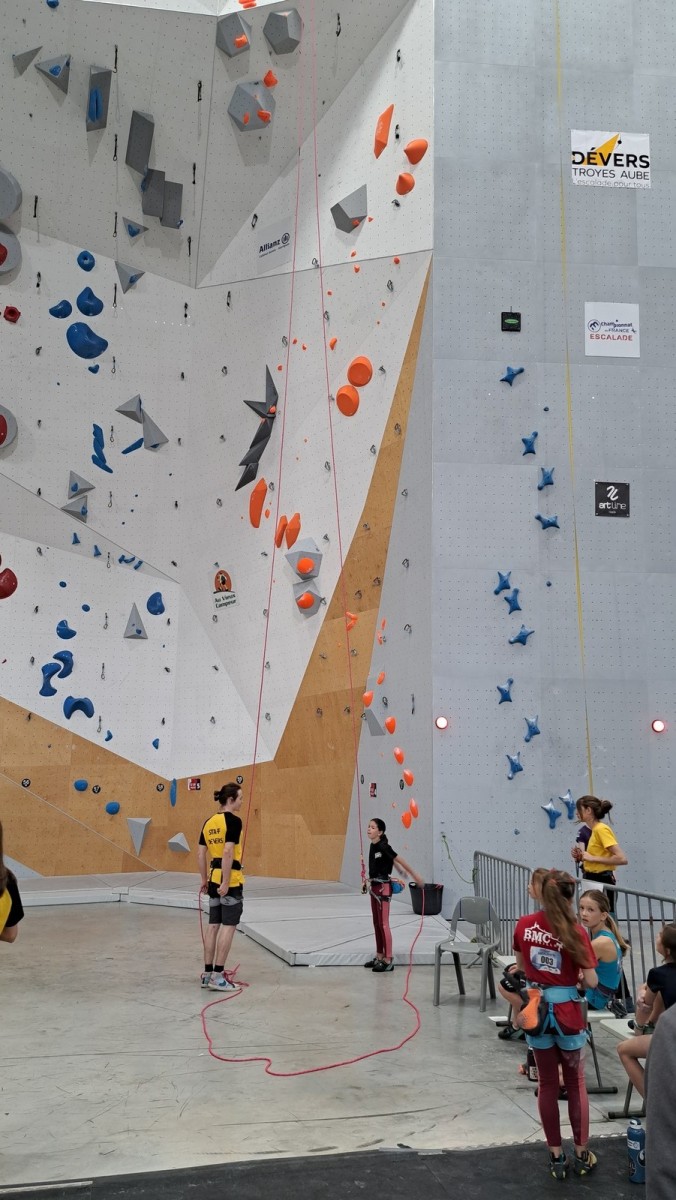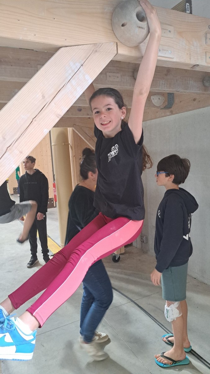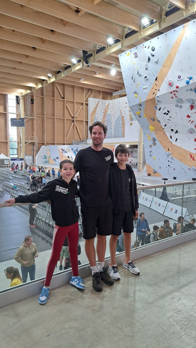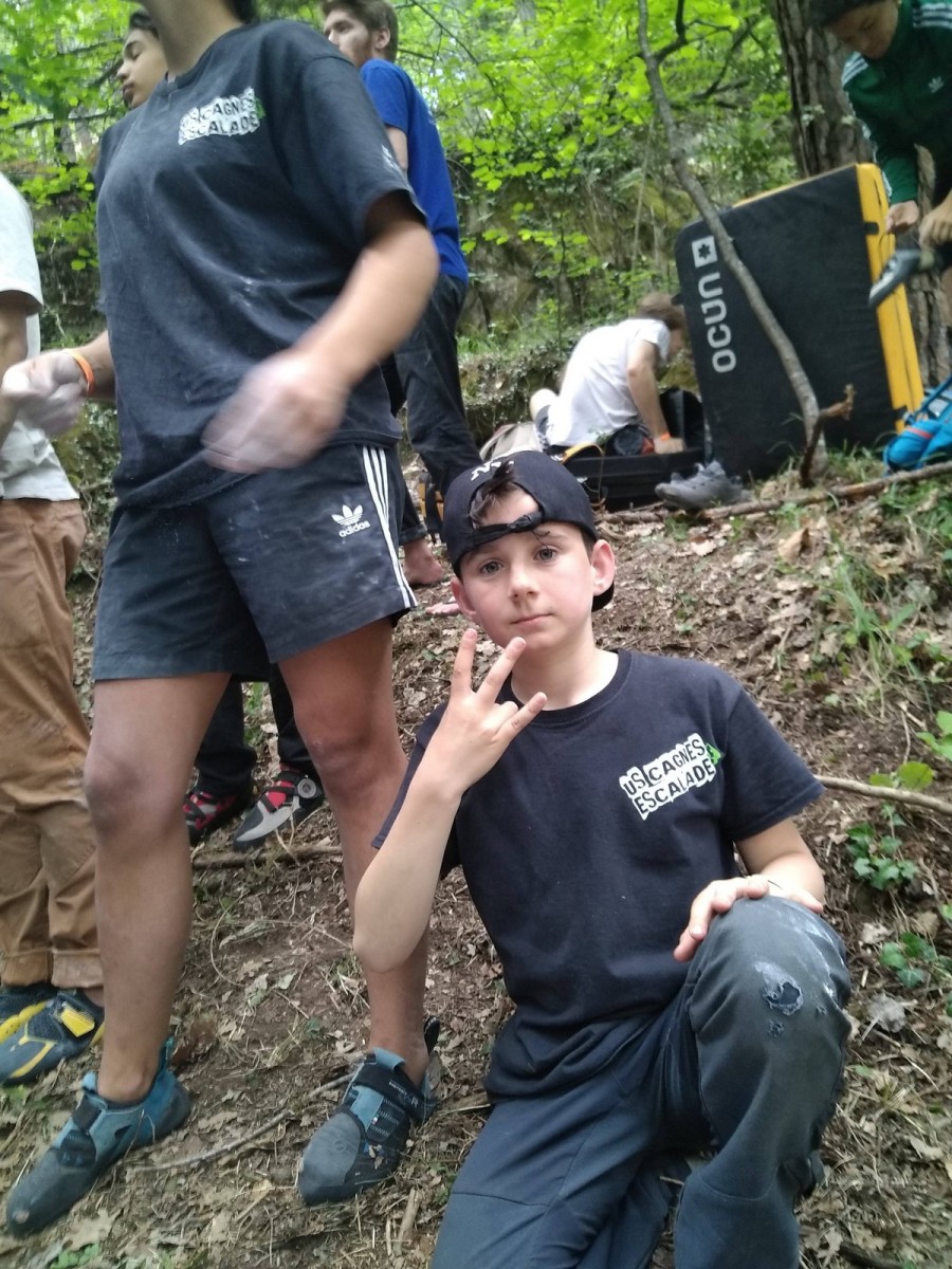 Chez les grands, Mathéo est quelque part dans le secteur avec des amis à lui. Je le croiserai de temps en temps au fil de la journée avec Sandro. Pareil pour Mathis. Emma et Léane grimpent ensemble de leur côté, et je croise également Lya avec ses parents. Boris, nous rejoint peu après, je crois que nous sommes au complet !