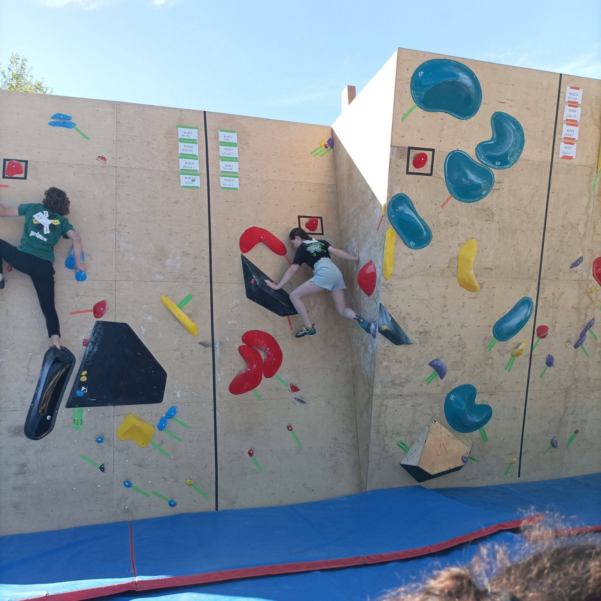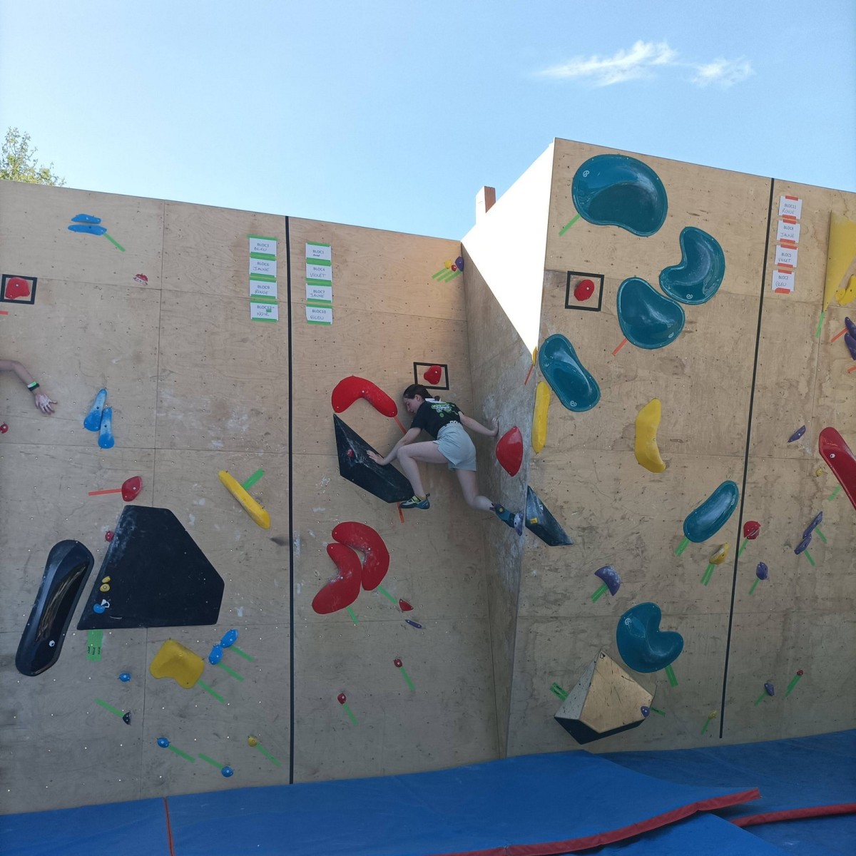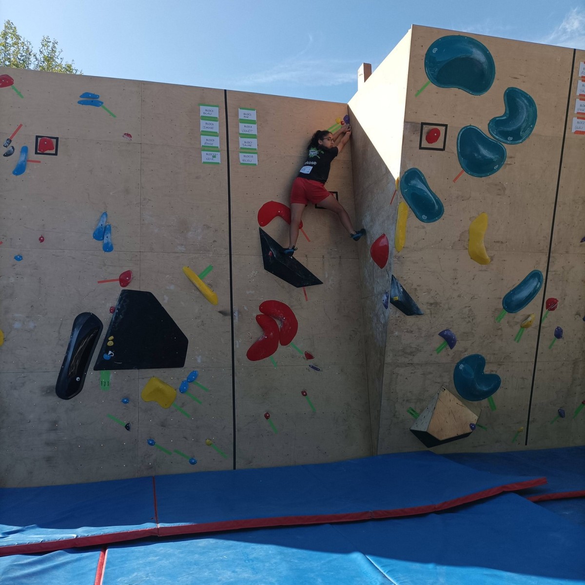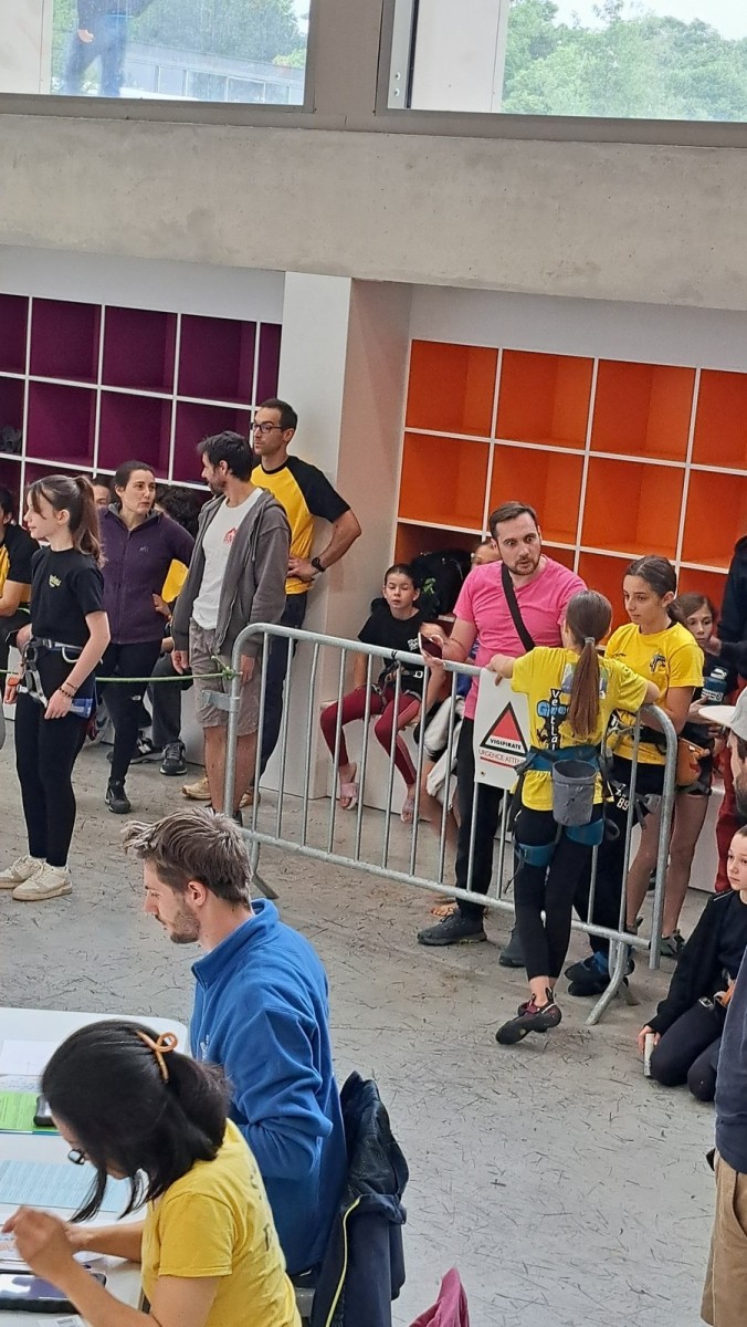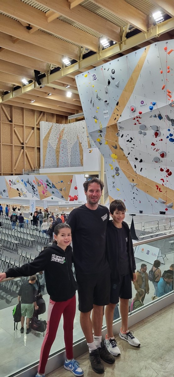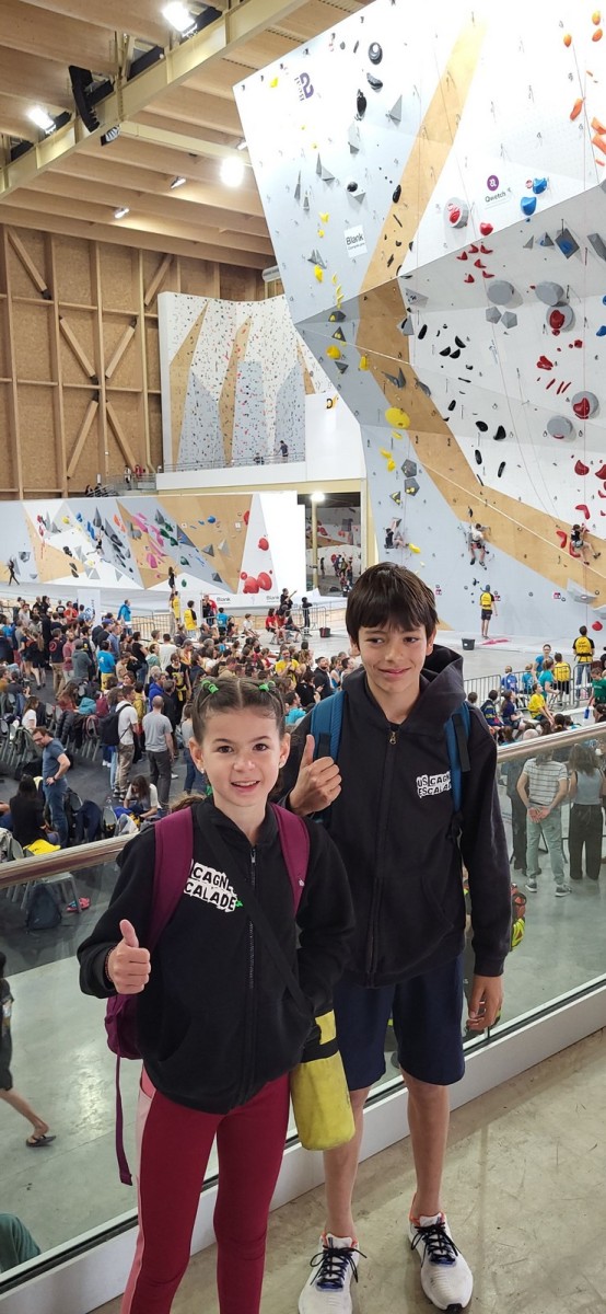 Chez les grands, Mathéo est quelque part dans le secteur avec des amis à lui. Je le croiserai de temps en temps au fil de la journée avec Sandro. Pareil pour Mathis. Emma et Léane grimpent ensemble de leur côté, et je croise également Lya avec ses parents. Boris, nous rejoint peu après, je crois que nous sommes au complet !
