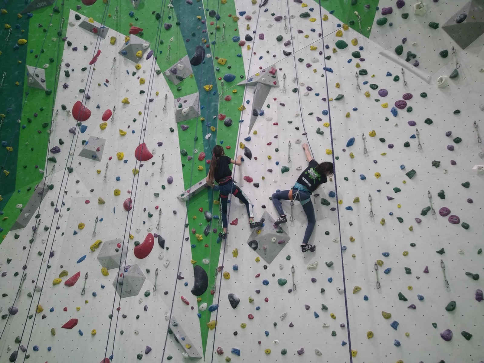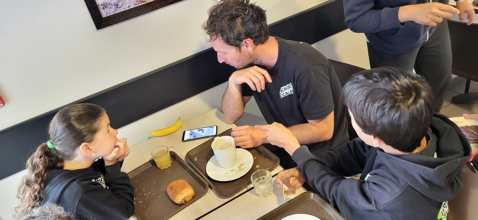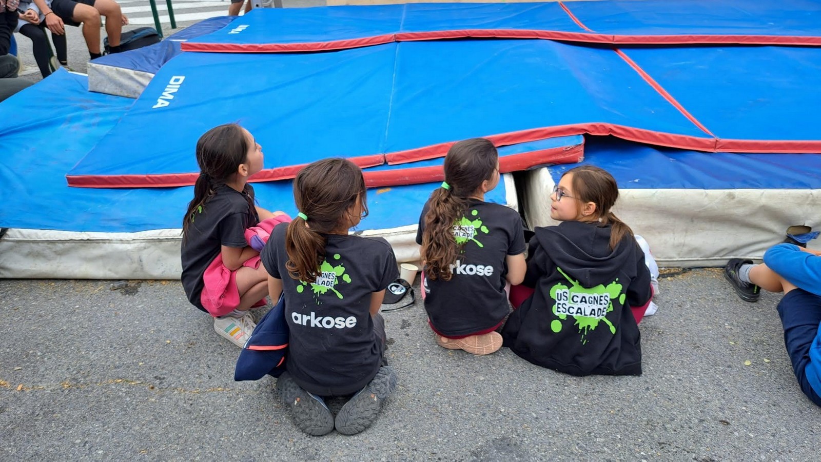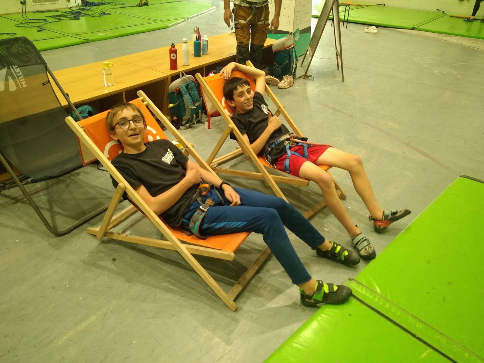 Chez les grands, Mathéo est quelque part dans le secteur avec des amis à lui. Je le croiserai de temps en temps au fil de la journée avec Sandro. Pareil pour Mathis. Emma et Léane grimpent ensemble de leur côté, et je croise également Lya avec ses parents. Boris, nous rejoint peu après, je crois que nous sommes au complet !