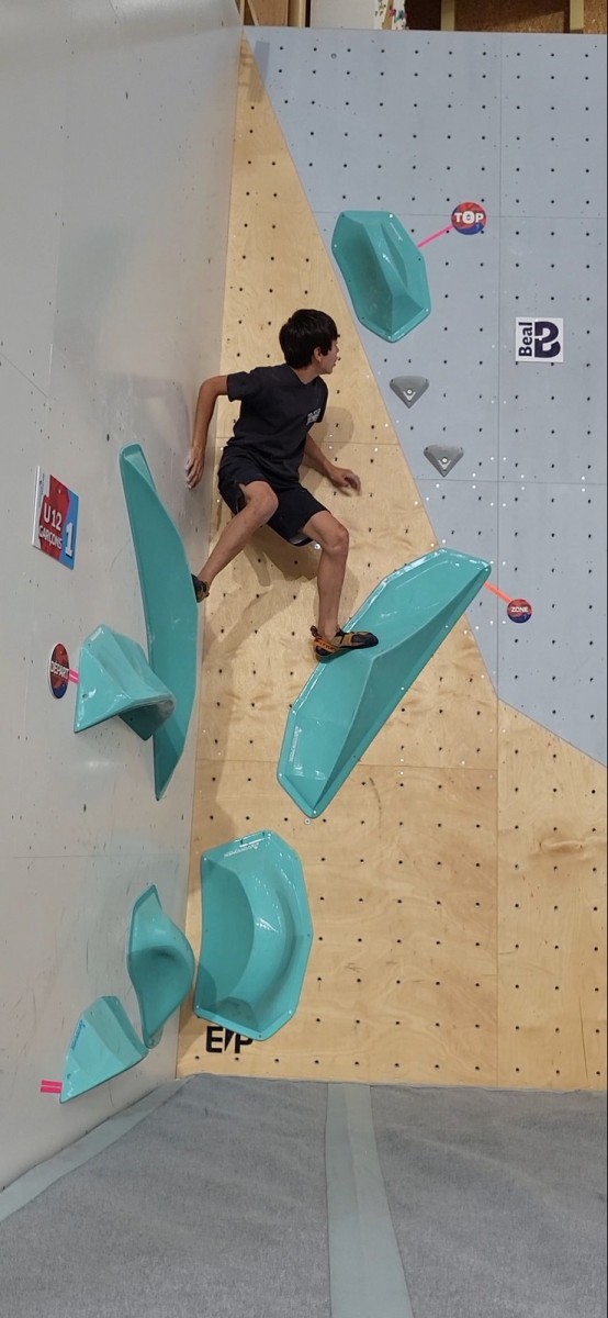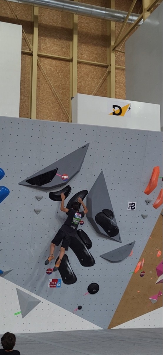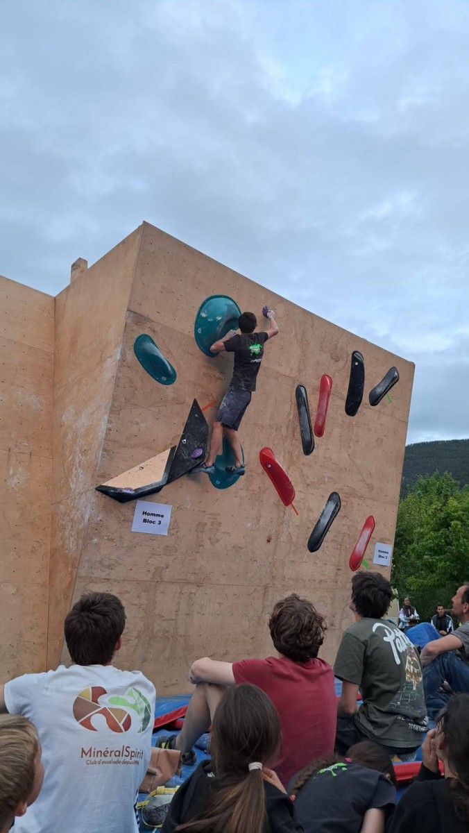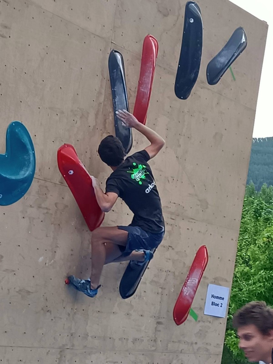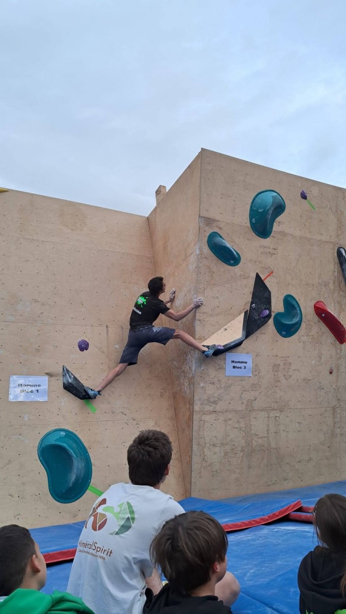 Les blocs pour les hommes sont plus durs mais Mathis s’en sort bien. Il ne joue pas la gagne car devant lui, il y a des pointures. Il lâche deux essais dans le bloc 1 en dalle, est trop épuisé pour ramener sur la prise de fin du bloc 2, et sort le bloc 3 avec panache pour finalement prendre une belle 4ème place ! Bravo Mathis !