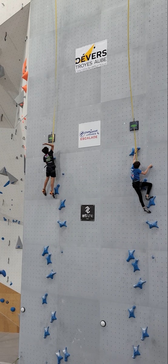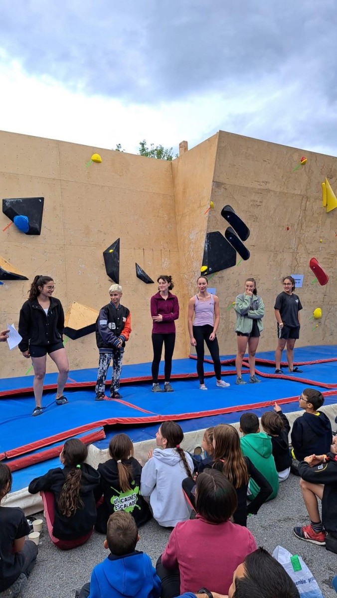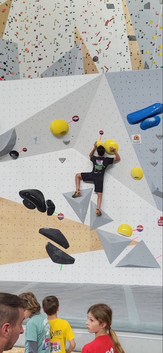 En dehors de la catégorie experts, un bloc réussi valait un point, quelle que soit la difficulté. Il fallait donc en faire le plus possible. A ce jeu, c’est l’inarrêtable Boris qui gagne chez les moins de 10 ans ! Mélia fait de même en moins de 12 ans, alors que Lya monte sur la troisième marche du podium. Lilas remporte la compétition chez les moins de 14 ans. De belles récompenses attendent nos grimpeuses et grimpeurs, notamment la rencontre avec Salomé Romain, marraine de l’événement !