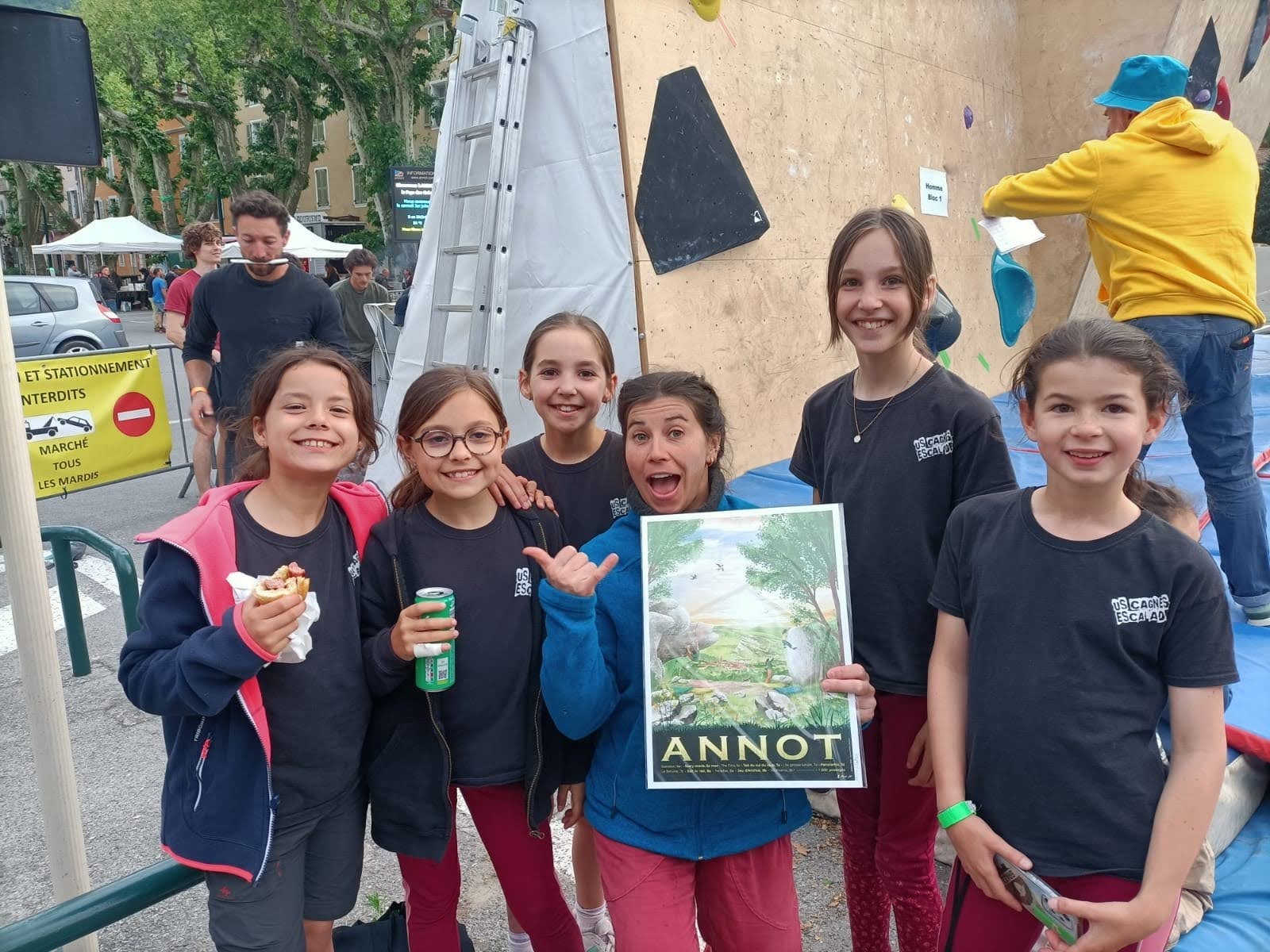 La matinée se passe sous les assauts des grimpeurs. Les enfants sont impressionnants d’opiniâtreté ! Ils font la queue pour vaincre tel ou tel passage, parfois avec réussite, parfois sans. C’est dur Annot, et les cotations ont été un peu relevées depuis la dernière session. Mais qu’importe, personne n’est vraiment là pour la compétition mais pour le plaisir de grimper tous ensemble et de partager un grand moment d’escalade.