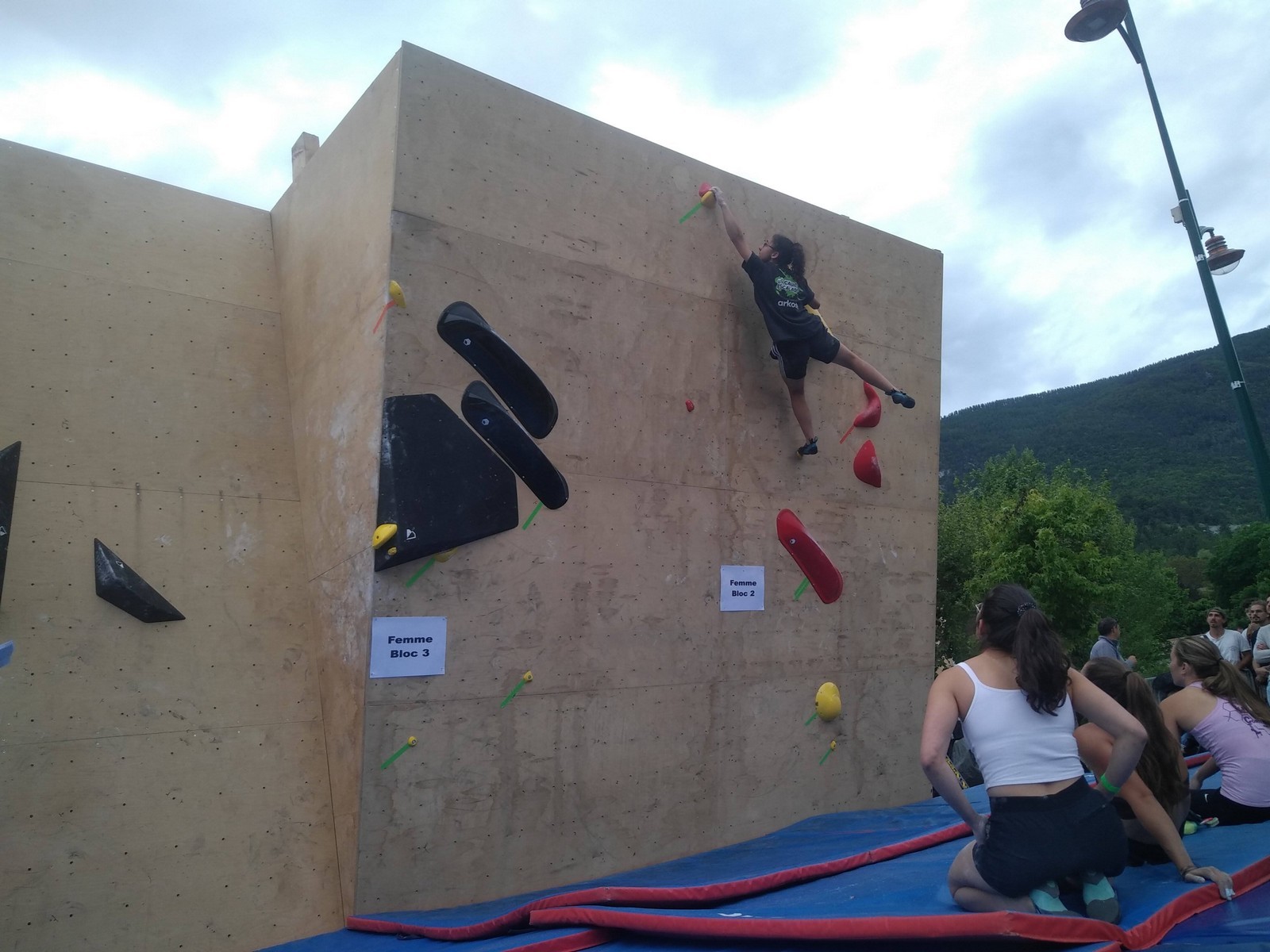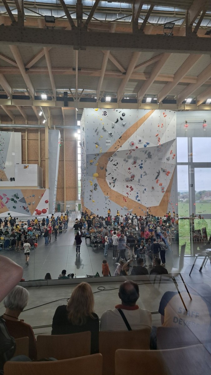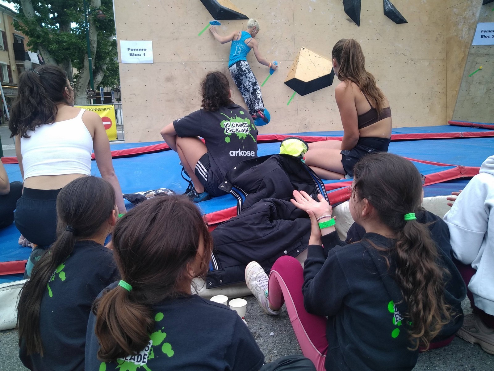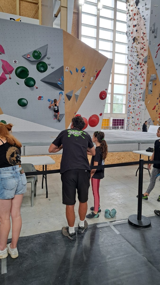 Les finalistes ont 3 blocs à faire. Léane est la plus jeune, mais elle a un fan club incroyable ! Elle sort son premier bloc en 3 essais, son second en deux, et flashe le troisième bloc, étant la seule à comprendre qu’il fallait se retourner face au public. Un grand moment. Elle termine 3ème de la finale, à rien des deux premières.