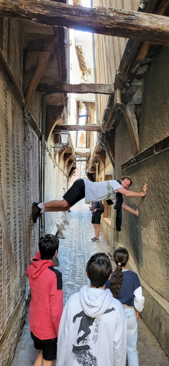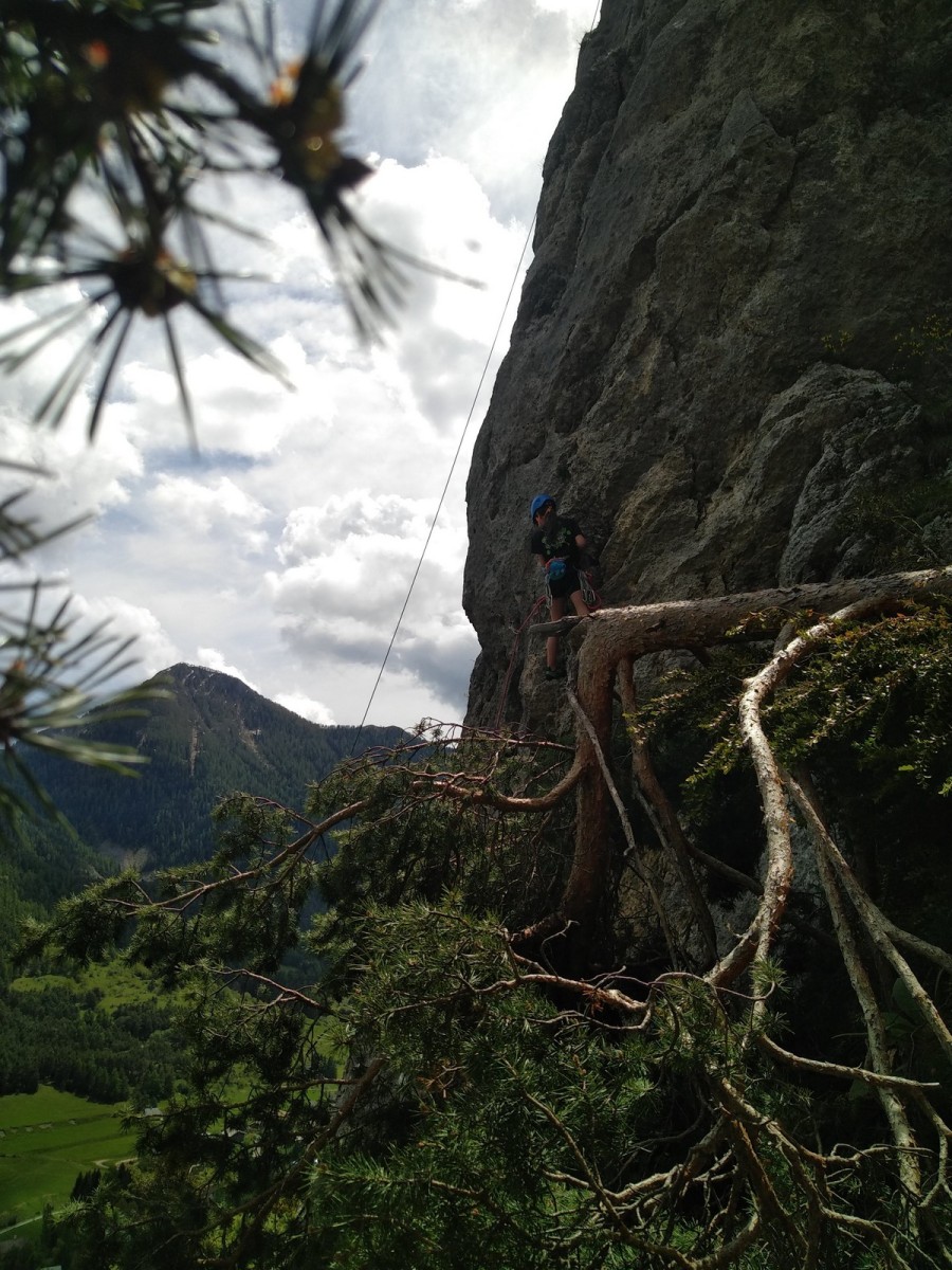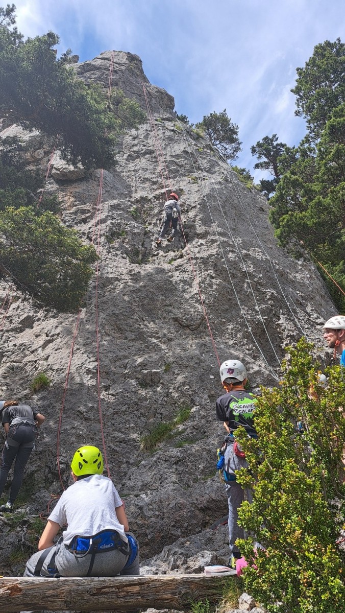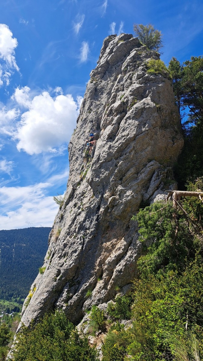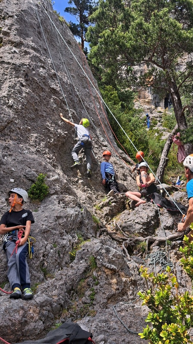 Apolline, la plus jeune du groupe, avale dans la journée les 9 voies du donjon, de même qu’Anaïs avec plus ou moins de style. Lilas prend doucement confiance dans l’escalade en tête, de même que sa soeur Rose. Aleksander, fidèle à lui-même, n’usera pas beaucoup ses chaussons sur le caillou mais ira parcourir les chemins alentours avec Adèle, un peu plus motivée par l’escalade tout de même. C’est compliqué également pour Lorenzo et Rayan qui préfèrent s’amuser au sol. Il faudra un peu de temps pour réussir à motiver Abd’Allah mais une fois lancé, il ne s’arrêtera plus !