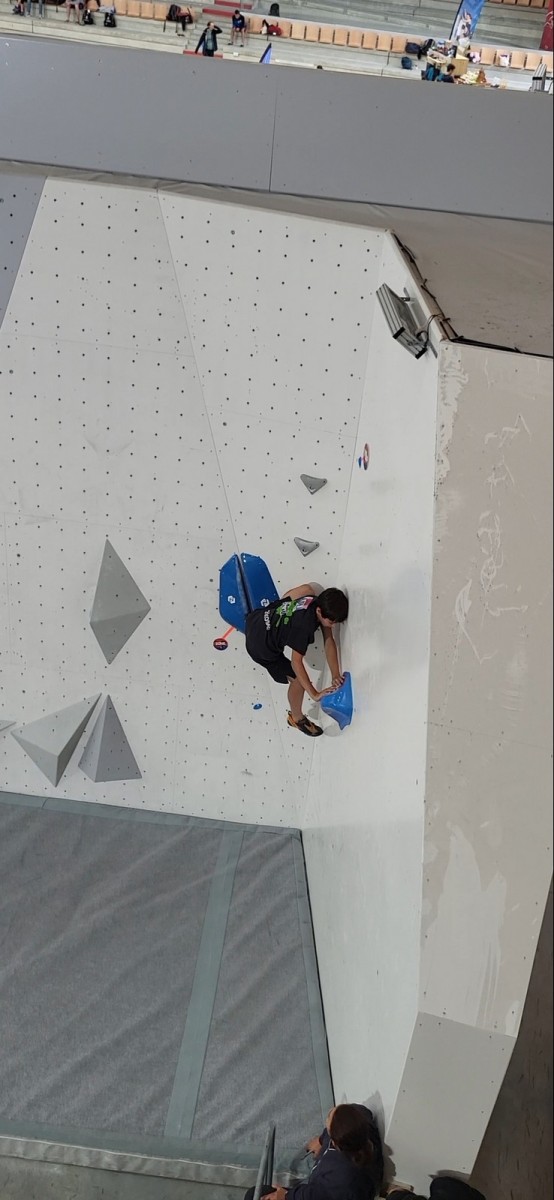 Il fait une belle performance dans le bloc 10 où peu de grimpeurs réussissent le jeté du début, sans réussir à valider le top. Mais il a la zone, c’est déjà bien. Les 11 et 12 semblent inaccessibles à tous et le temps étant très limité, la compétition s’arrête là !