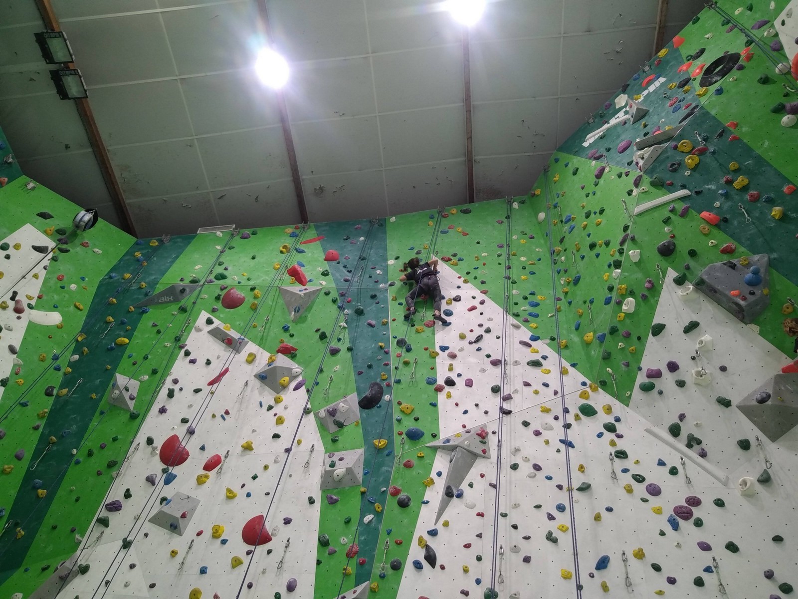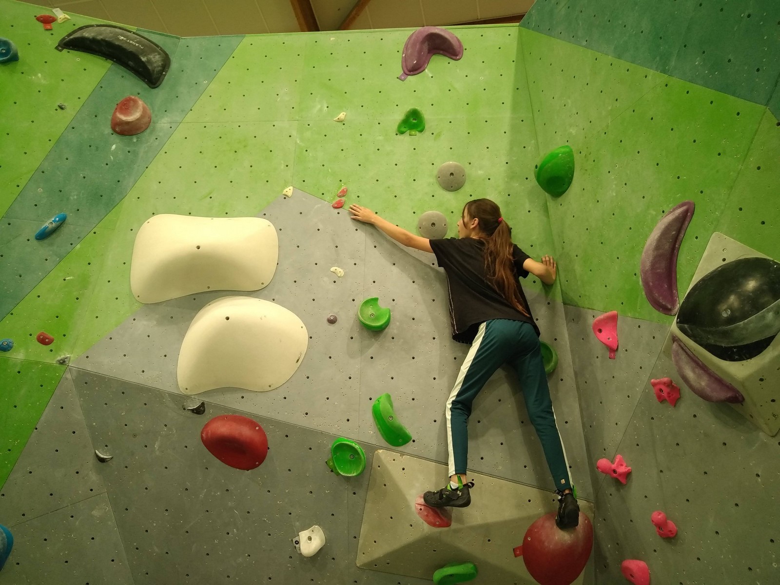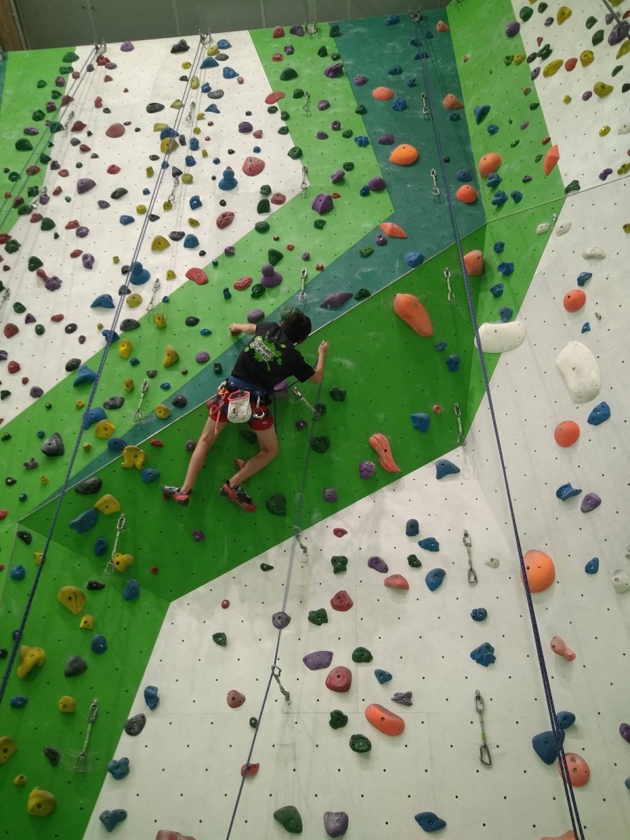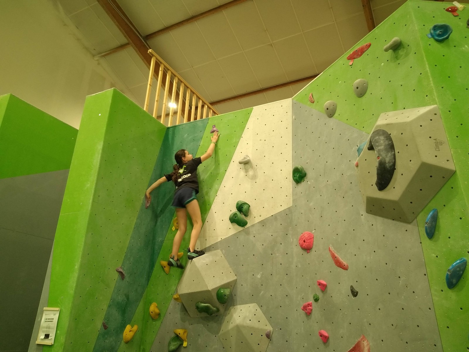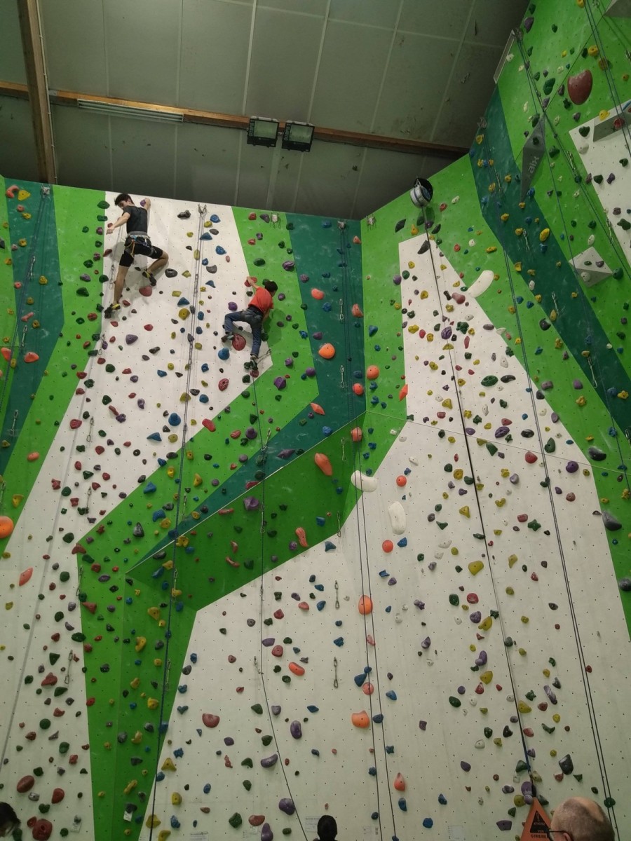 Les plus grands étant occupés ar un stage de l’équipe régionale, c’est surtout avec les petits que nous avons arpenté les blocs et les voies de cette structure. Au programme, du à vue en masse, à essayer des blocs dans un style différent de ce qui se fait chez nous (et moins morpho également) et des voies de tous niveaux.