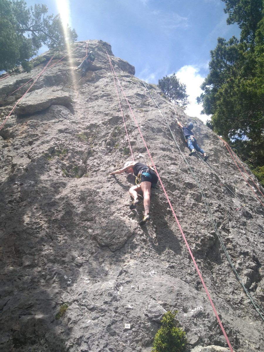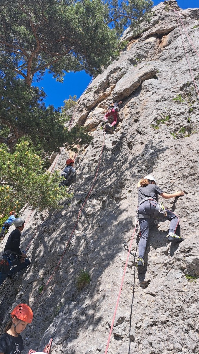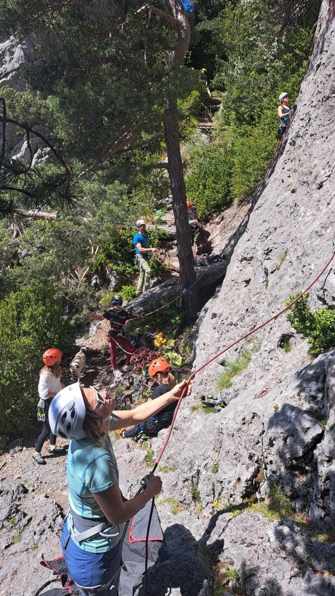 Du côté du col, Phil a géré le groupe. Michèle et Jean grimpent en tête, et Saliha a grimpé sa première 5c en tête tandis que Roxane continue de se familiariser avec le caillou.