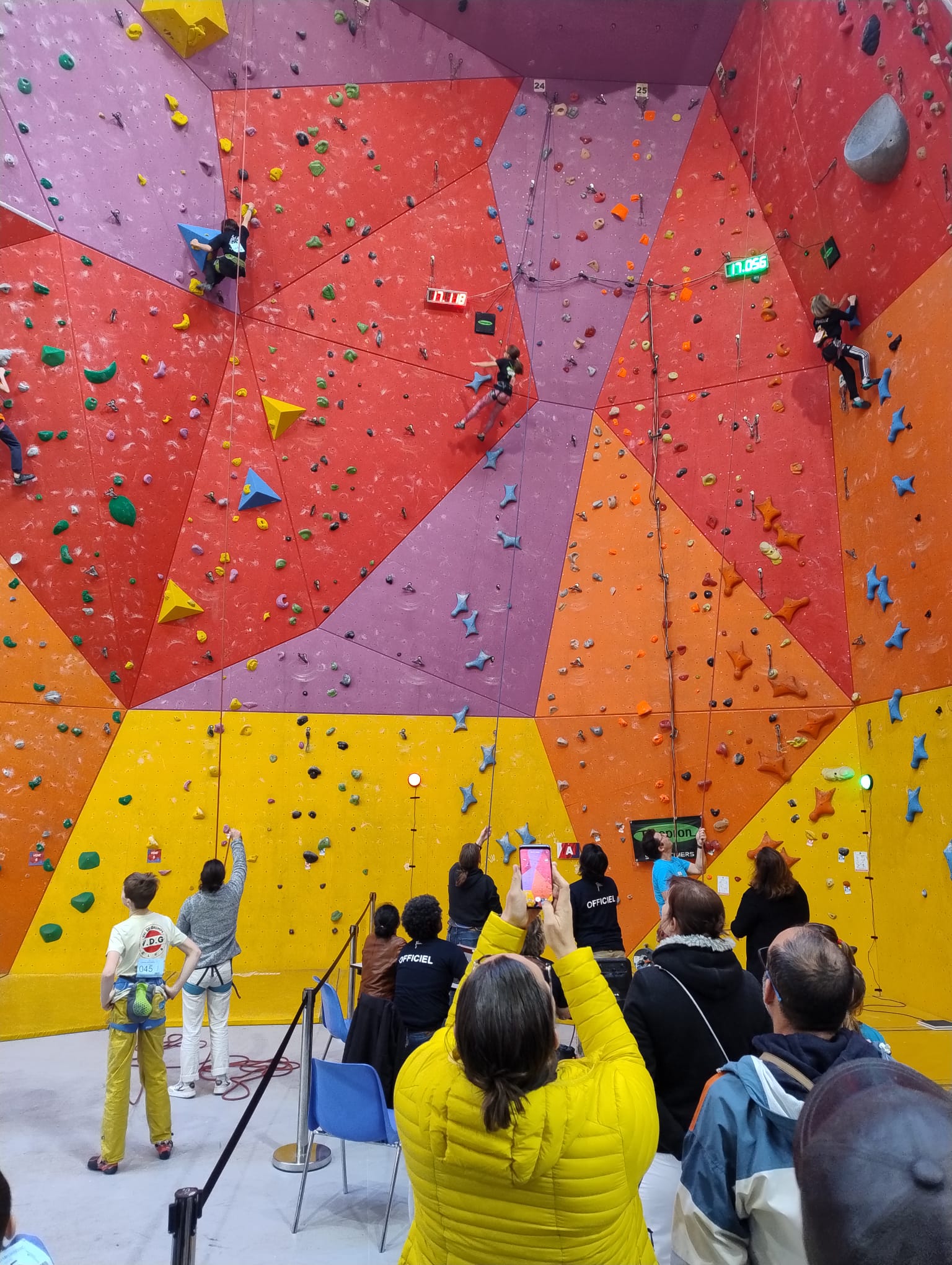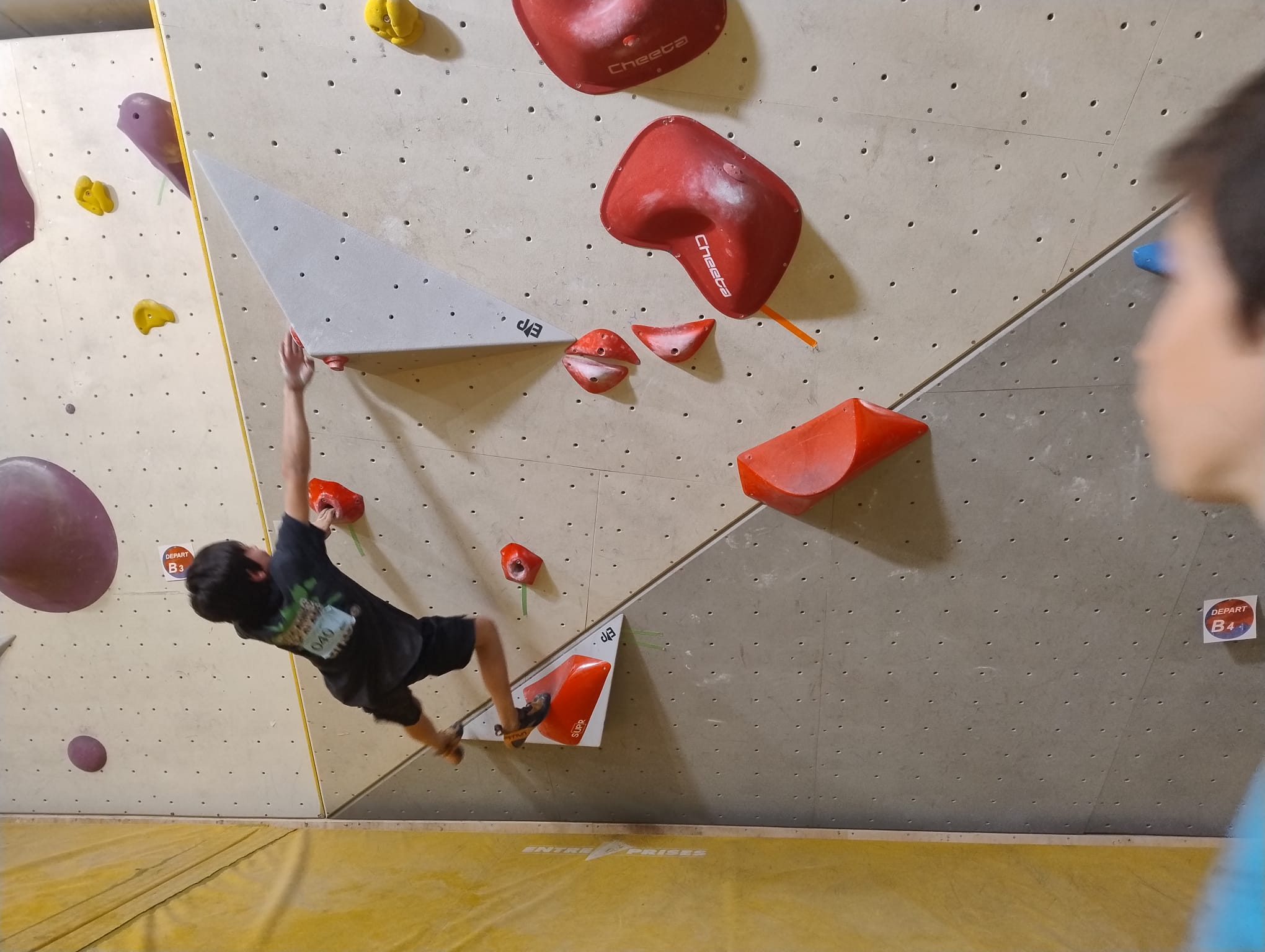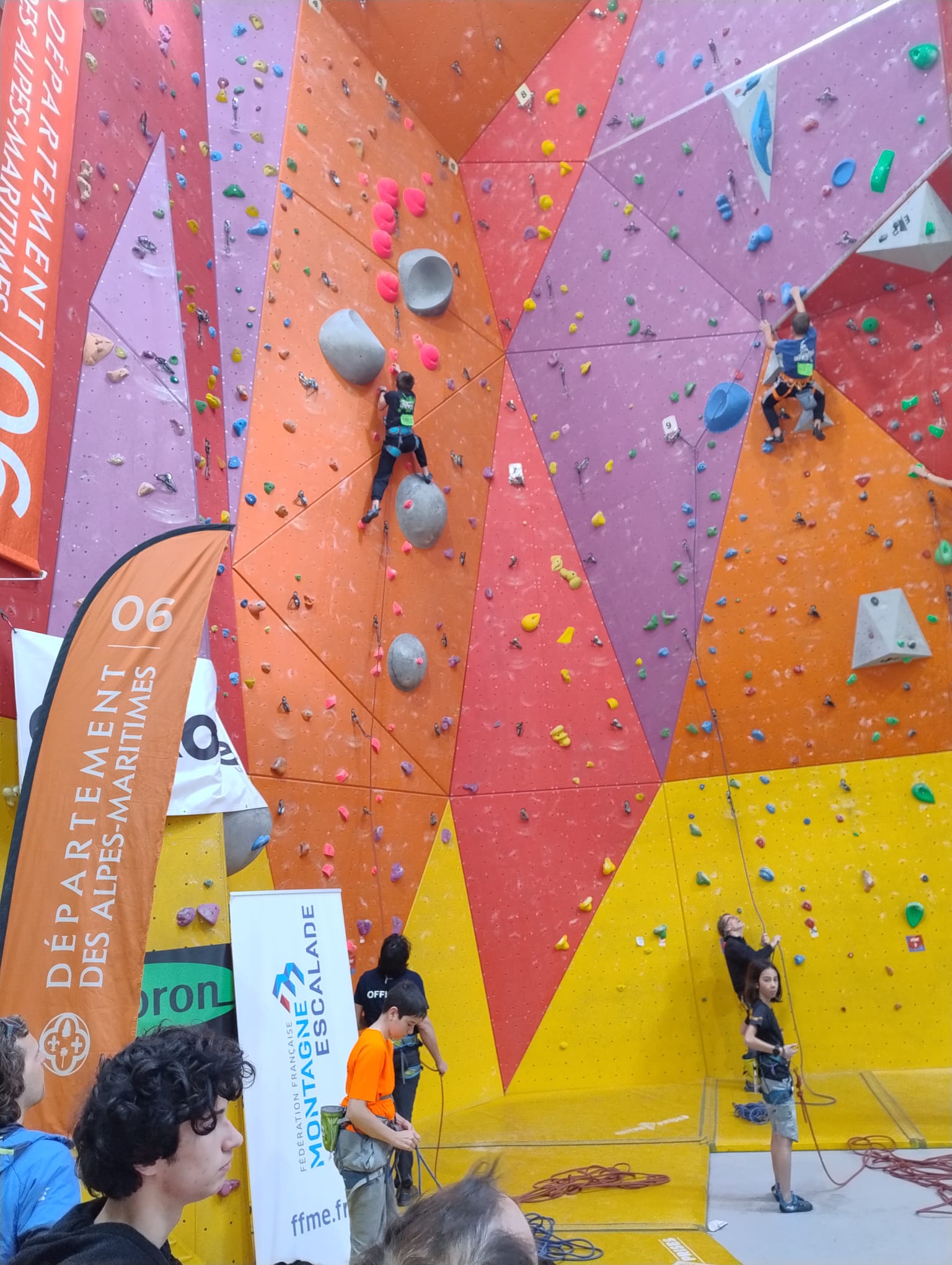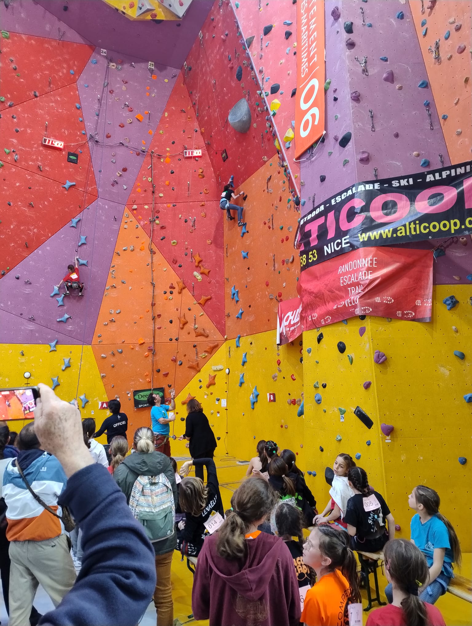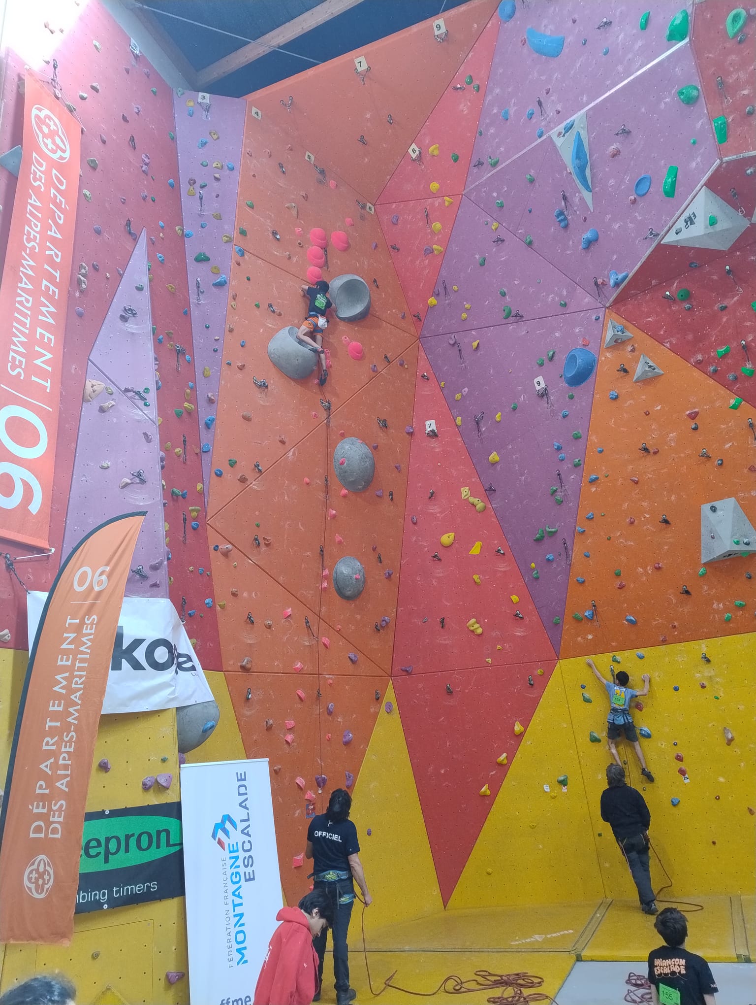 L’après-midi, les voies plus sérieuses attendent les jeunes. Léane parcourt l’interminable 7a « Cap Horn » mais la réussite n’est pas au rendez-vous, madame Lerebours choit dans les derniers mètres. La cordée « Mélia-Rose » s’active et s’en va découvrir un 6b puis Mélia continuera la moisson en enchaînant presque en sifflotant le 6b+ déversant juste à côté. Matéo s’élève dans » Le colibri », un 5b+ de plus de 40 mètres installé par Lia mais ne parvient pas à toucher le relais à quelques mètres près. Sylvain installe la moulinette dans le plus que superbe Borderline, un 6b+ de 40m qui verra les assauts de quelques valeureux grimpeurs comme Timéo et Mani.