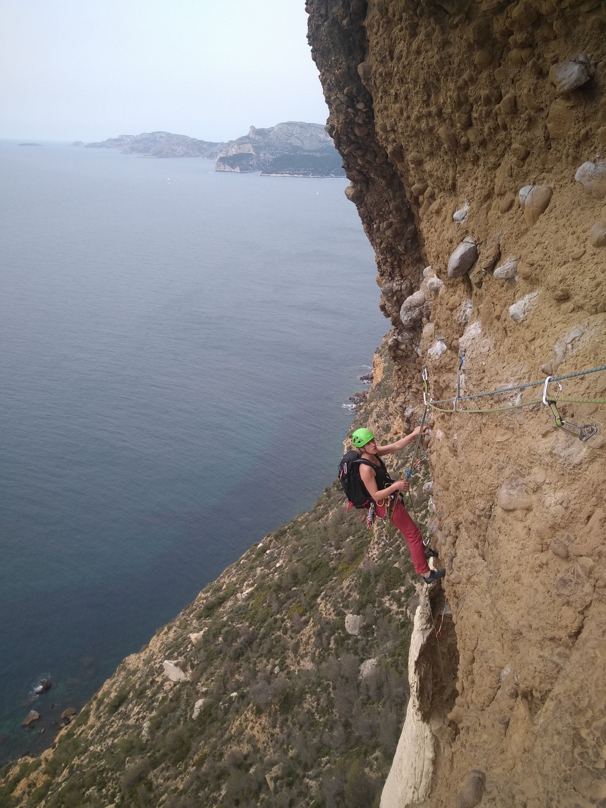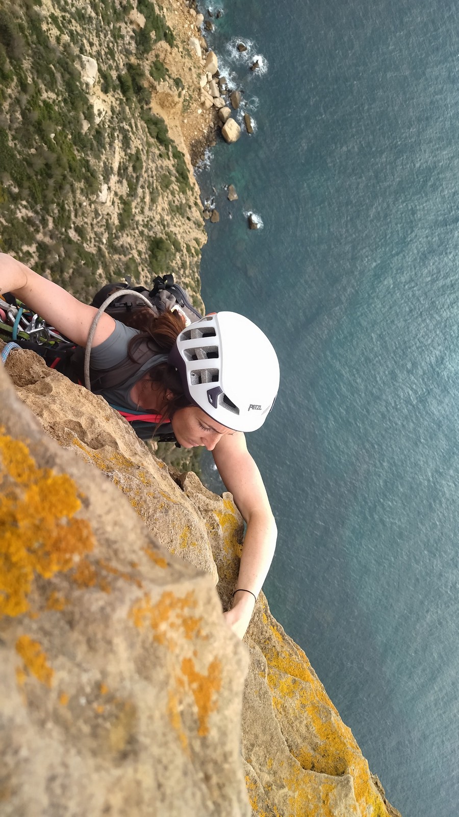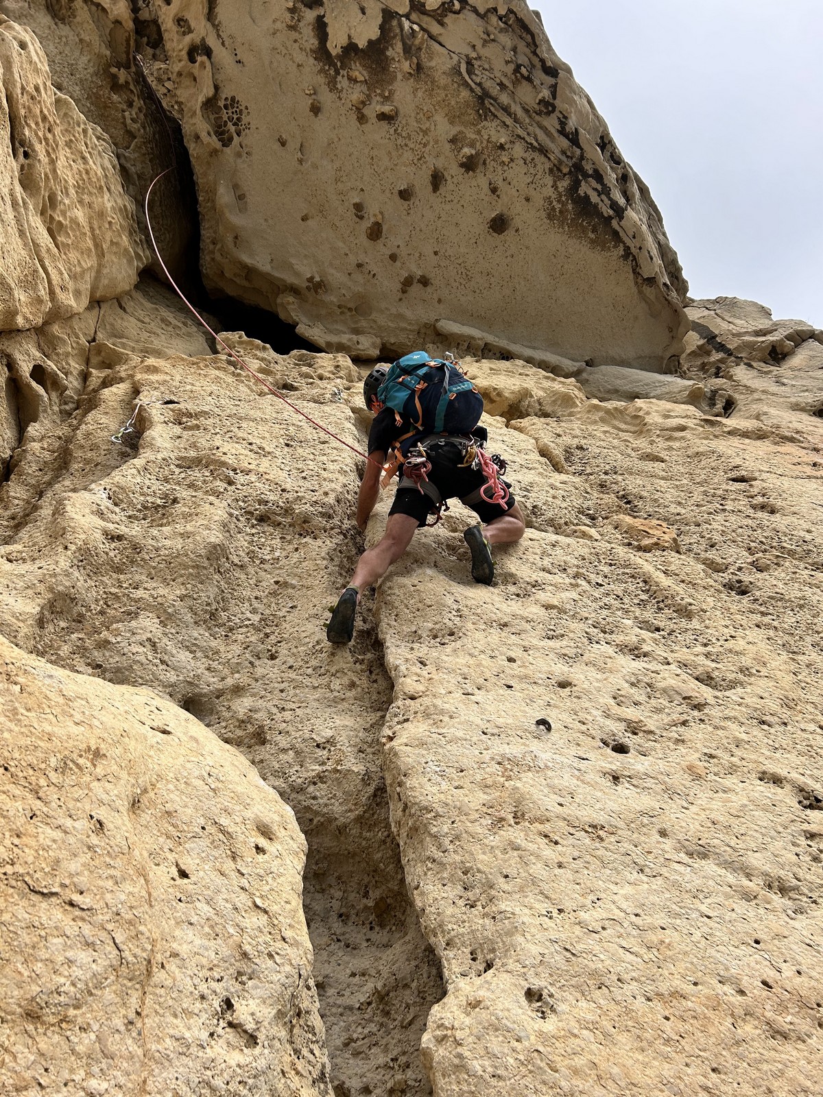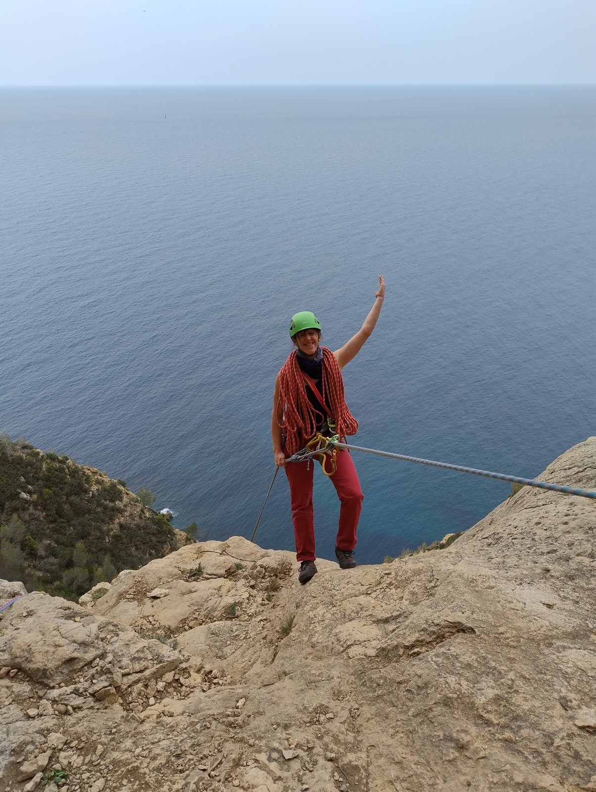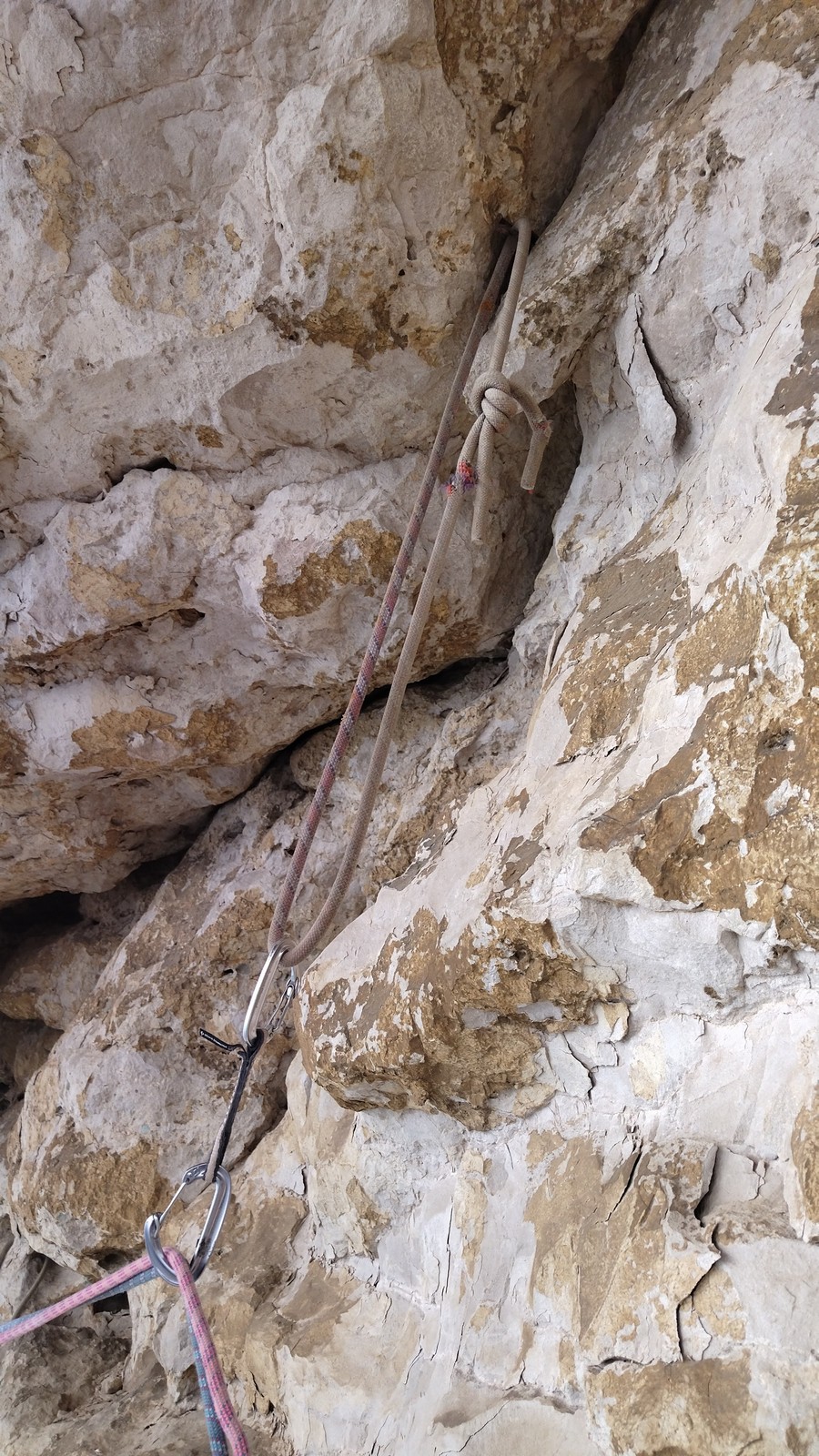 En dehors de François qui dort dans le auvent de la tente des 6 harpies, tout le monde semble avoir dormi d’un sommeil du juste. Un seul petit épisode de panique nocturne a tiré du duvet Dona et Sylvain mais tout est vite rentré dans l’ordre. Après nos deux kilos de Nutella quotidien et la préparation des casses croûtes, nous voilà de nouveau en route vers notre falaise fétiche. Aujourd’hui c’est les secteurs autour de « Colibri » qui ont l’honneur de nous recevoir. Maya est la première à grimper, elle s’aventure en tête dans » Ça glisse au pays des merveilles » un 5a+ au départ déroutant. Elle sera malheureusement stoppée à mi voie par une trop grande appréhension de la chute. Persévère pour enfin dépasser cette peur et ainsi mettre à profit tes qualités de falaisiste. Lino met également de la bonne volonté et réalise en tête un 4a très raide au vu de la cotation. Anaïs, pleine d’envie, tente également sa chance en tête. Une tentative malheureusement avortée par un manque d’expérience mais rien ne lui enlève son sourire et sa bonne humeur communicative. S’ensuit des performances plus au moins notables jusqu’au très attendu pique nique. Mathis, qui s’était chauffé en faisant à vue le 7b « Transmutation » et Sylvain profitent de la pause pour tenter d’enchainer leur projet de la veille en 7c… sans succès ! Malgré deux beaux essais de Mathis, le crux final restera invaincu.