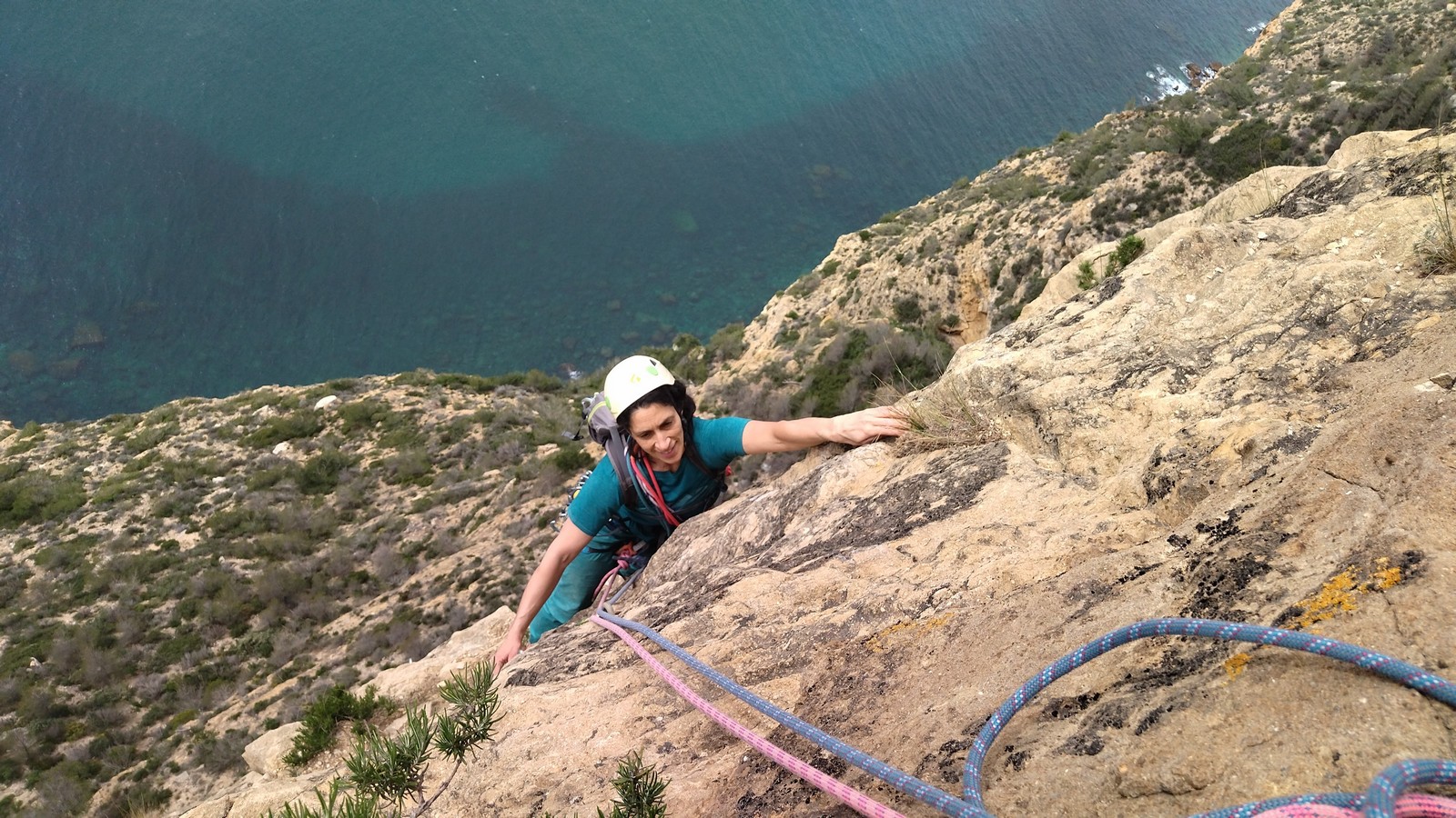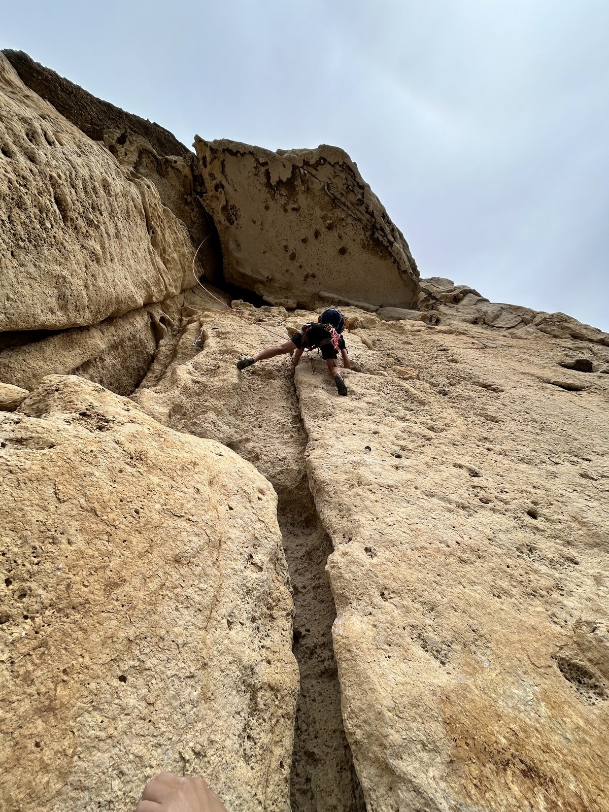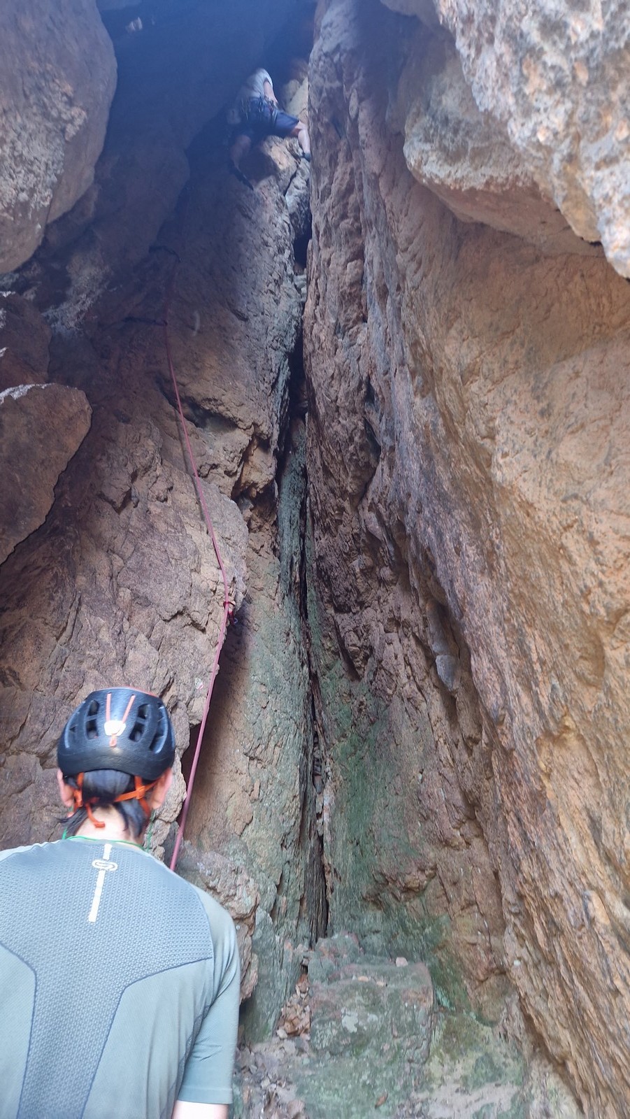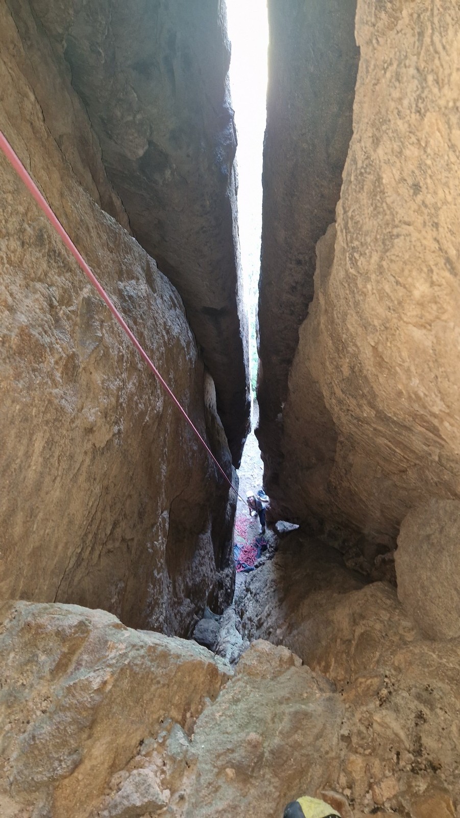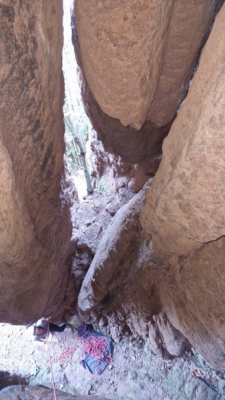 En dehors de François qui dort dans le auvent de la tente des 6 harpies, tout le monde semble avoir dormi d’un sommeil du juste. Un seul petit épisode de panique nocturne a tiré du duvet Dona et Sylvain mais tout est vite rentré dans l’ordre. Après nos deux kilos de Nutella quotidien et la préparation des casses croûtes, nous voilà de nouveau en route vers notre falaise fétiche. Aujourd’hui c’est les secteurs autour de « Colibri » qui ont l’honneur de nous recevoir. Maya est la première à grimper, elle s’aventure en tête dans » Ça glisse au pays des merveilles » un 5a+ au départ déroutant. Elle sera malheureusement stoppée à mi voie par une trop grande appréhension de la chute. Persévère pour enfin dépasser cette peur et ainsi mettre à profit tes qualités de falaisiste. Lino met également de la bonne volonté et réalise en tête un 4a très raide au vu de la cotation. Anaïs, pleine d’envie, tente également sa chance en tête. Une tentative malheureusement avortée par un manque d’expérience mais rien ne lui enlève son sourire et sa bonne humeur communicative. S’ensuit des performances plus au moins notables jusqu’au très attendu pique nique. Mathis, qui s’était chauffé en faisant à vue le 7b « Transmutation » et Sylvain profitent de la pause pour tenter d’enchainer leur projet de la veille en 7c… sans succès ! Malgré deux beaux essais de Mathis, le crux final restera invaincu.