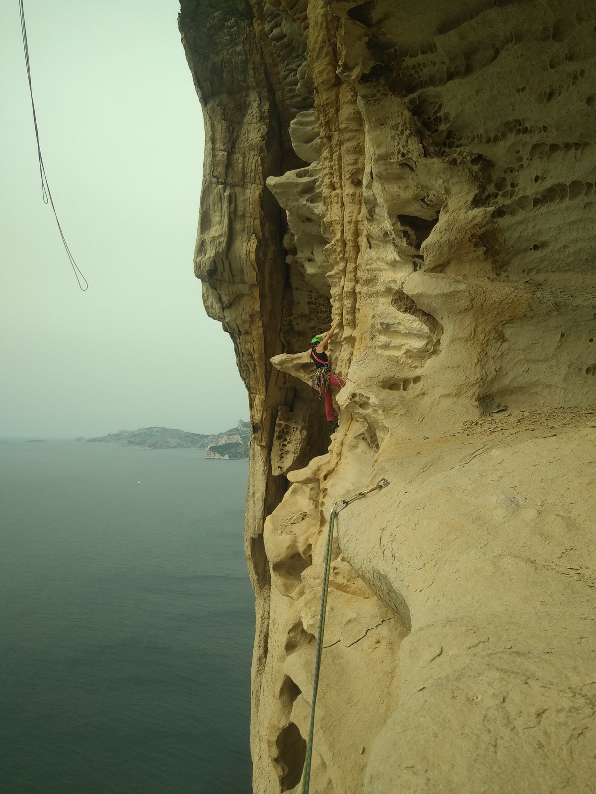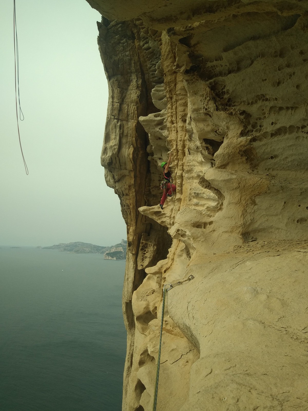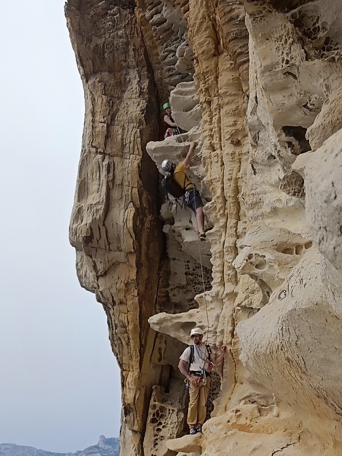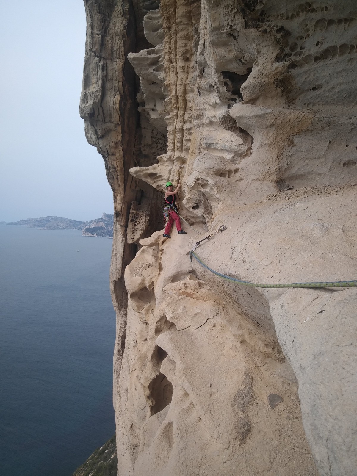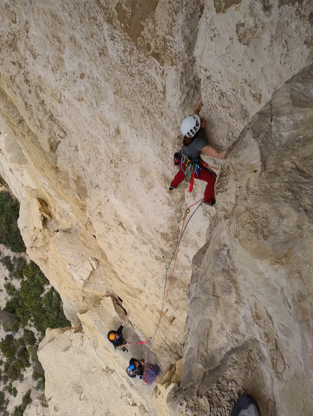 Les matinées se suivent et se ressemblent, je vous laisse donc déduire ce que nous avons ingéré, il faut que j’arrête de faire de la pub pour un produit qui favorise l’obésité et la déforestation sous peine de me faire censurer. À présent nous nous rendons au secteur « Alex » et « Triste tropique », le premier étant un beau mur vertical très sculpté, le deuxième nous offrant des voies plutôt courtes et pêchues. Après une mise en route toujours difficile, l’ensemble des participants trouvent chausson à leur pied. Baptiste avec un regain de motivation parcourt presque autant de mètres d’escalade en une matinée que lors des trois premiers jours. Lilas toujours discrète continue sur sa lancée et confirme sa belle prestation de la semaine avec, en prime, un comportement irréprochable (il ne faut juste pas la taquiner au réveil sous peine d’un regard noir à glacer le sang). Aujourd’hui le mercure s’est élevé et, notamment pour la dégustation de nos sandwichs, nous privilégions les zones ombragées.