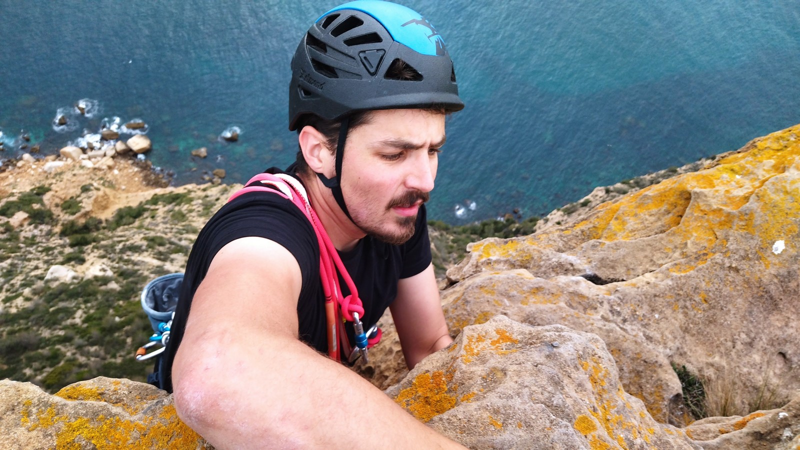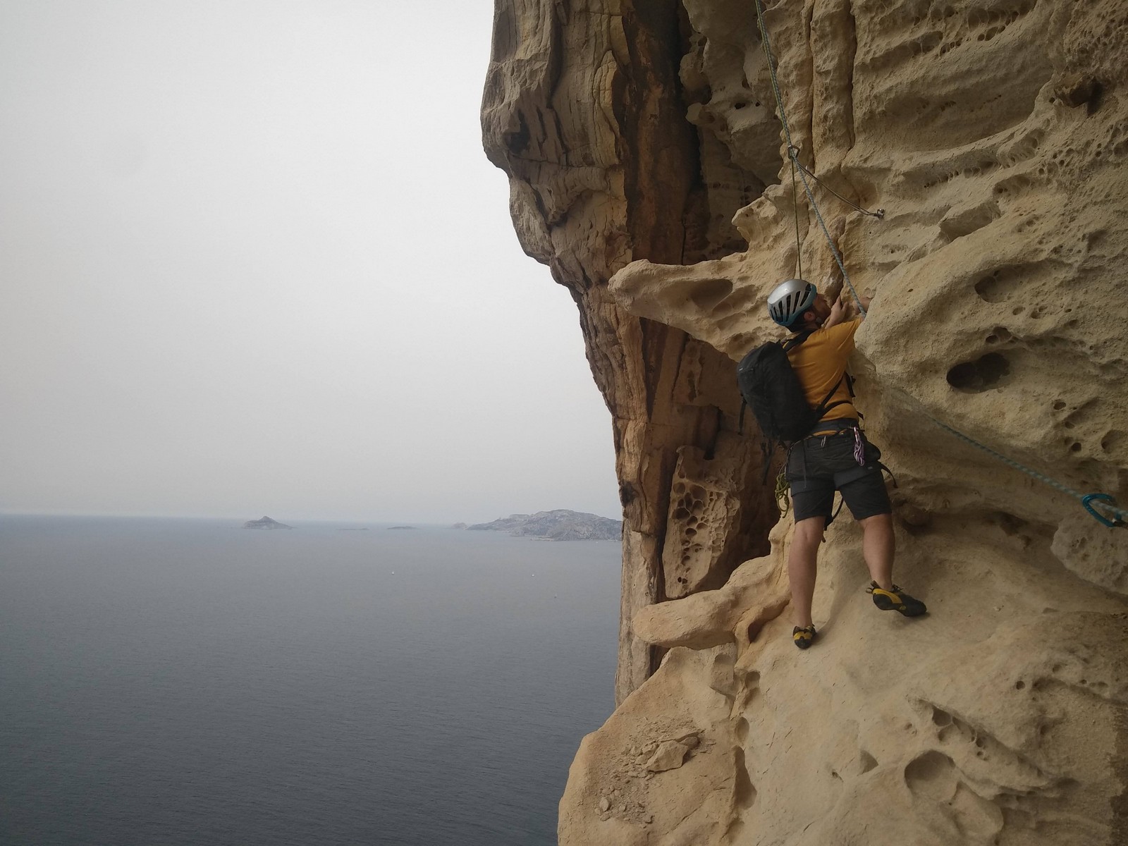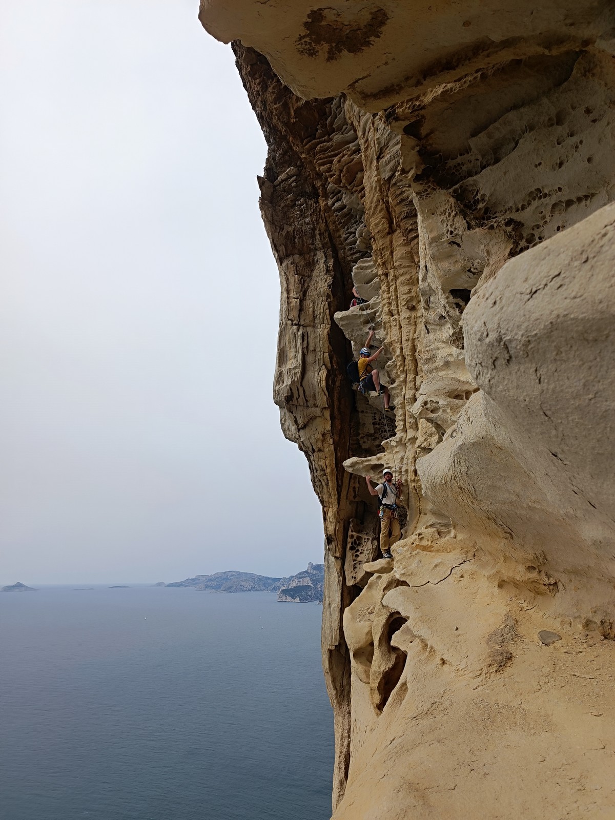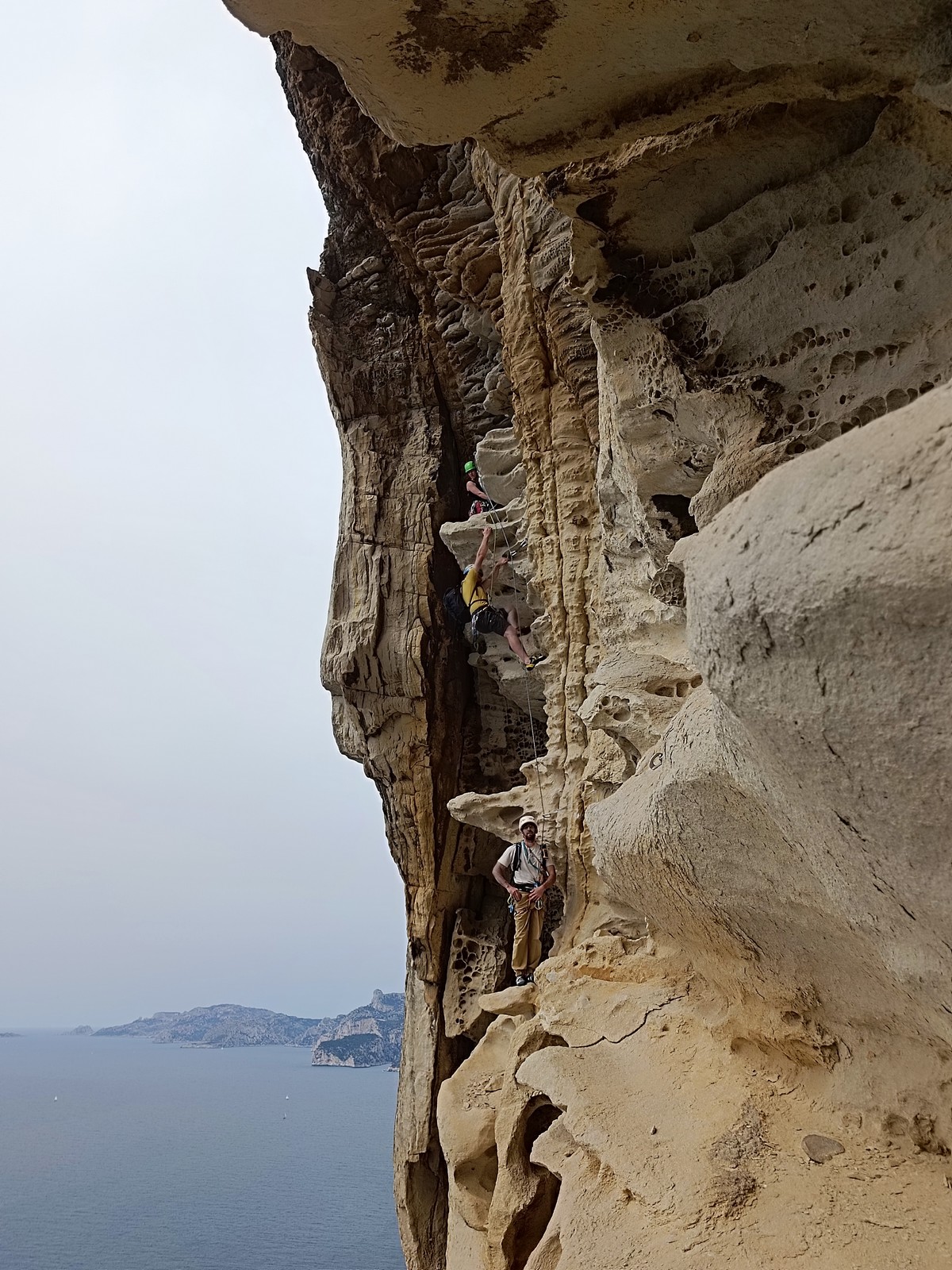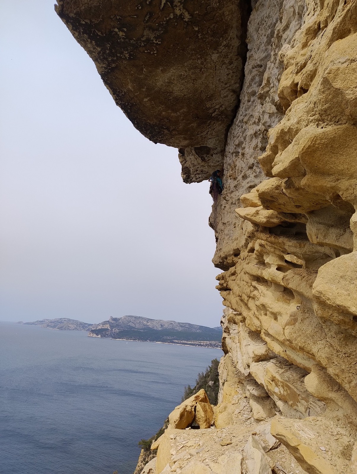 Les matinées se suivent et se ressemblent, je vous laisse donc déduire ce que nous avons ingéré, il faut que j’arrête de faire de la pub pour un produit qui favorise l’obésité et la déforestation sous peine de me faire censurer. À présent nous nous rendons au secteur « Alex » et « Triste tropique », le premier étant un beau mur vertical très sculpté, le deuxième nous offrant des voies plutôt courtes et pêchues. Après une mise en route toujours difficile, l’ensemble des participants trouvent chausson à leur pied. Baptiste avec un regain de motivation parcourt presque autant de mètres d’escalade en une matinée que lors des trois premiers jours. Lilas toujours discrète continue sur sa lancée et confirme sa belle prestation de la semaine avec, en prime, un comportement irréprochable (il ne faut juste pas la taquiner au réveil sous peine d’un regard noir à glacer le sang). Aujourd’hui le mercure s’est élevé et, notamment pour la dégustation de nos sandwichs, nous privilégions les zones ombragées.