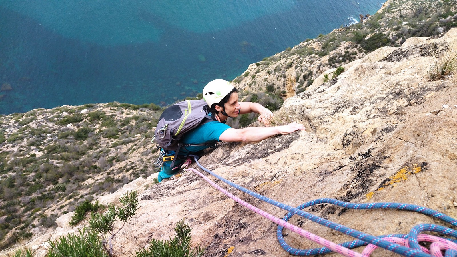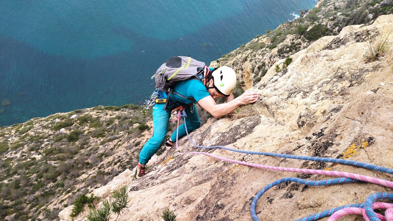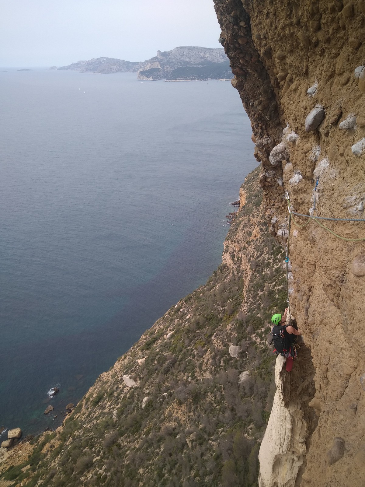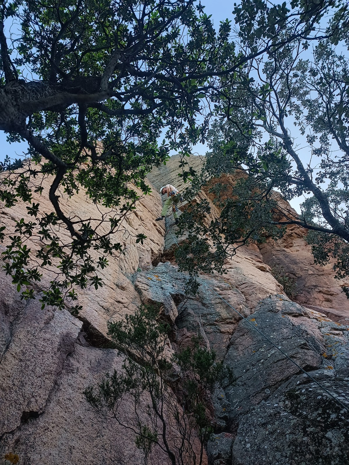 Côté escalade, un petit groupe s’écarte vers la grande face. Mathis rate d’un poil et à vue le majeurissime 7c » Abolition des privilèges » et couine sérieusement dans le très exigeant 7c+ » Le diktateur » pendant que Lia s’offre un 6b très classe à gauche de la grande face.