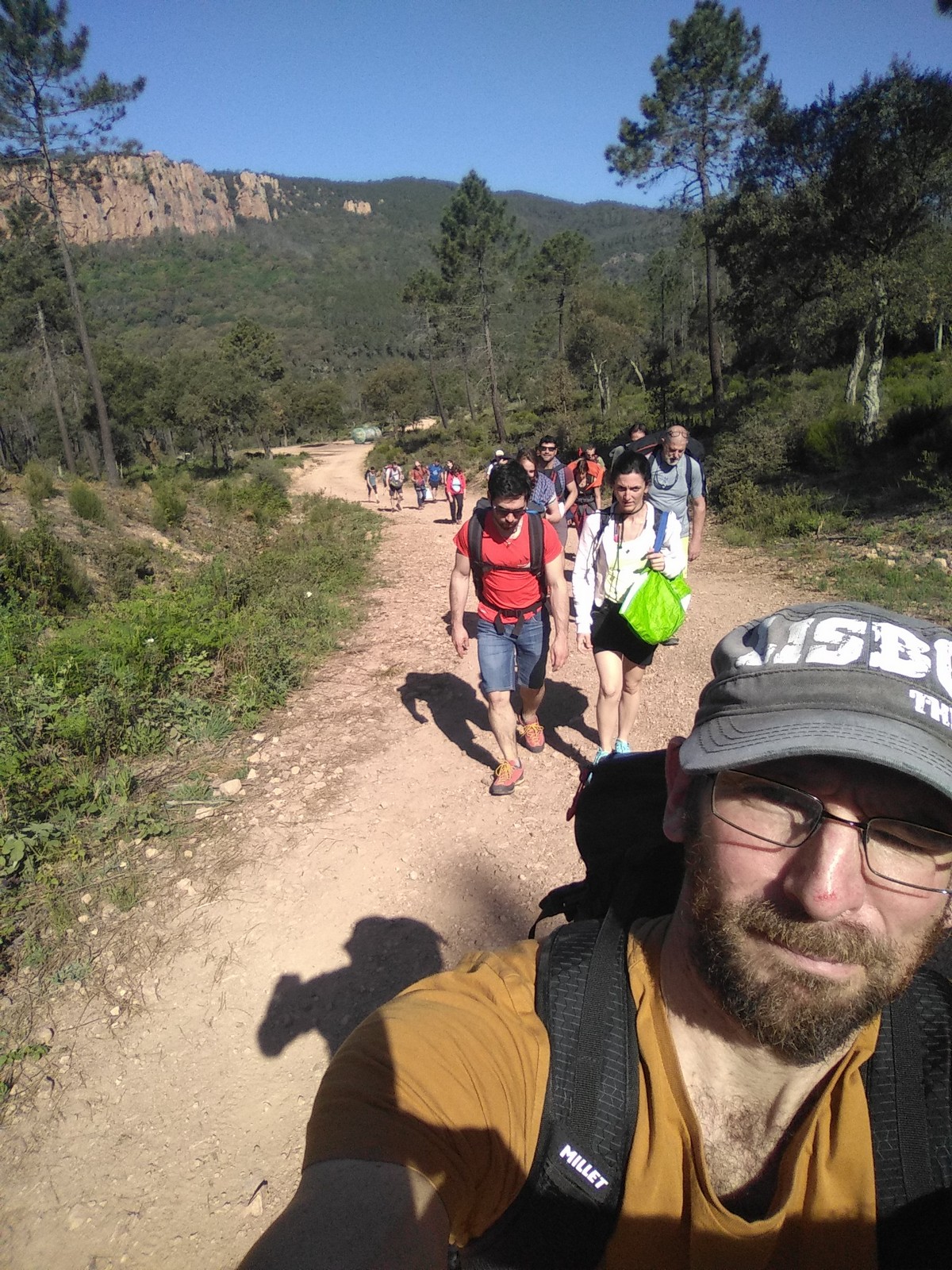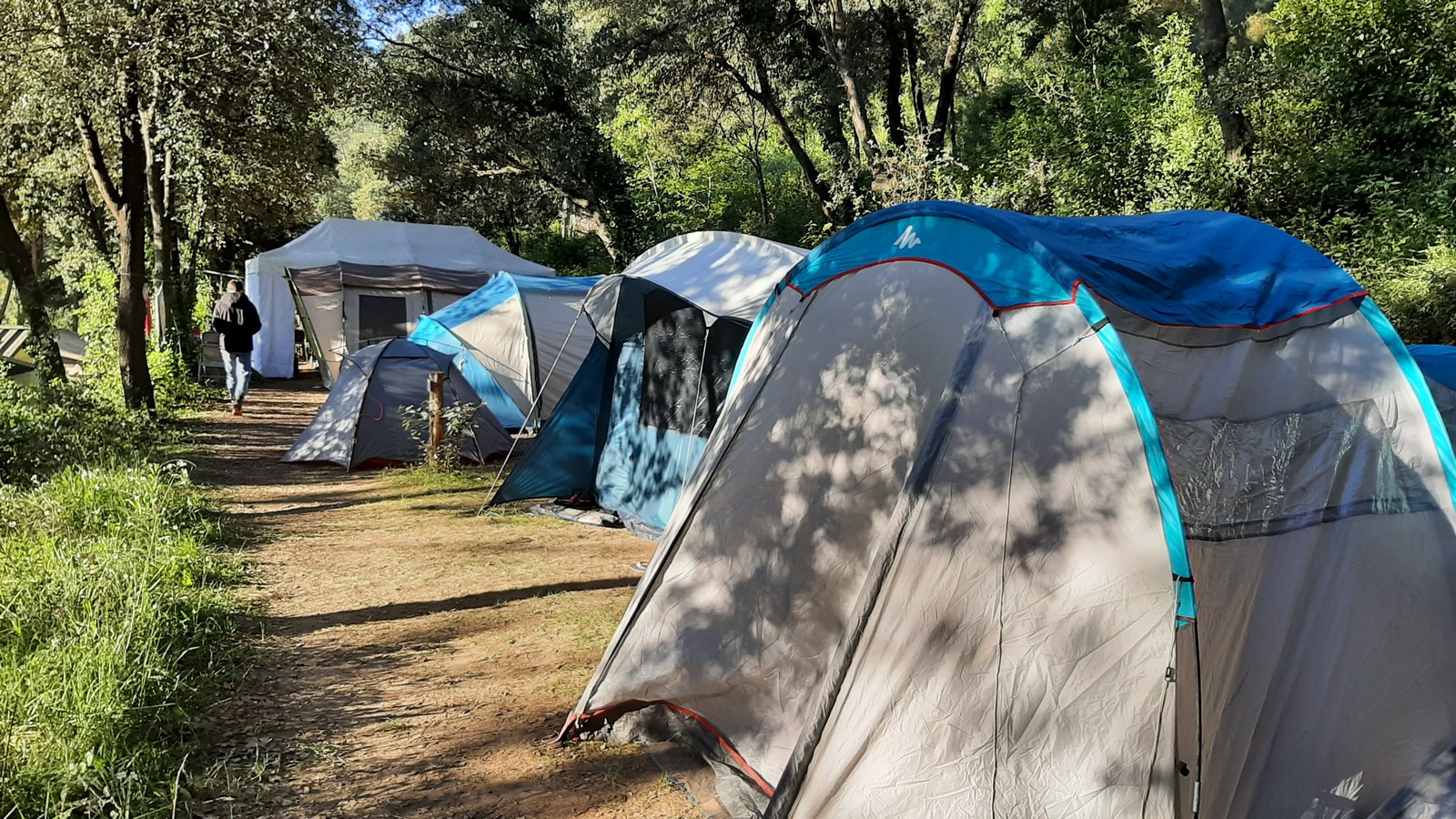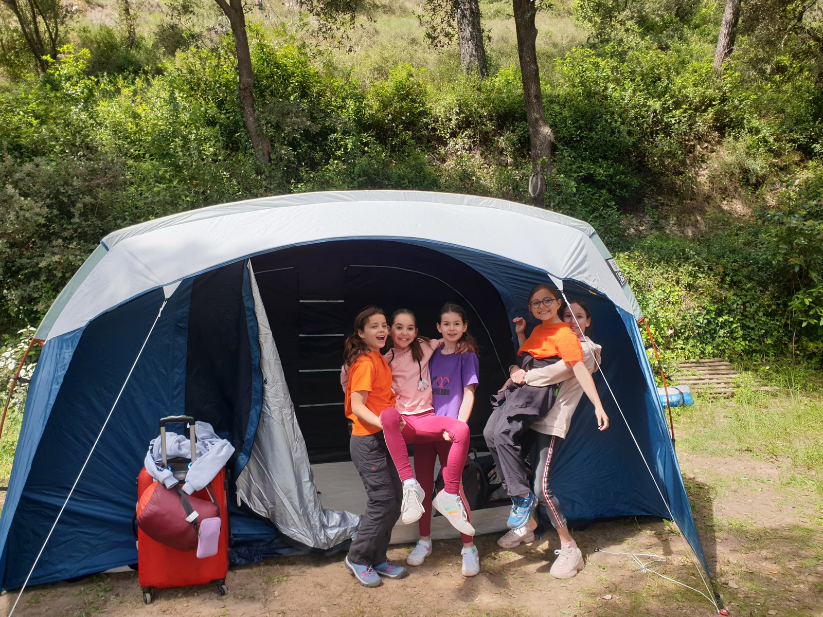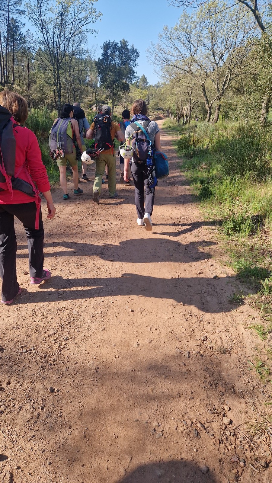 Nous prenons la route pour le camping « Le grand jardin » situé à Correns, à proximité du vallon Sourn, lieu de nos futures aventures verticales. Deux petites heures plus tard, et malgré les égarements de certains, nous sommes réunis au camping. Avant de prendre la direction de la falaise, une tâche indispensable nous fait face : installer le campement ! Ce sont 8 tentes à monter, une vingtaine de matelas à gonfler sans oublier le barnum qui nous permettra de manger sans être exposé aux quatre vents et de nous protéger d’une éventuelle pluie. On joue une nouvelle fois à Tetris pour faire rentrer toues les tentes dans l’espace qui nous est alloué puis chacun organise son coin. Les plus petites tentes sont montées rapidement, mais les plus grandes prennent un peu de temps. C’est dans l’entraide que notre campement s’organise et en moins de 2h, tout est monté et c’est l’heure du premier repas sous le barnum. Chacun avale son sandwich avant de préparer ses affaires pour la première sortie escalade.