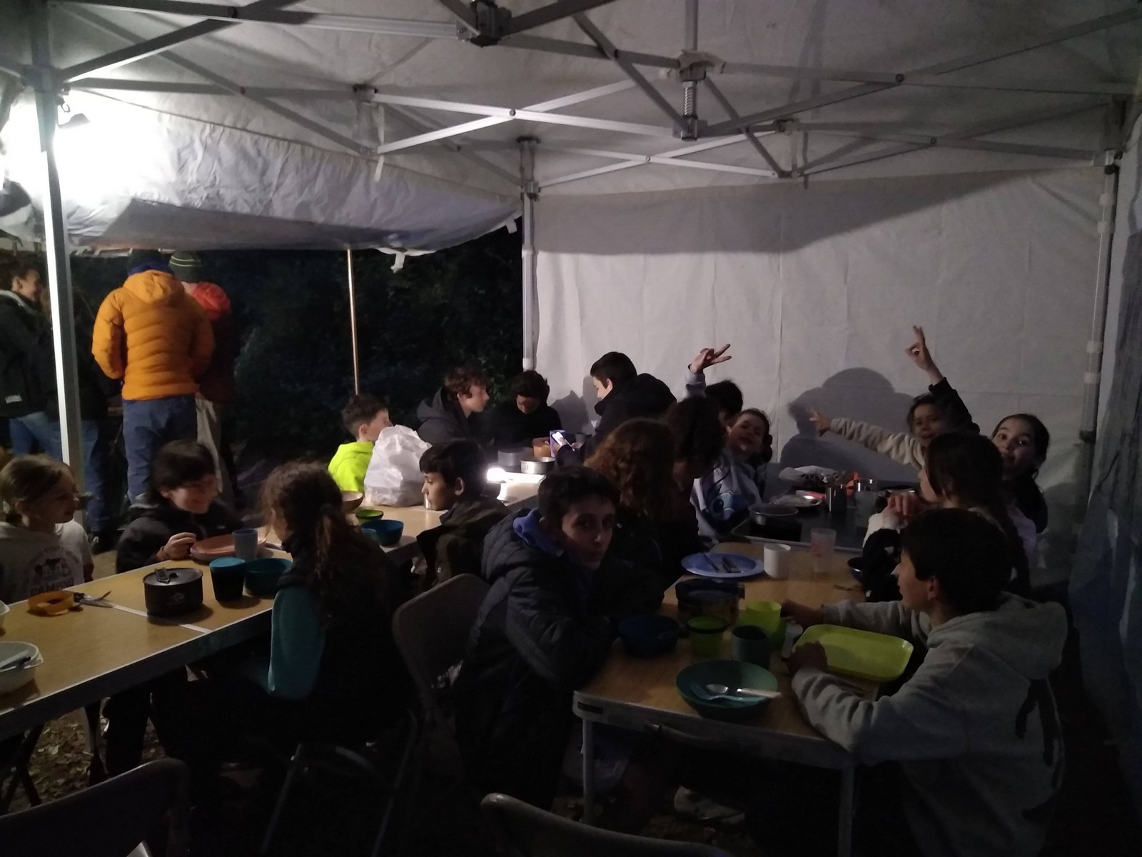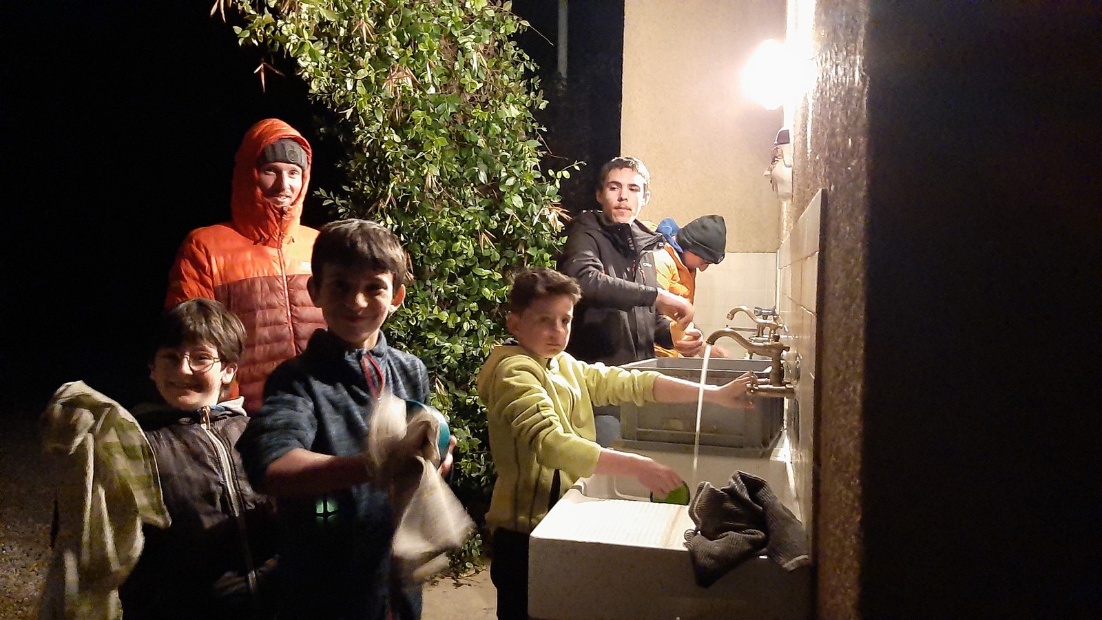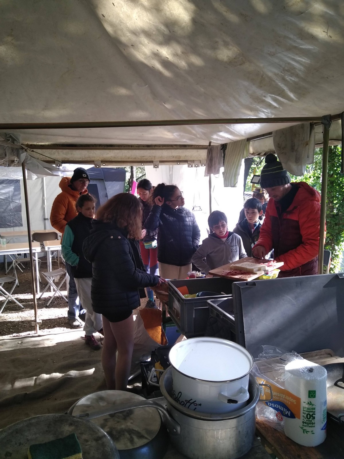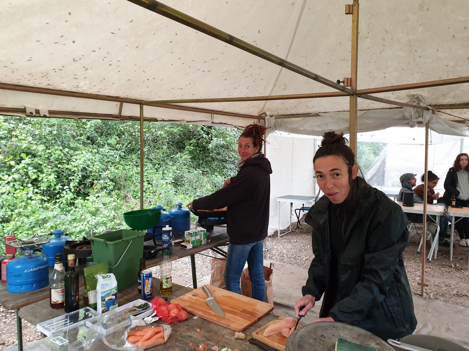 Le temps que chacun passe à la douche, certains ont la possibilité d’un petit foot ou d’une partie de badmindton mais l’heure du repas arrive rapidement. Au menu de ce soir c’est pâtes à la bolo, un grand classique adoré des enfants. Donna et Angela sont les chefs cuistots et elles nous font profiter de leurs expériences certaines en matière de cuisine collective, jeunes et moins jeunes se régalent et pas une once de nourriture ne sera gaspillée. L’obscurité s’est installée et nous signale que le temps est désormais au repos. Chacun va retrouver son duvet puis le camping s’apaise rapidement.