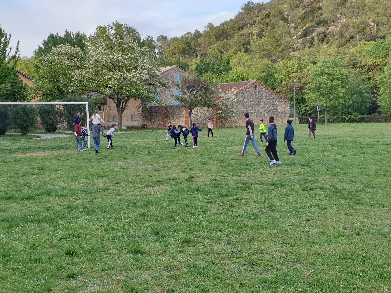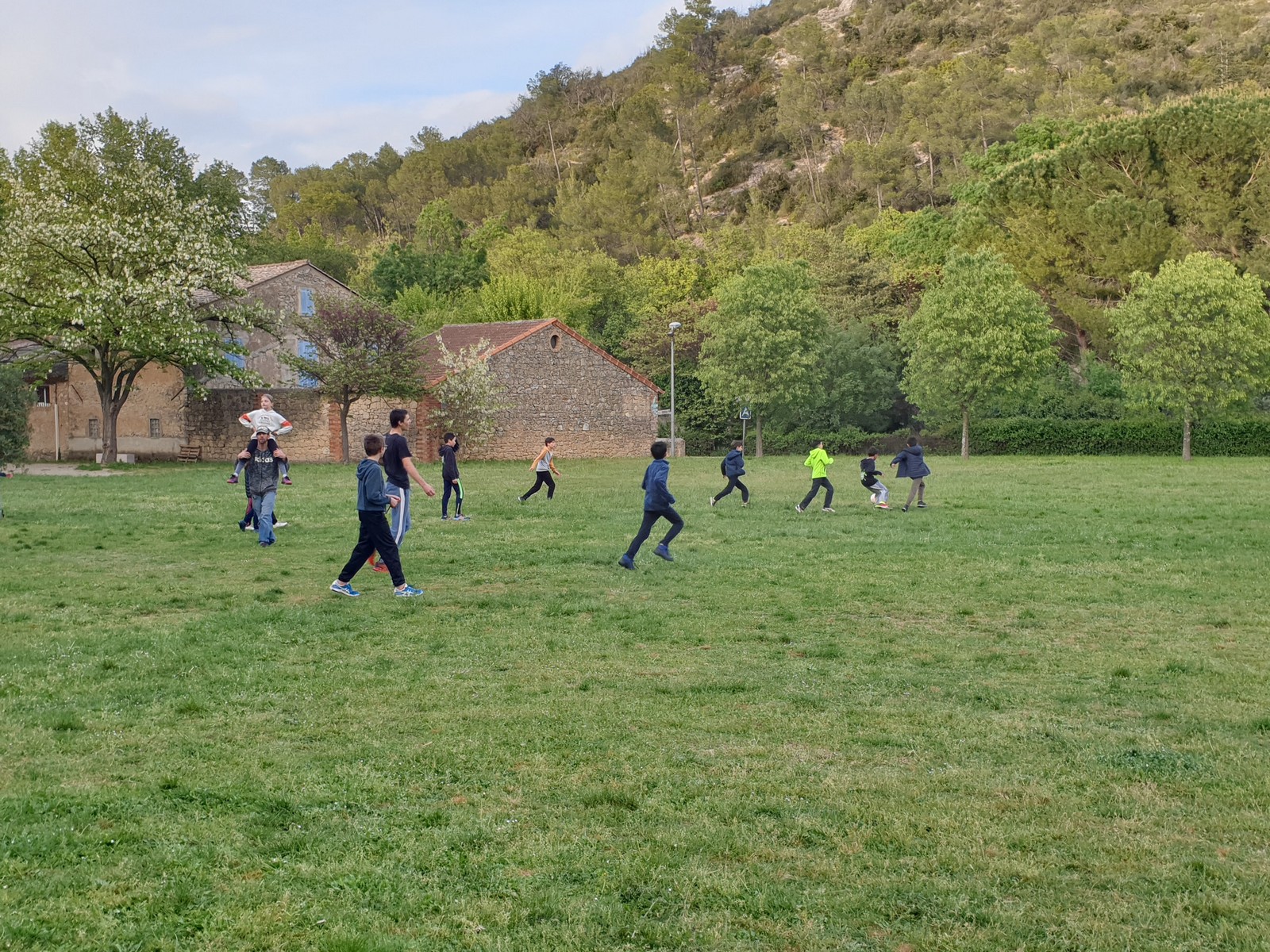 C’est sur ces belles réussites et tandis que Sylvain continue ses allers-retours quotidiens et que François gère les filles au camping que nous quittons les lieux, demain la pluie est annoncée et nous ne sommes pas certain de pouvoir revenir. Un dernier coup d’œil sur la falaise en guise d’au revoir puis nous voilà dans le minibus. Ce soir un petit détour dans le village de Correns s’impose autant pour acheter quelques paquets de bonbons que pour commander la vingtaine de pizzas indispensables pour d’une dernière soirée. Une fois repus les jeunes s’en vont jouer puis finissent par se quereller. Tout ça est un peu bête surtout qu’il s’agit là des derniers instants que nous partageons. Néanmoins cela nous permet d’envoyer sans autre forme de procès tout ces jouvenceaux au lit sans doute éprouvés par quatres jours d’activités intensives.